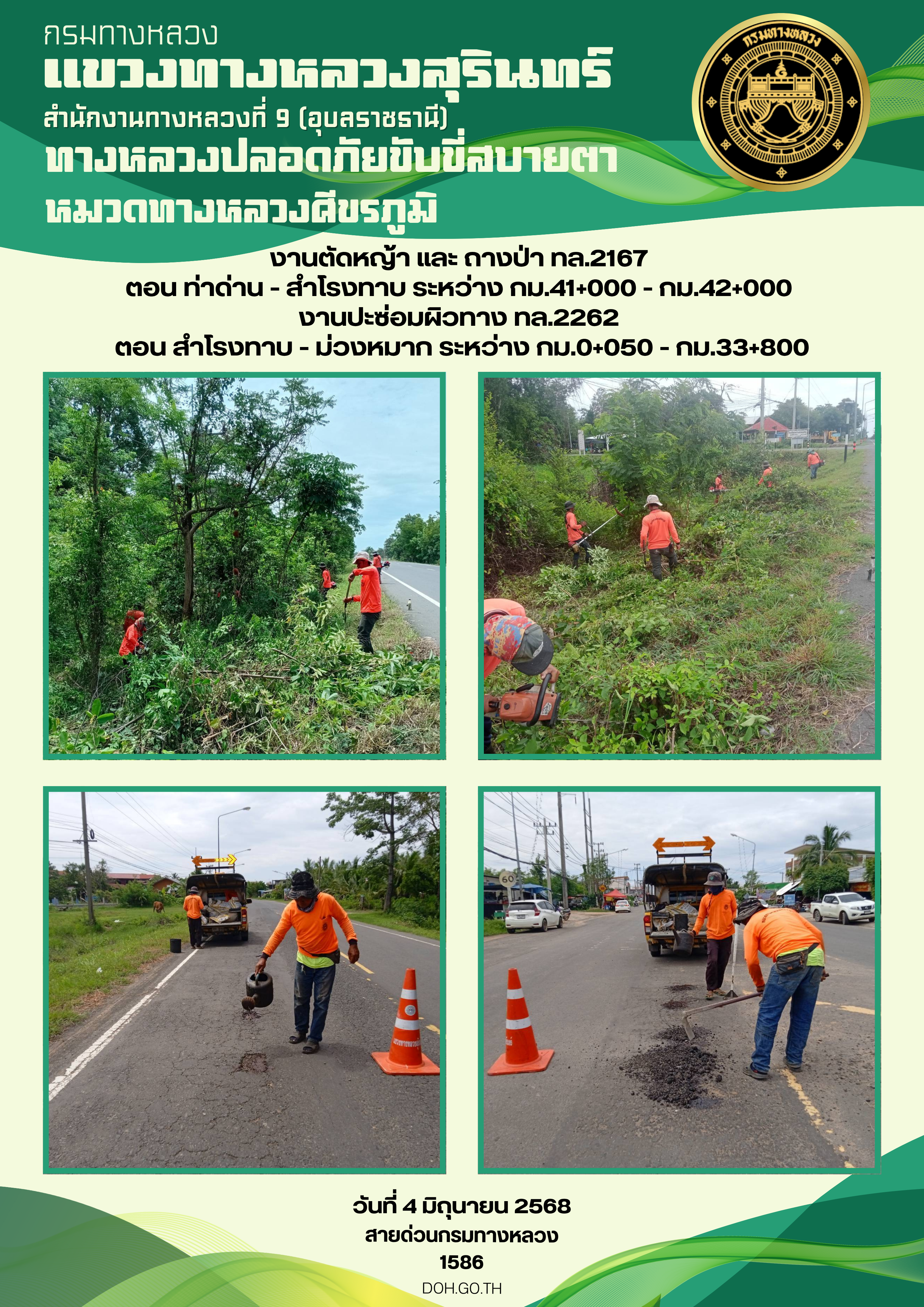 ทางหลวงปลอยภัย ขับขี่สบายตา 4 มิถุนายน 2568