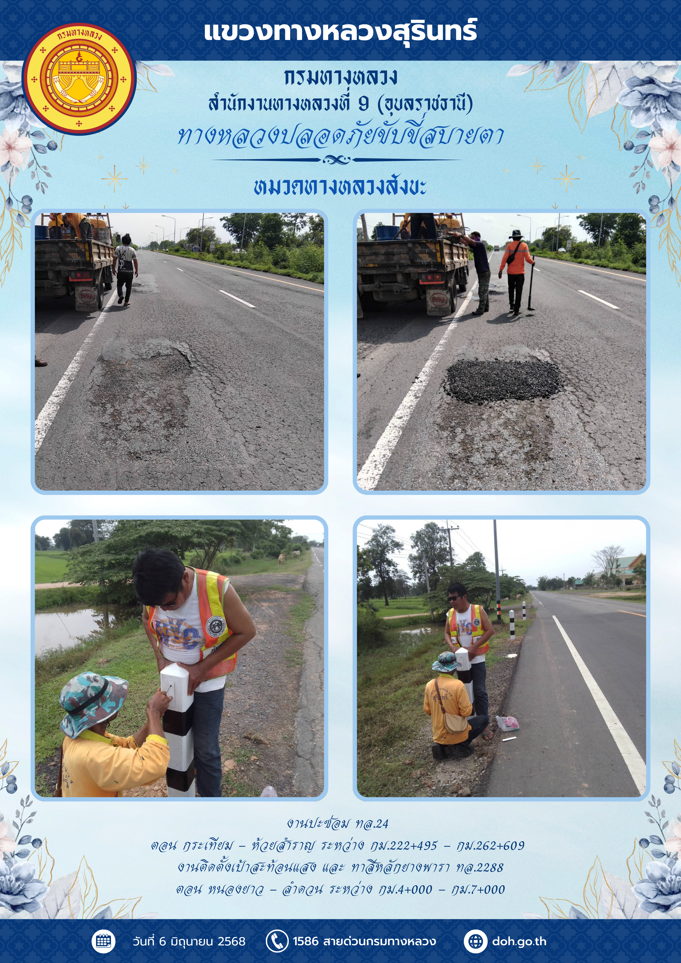 ทางหลวงปลอยภัย ขับขี่สบายตา 6 มิถุนายน 2568