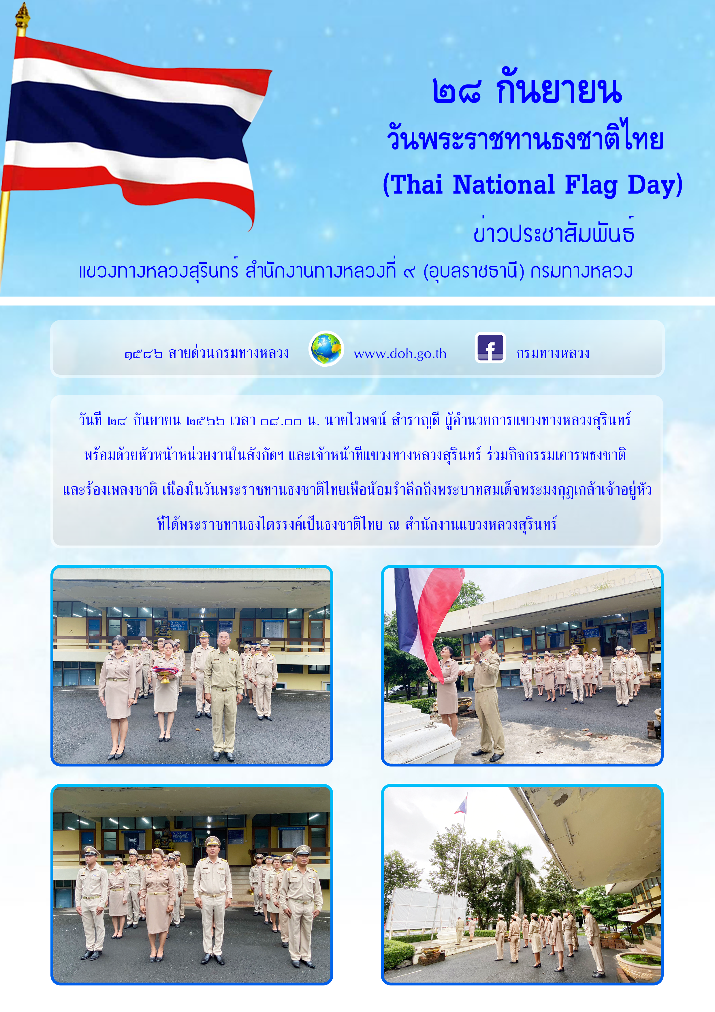 พร้อมด้วยหัวหน้าหน่วยงานในสังกัดฯ และเจ้าหน้าที่แขวงทางหลวงสุรินทร์ ร่วมกิจกรรมเคารพธงชาติ