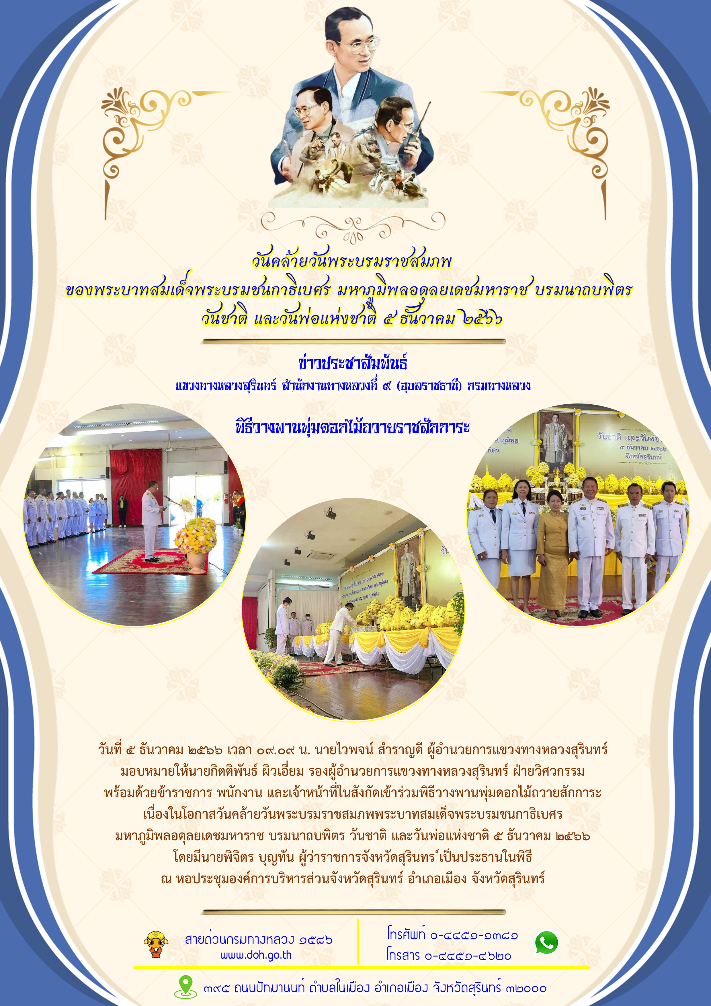 วันที่ ๕ ธันวาคม ๒๕๖๖ เวลา ๐๙.๐๙ น. นายไวพจน์ สำราญดี ผู้อำนวยการแขวงทางหลวงสุรินทร์