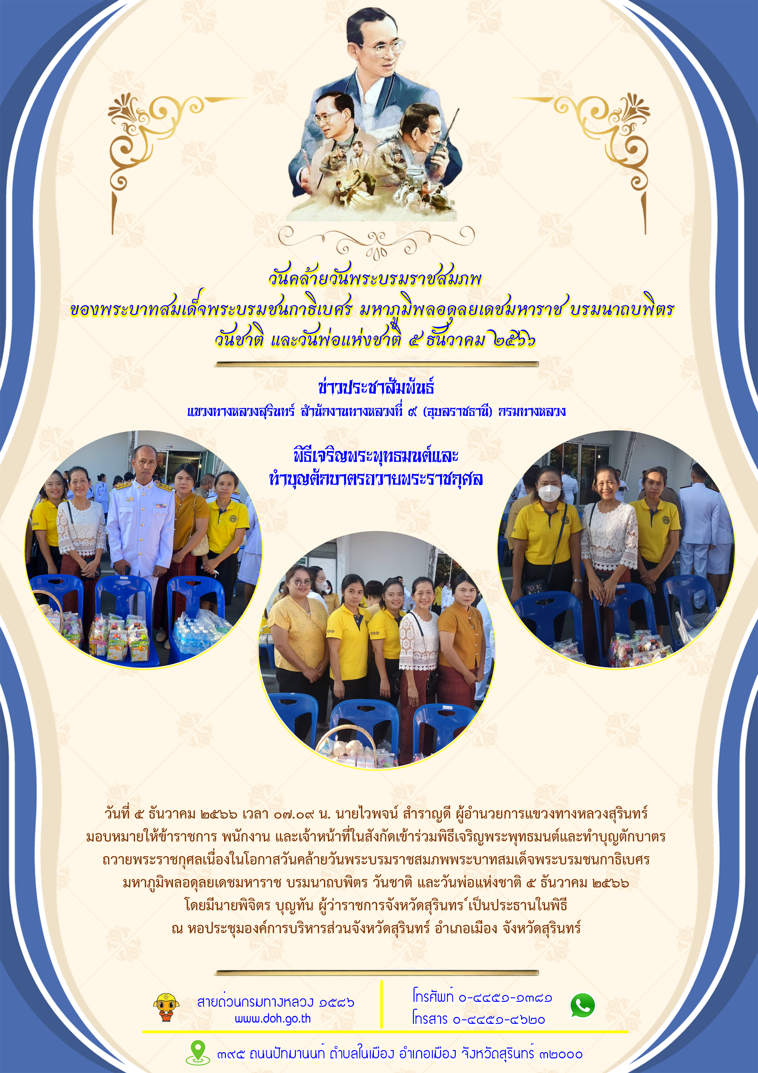 วันที่ ๕ ธันวาคม ๒๕๖๖ เวลา ๐๗.๐๙ น. นายไวพจน์ สำราญดี ผู้อำนวยการแขวงทางหลวงสุรินทร์