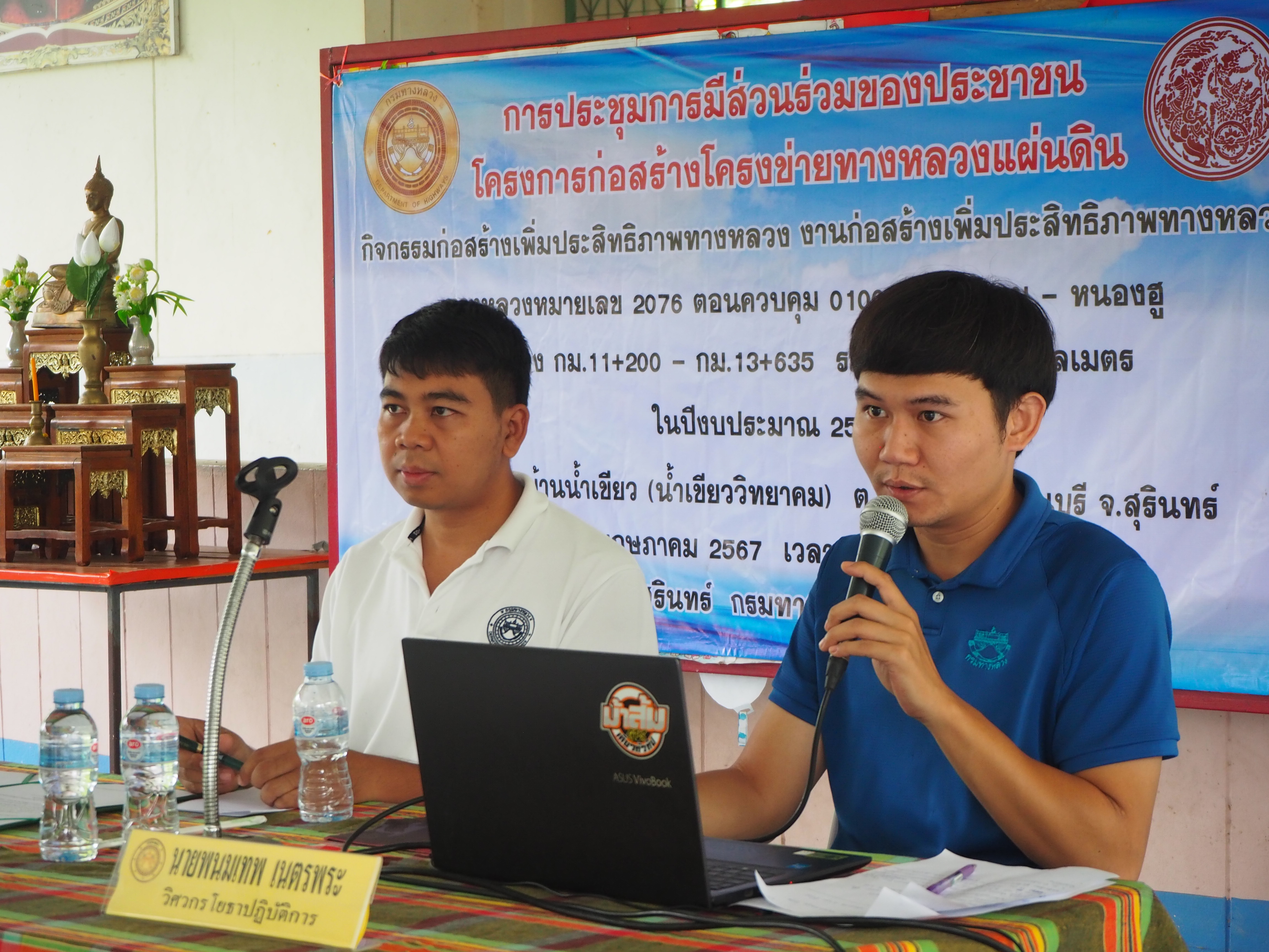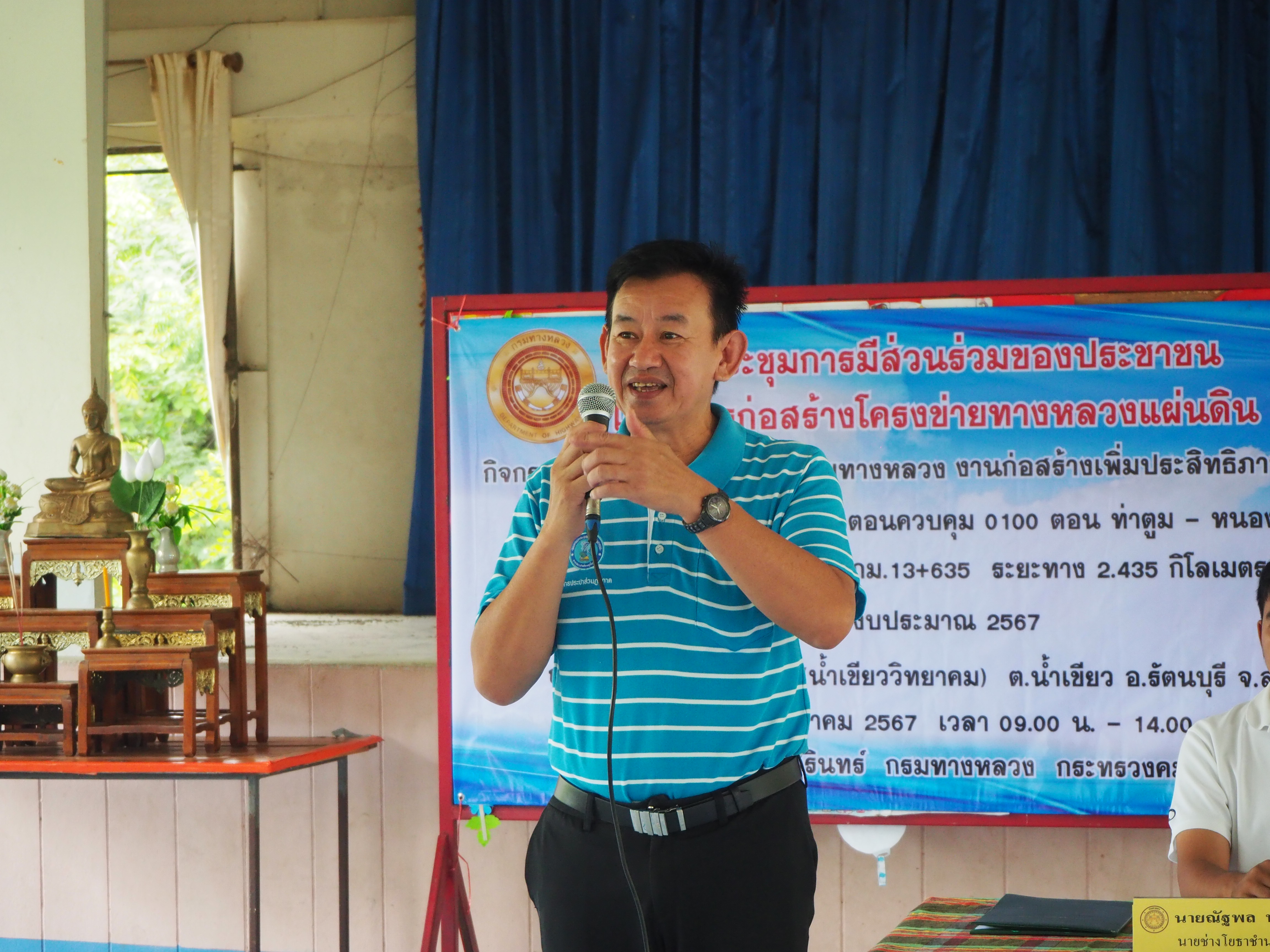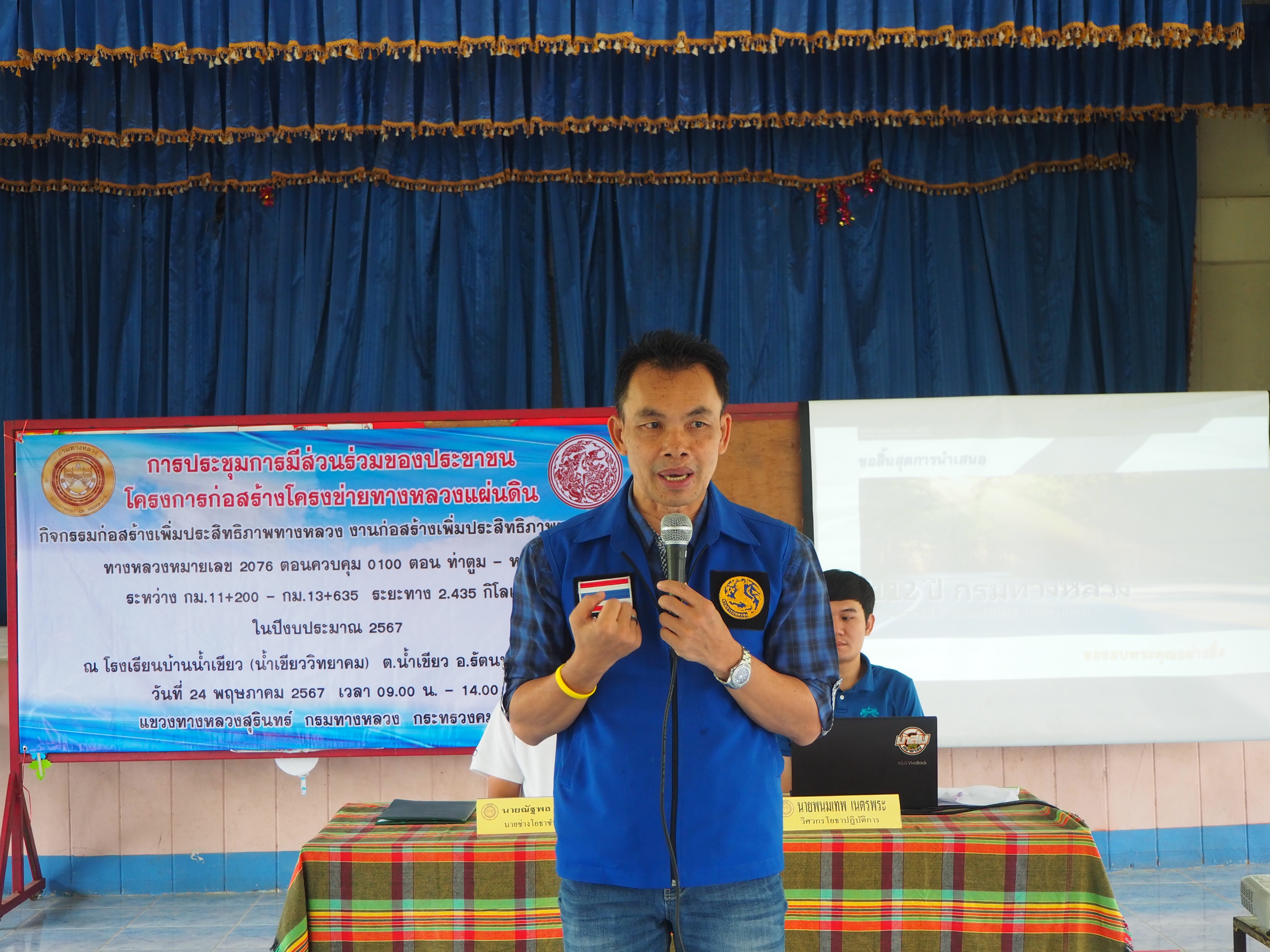 แขวงทางหลวงสุรินทร์ ได้ดำเนินการจัดการมีส่วนร่วมของประชาชน ปีงบประมาณ 2567 โครงการก่อสร้างโครงข่ายทางหลวงแผ่นดิน สำหรับ กิจกรรมยกระดับมาตรฐานและเพิ่มประสิทธิภาพทางหลวง ทางหลวงหมายเลข 2076 ตอนควบคุม 0100 ตอน ท่าตูม - หนองฮู ระหว่าง กม.11+200 - กม.13+635 ระยะทาง 2.435 กิโลเมตร โดยดำเนินการประชุมในวันพฤหัสบดีที่ 24 พฤษภาคม 2567 เวลา 09.00 น. - 14.00 น. ณ โรงเรียนบ้านน้ำเขียว(น้ำเขียววิทยาคม) ตำบลน้ำเขียว อำเภอรัตนบุรี จังหวัดสุรินทร์ เสร็จเรียบร้อยแล้ว