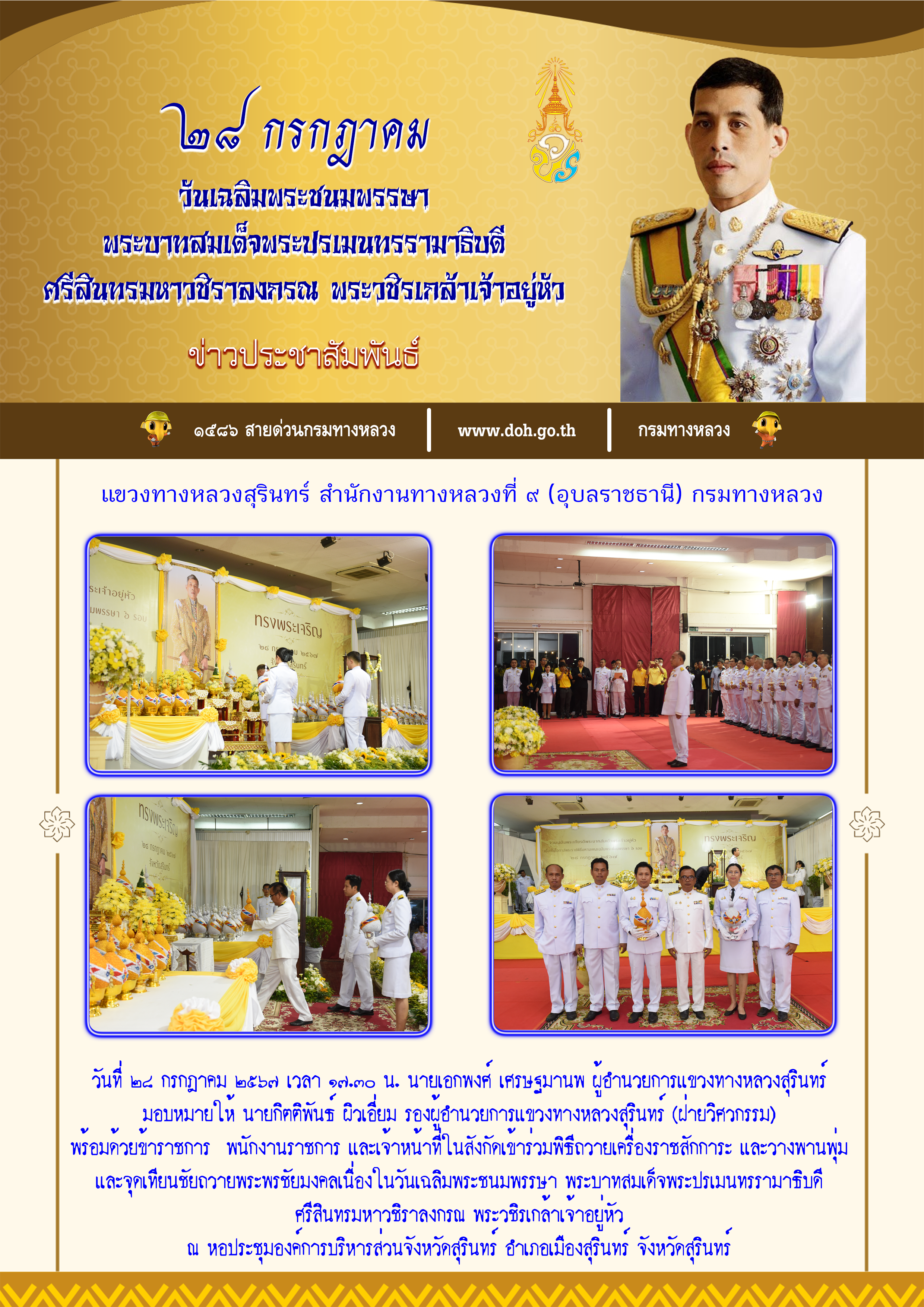วันที่ ๒๘ กรกฎาคม ๒๕๖๗ เวลา ๑๗.๓๐ น. นายเอกพงศ์ เศรษฐมานพ ผู้อำนวยการแขวงทางหลวงสุรินทร์