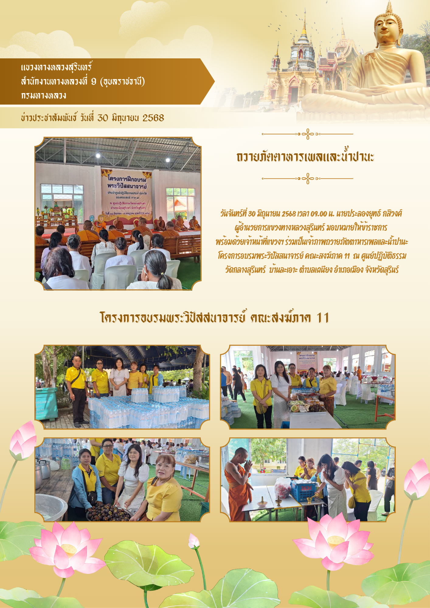 ผู้อำนวยการแขวงทางหลวงสุรินทร์ มอบหมายให้ข้าราชการ พร้อมด้วยเจ้าหน้าที่แขวงฯ ร่วมเป็นเจ้าภาพถวายภัตตาหารเพลและน้ำปานะ