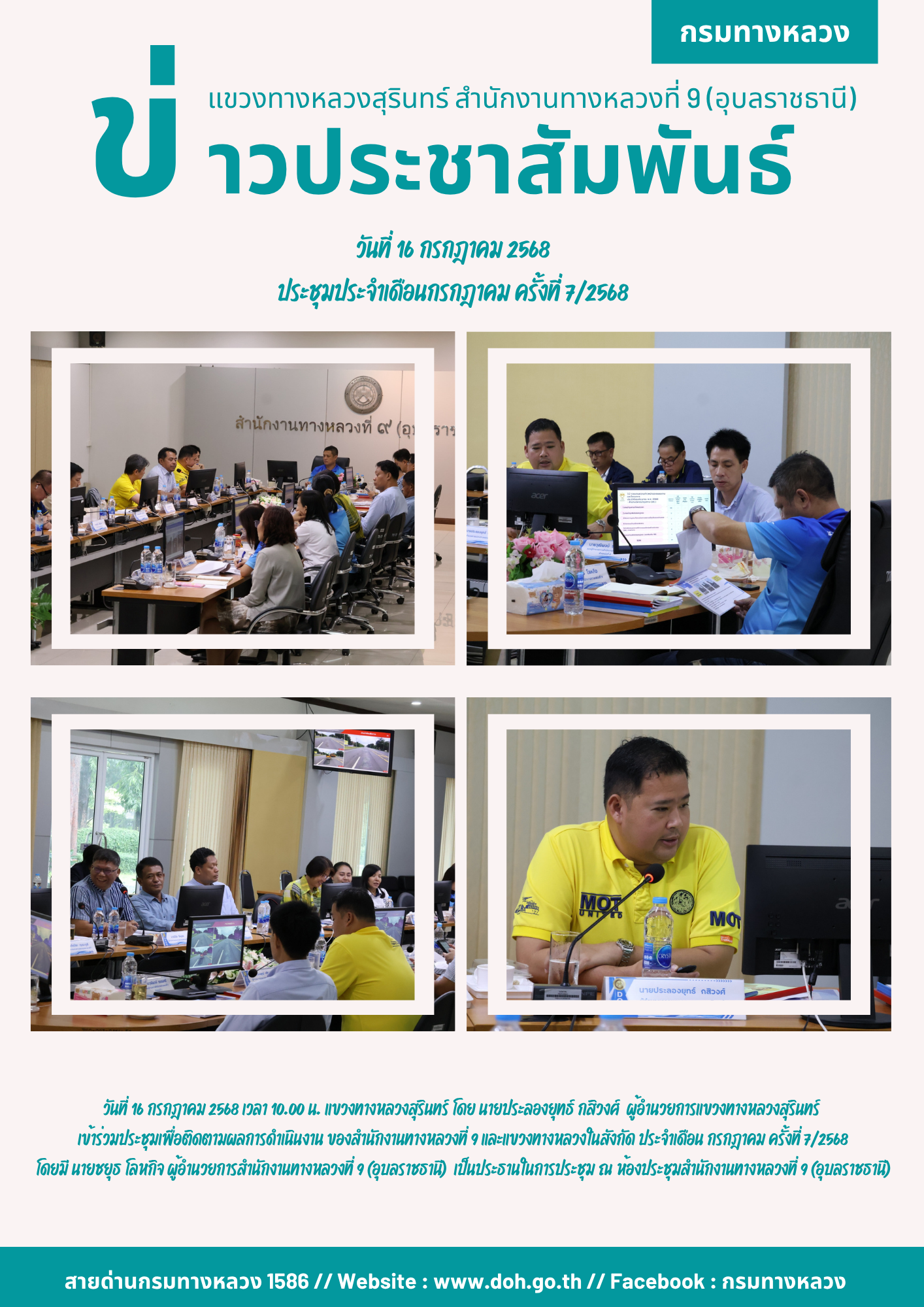 เข้าร่วมประชุมเพื่อติดตามผลการดำเนินงาน ของสำนักงานทางหลวงที่ 9 และแขวงทางหลวงในสังกัด ประจำเดือน กรกฎาคม ครั้งที่ 7/2568