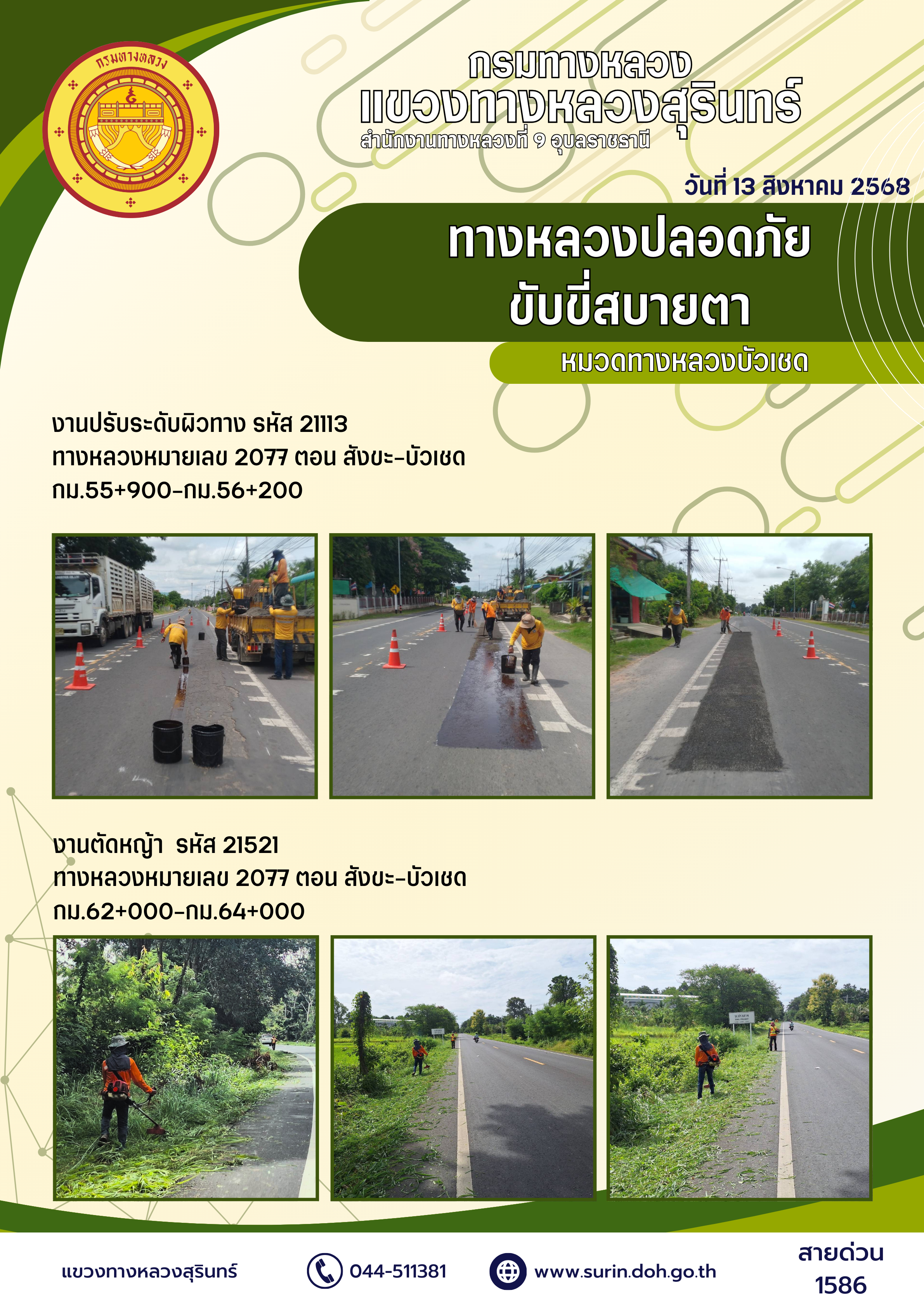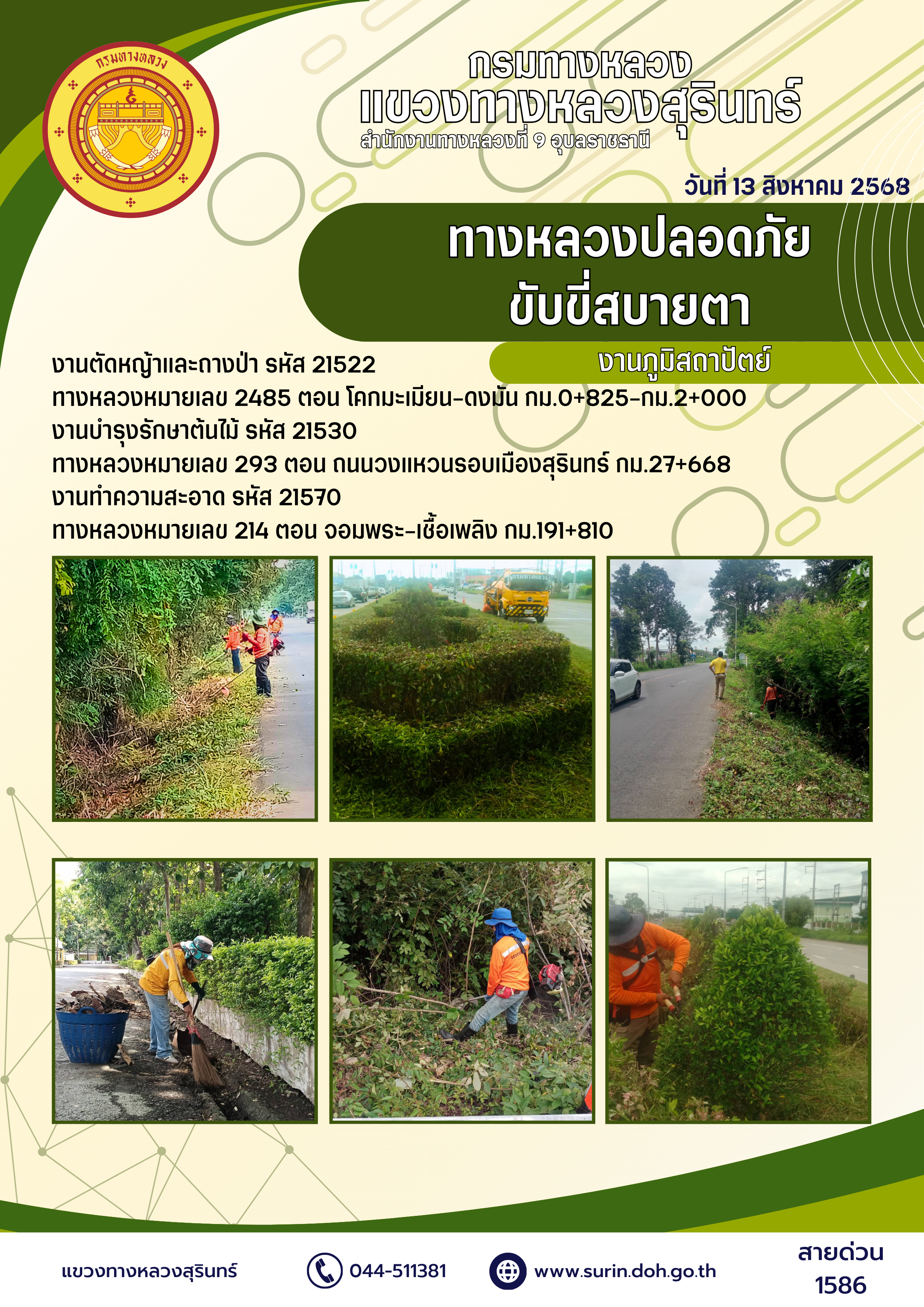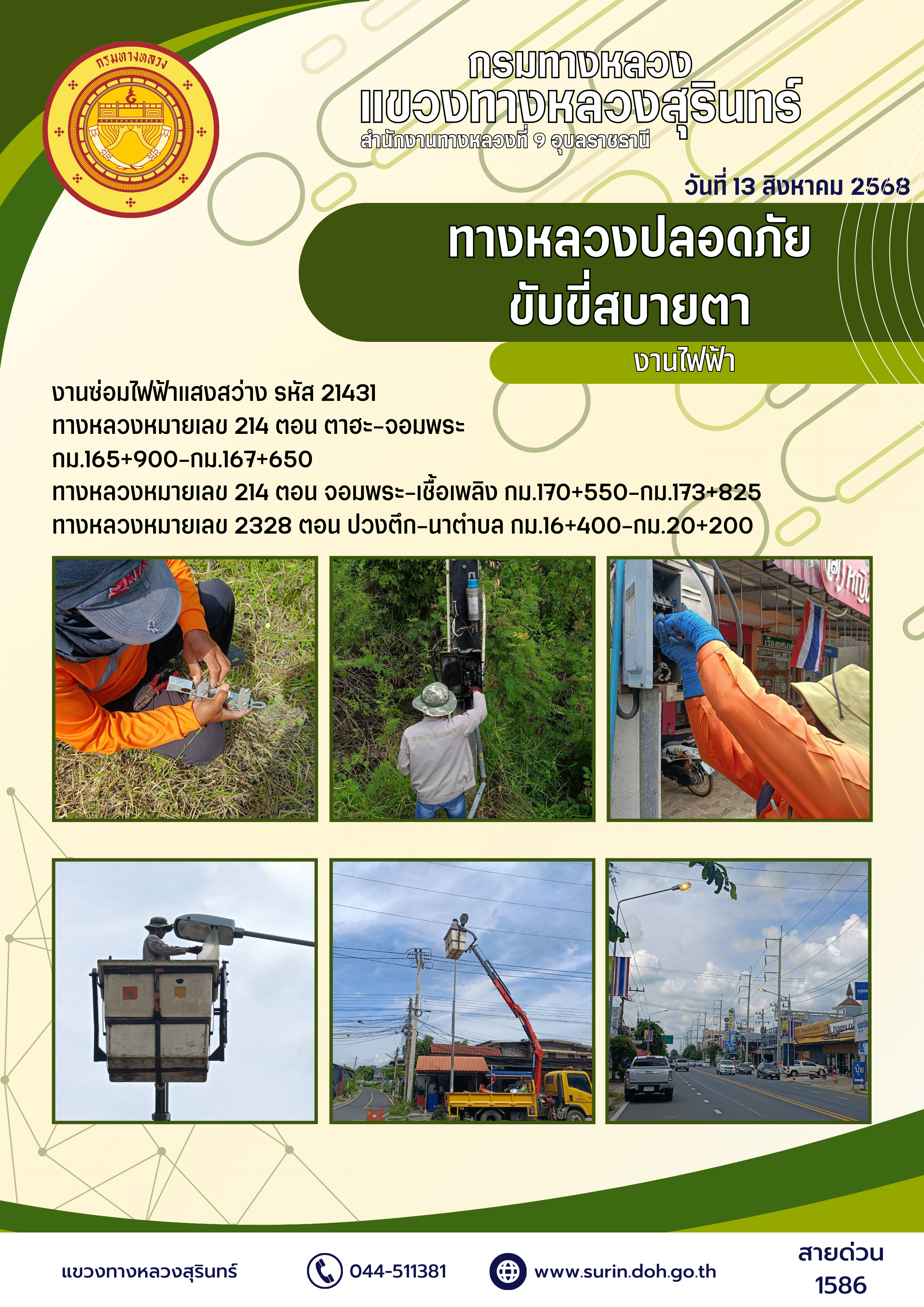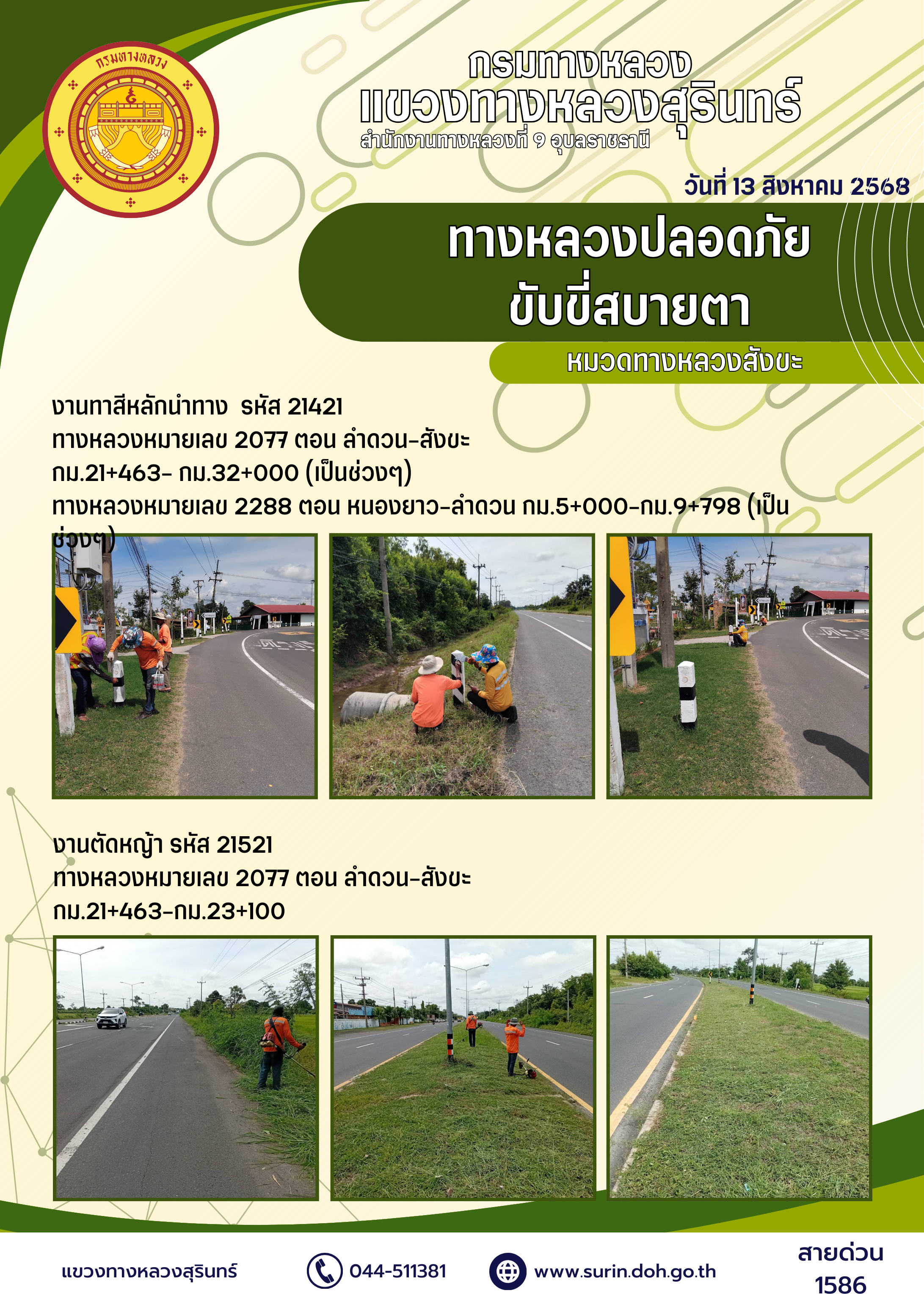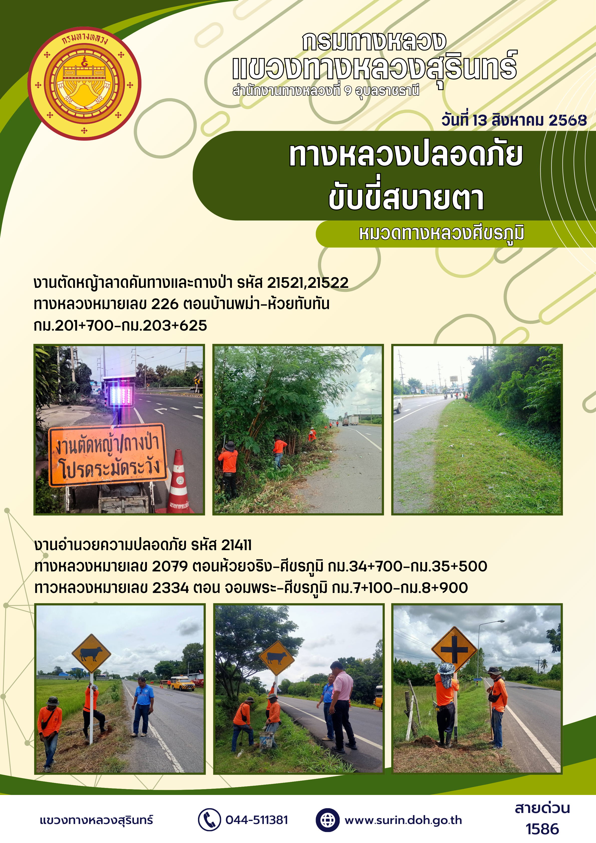 ข้อมูลข่าว : ทางหลวงปลอดภัย ขับขี่สบายตา 13 สิงหาคม 2568