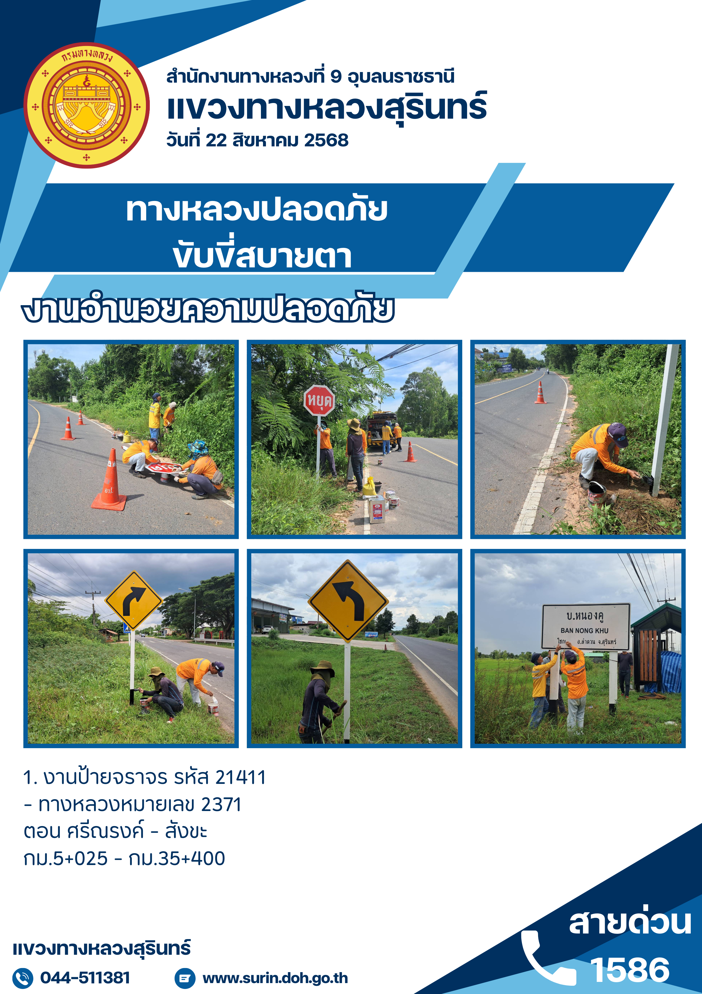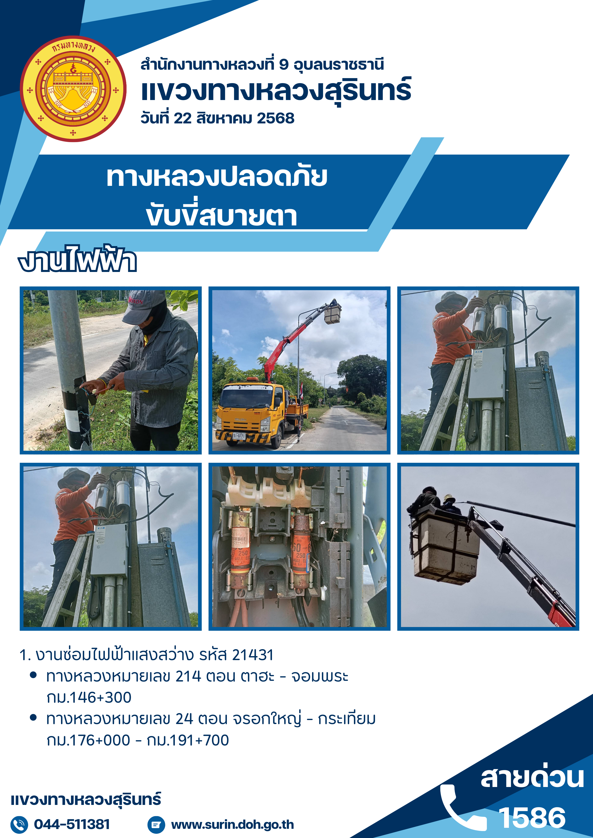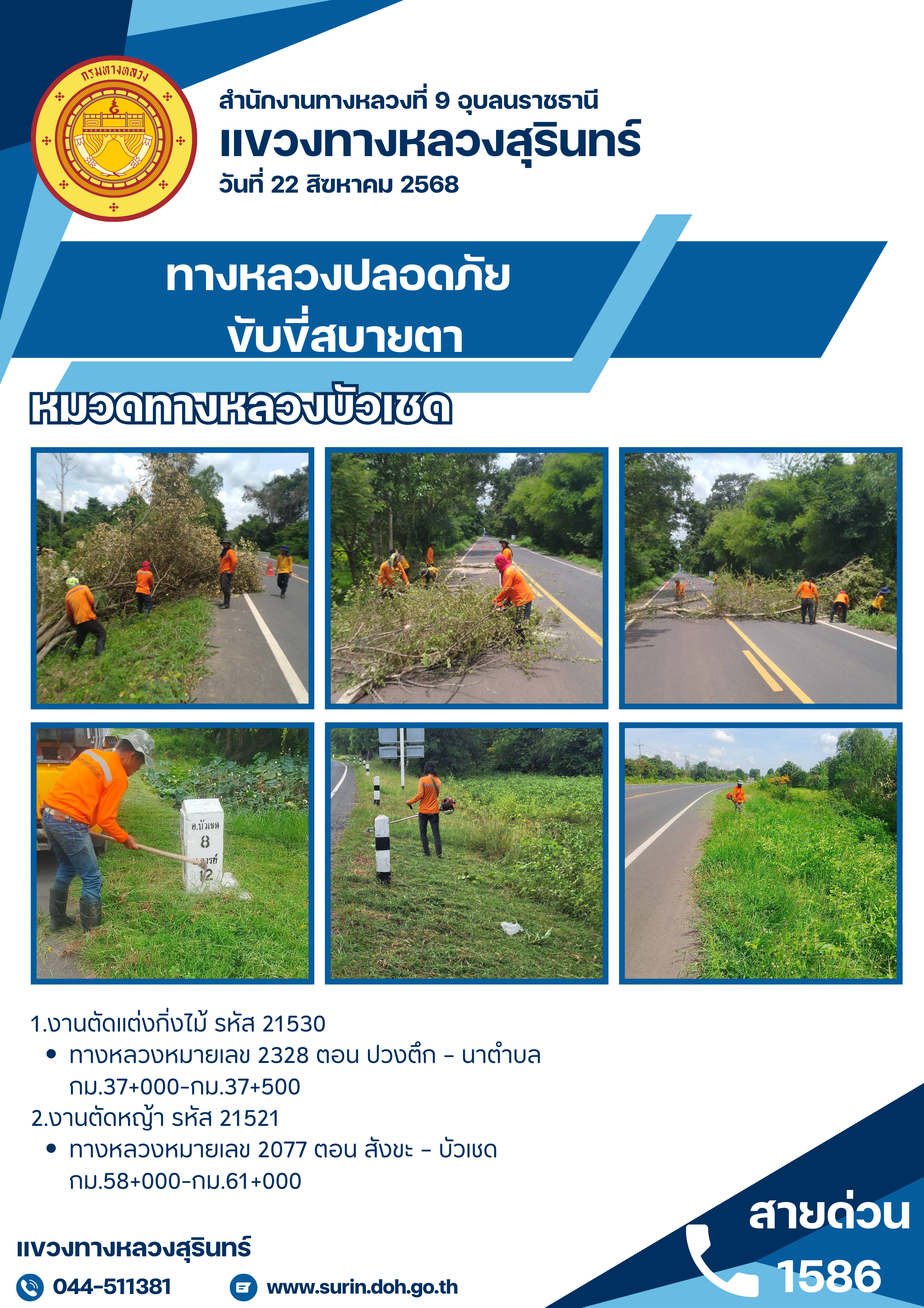 ข้อมูลข่าว : ทางหลวงปลอดภัย ขับขี่สบายตา 22 สิงหาคม 2568