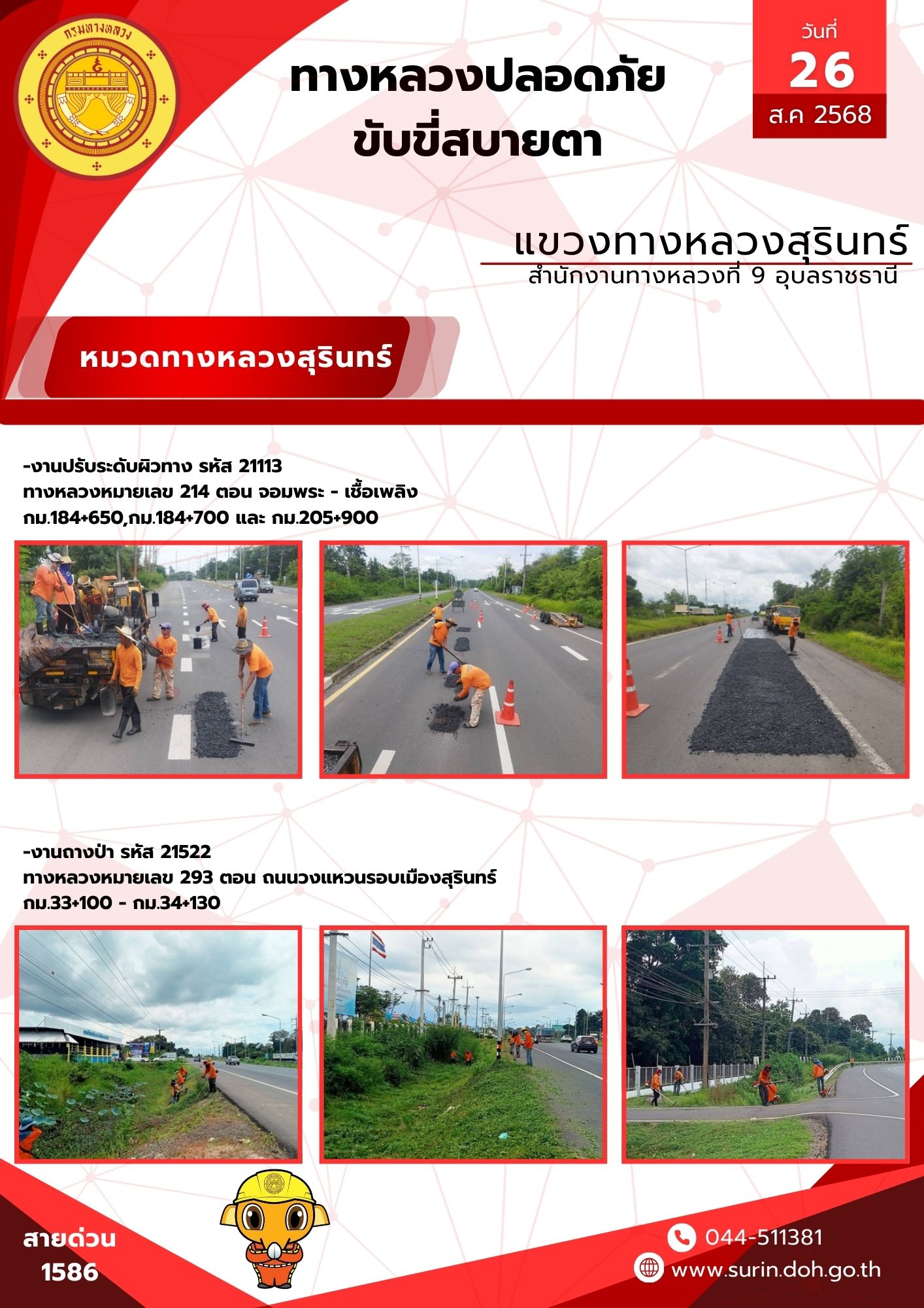 ข้อมูลข่าว : ทางหลวงปลอดภัย ขับขี่สบายตา 26 สิงหาคม 2568