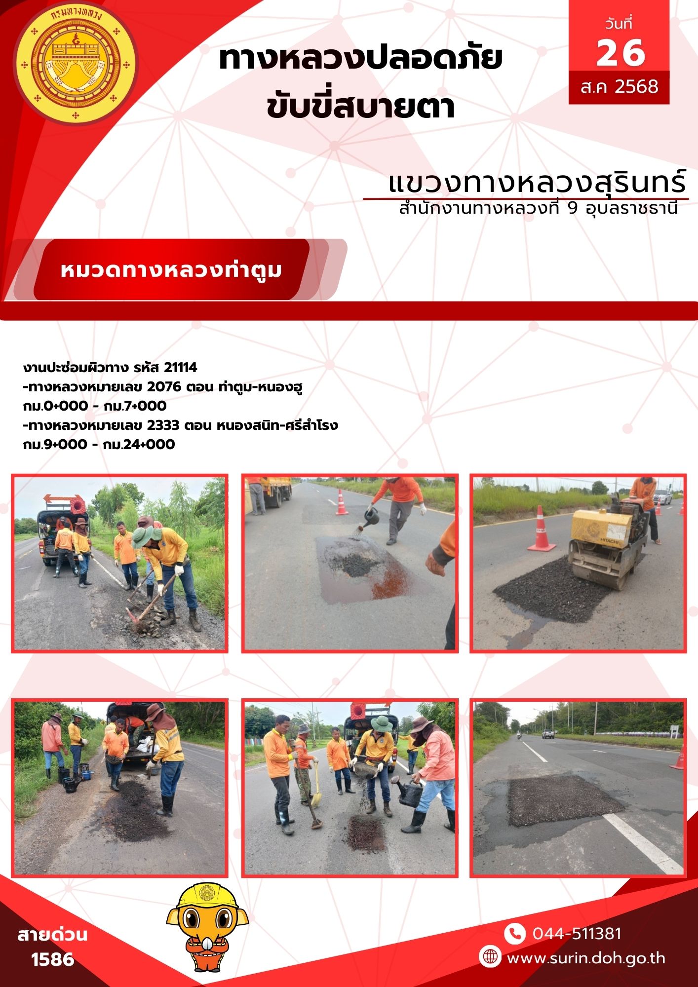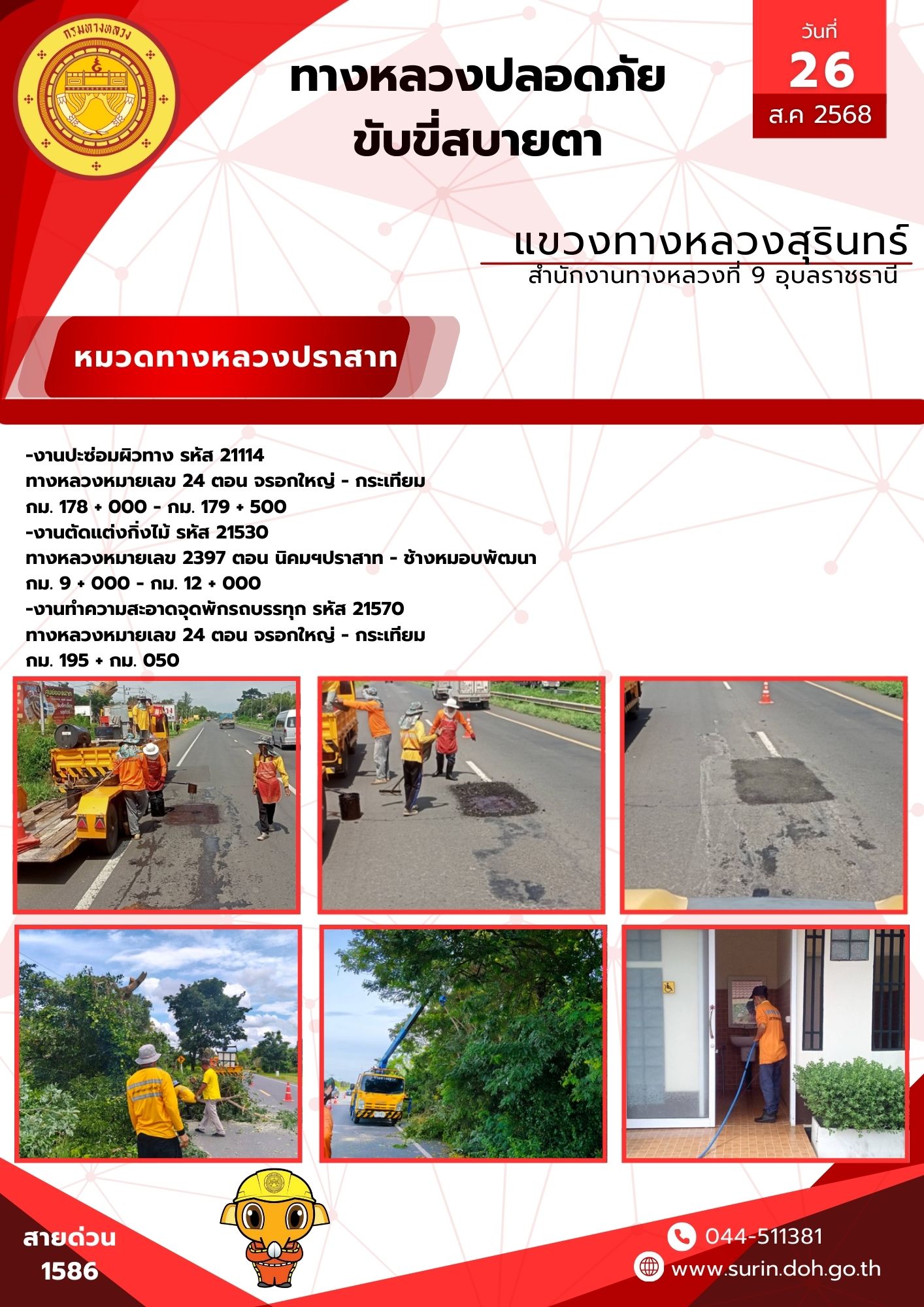 ทางหลวงปลอดภัย ขับขี่สบายตา 26 สิงหาคม 2568