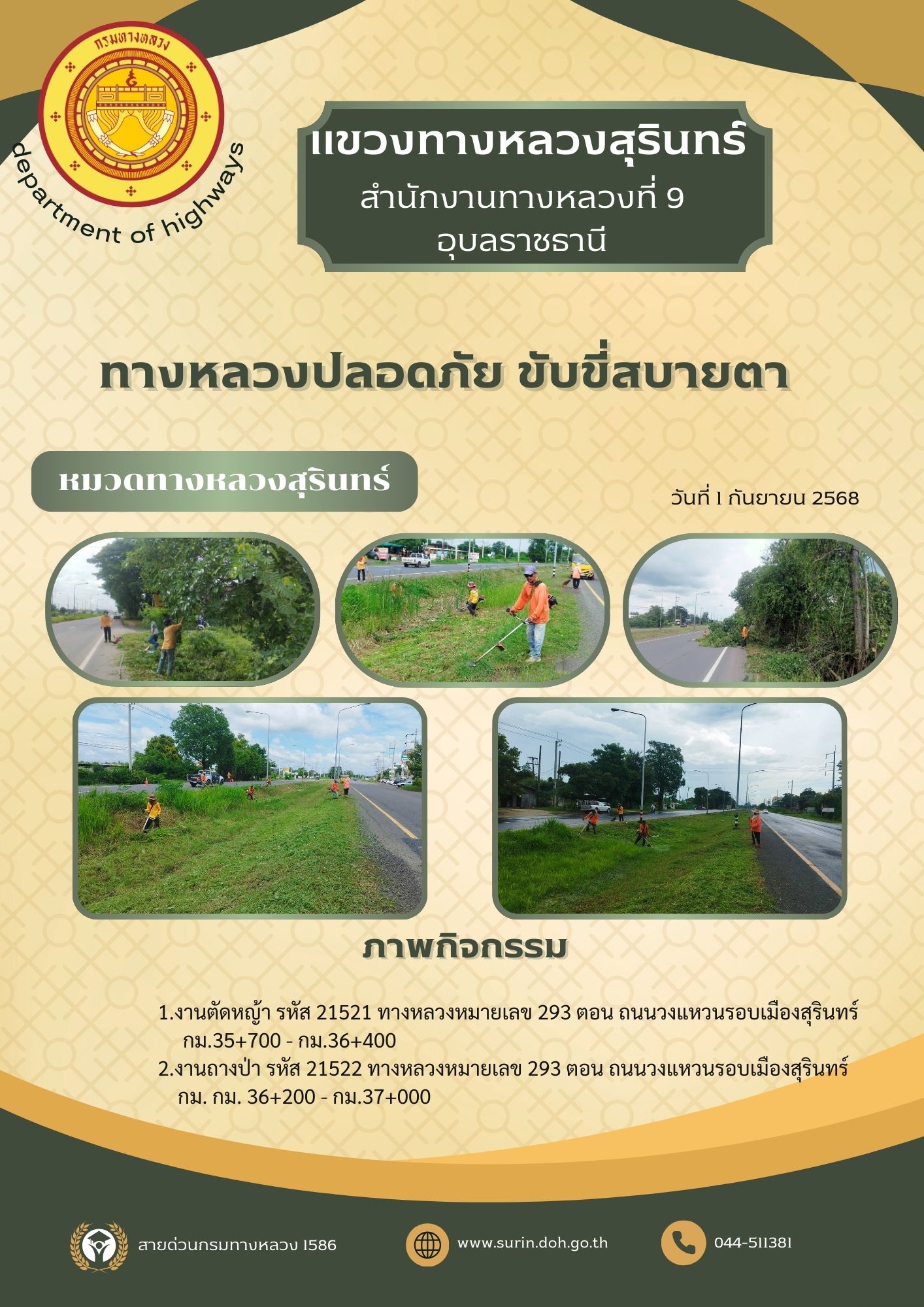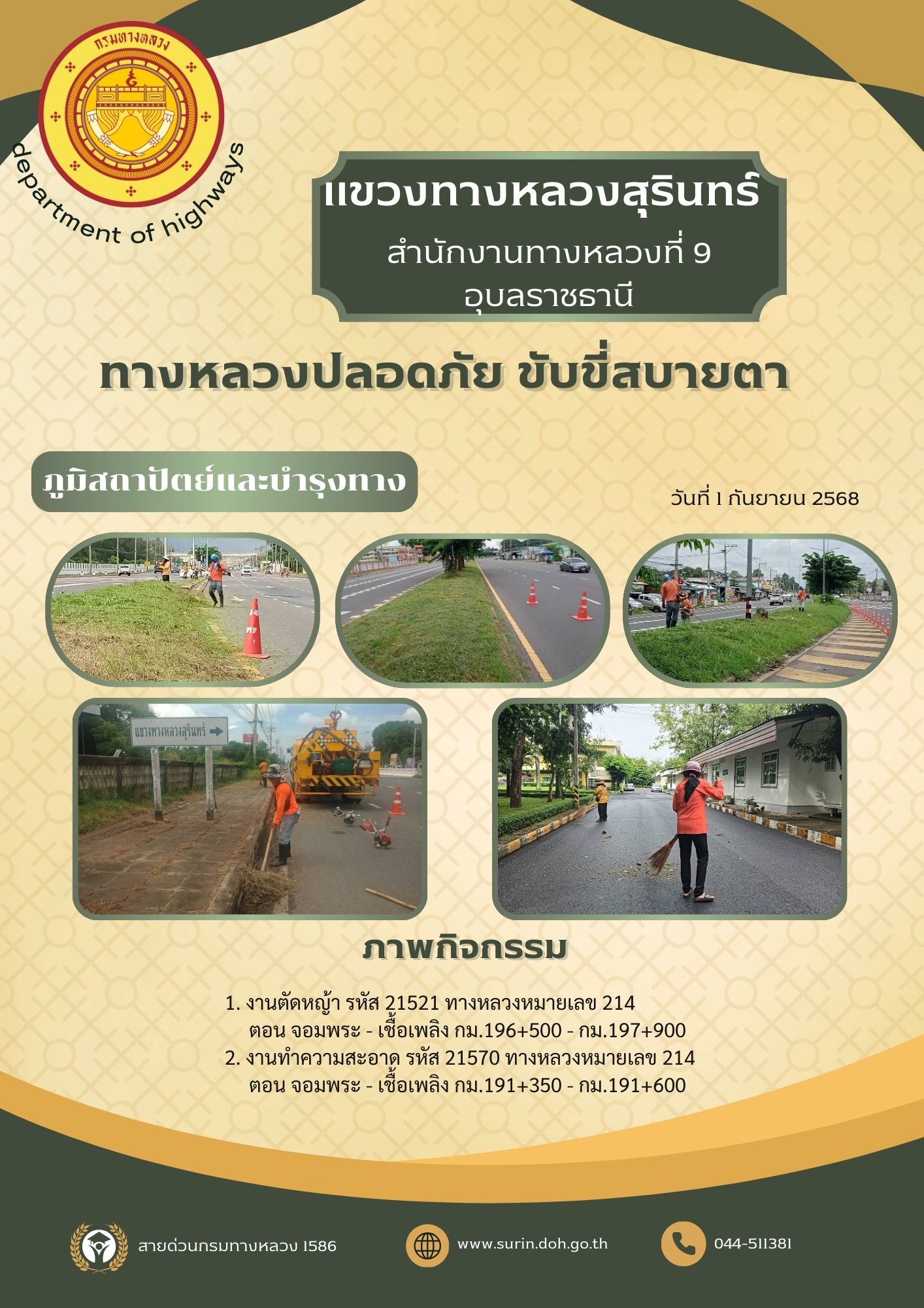 ข้อมูลข่าว : ทางหลวงปลอดภัย ขับขี่สบายตา 1 กันยายน 2568