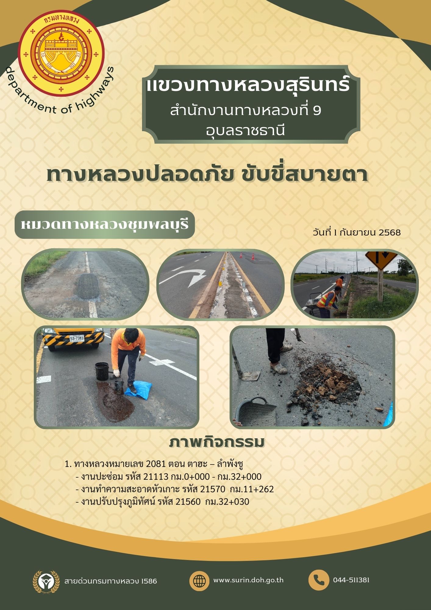 ทางหลวงปลอดภัย ขับขี่สบายตา 1 กันยายน 2568
