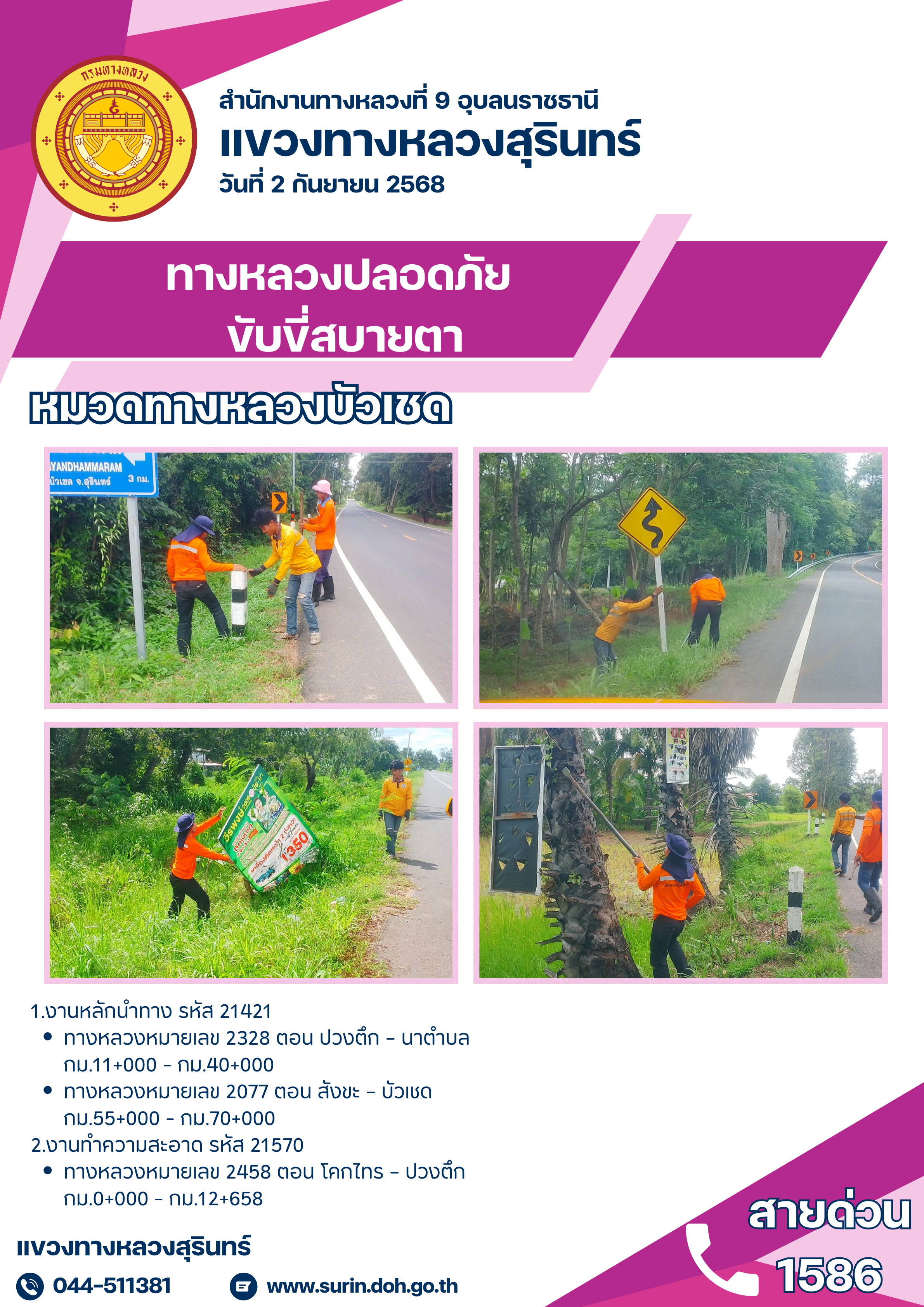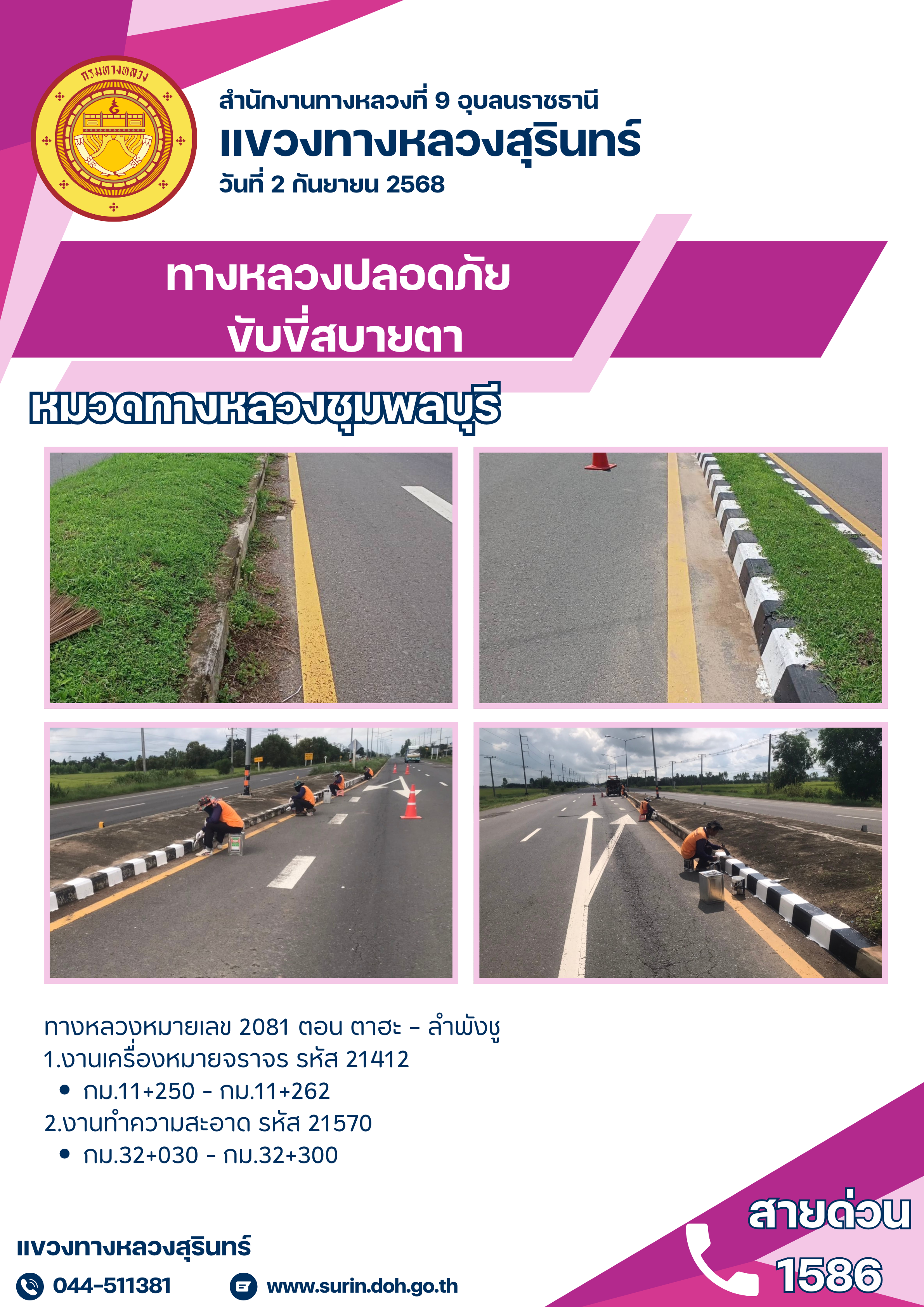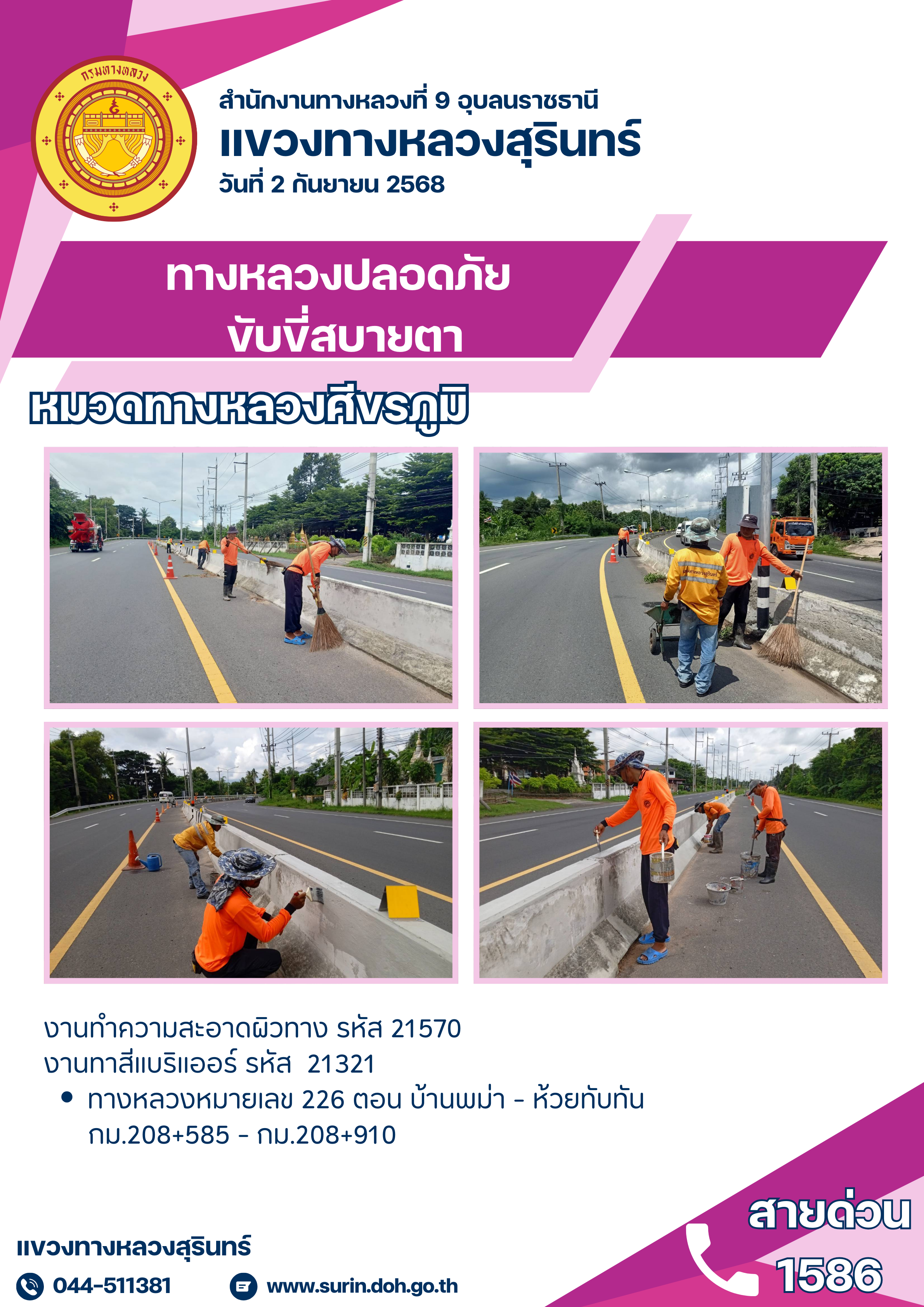 ทางหลวงปลอดภัย ขับขี่สบายตา 2 กันยายน 2568