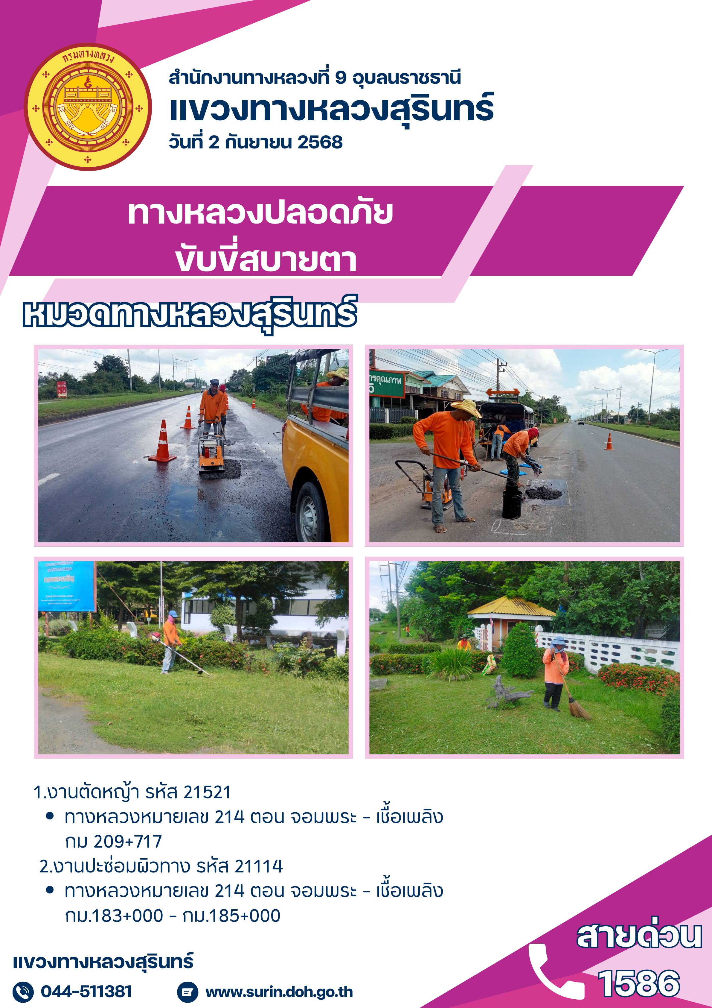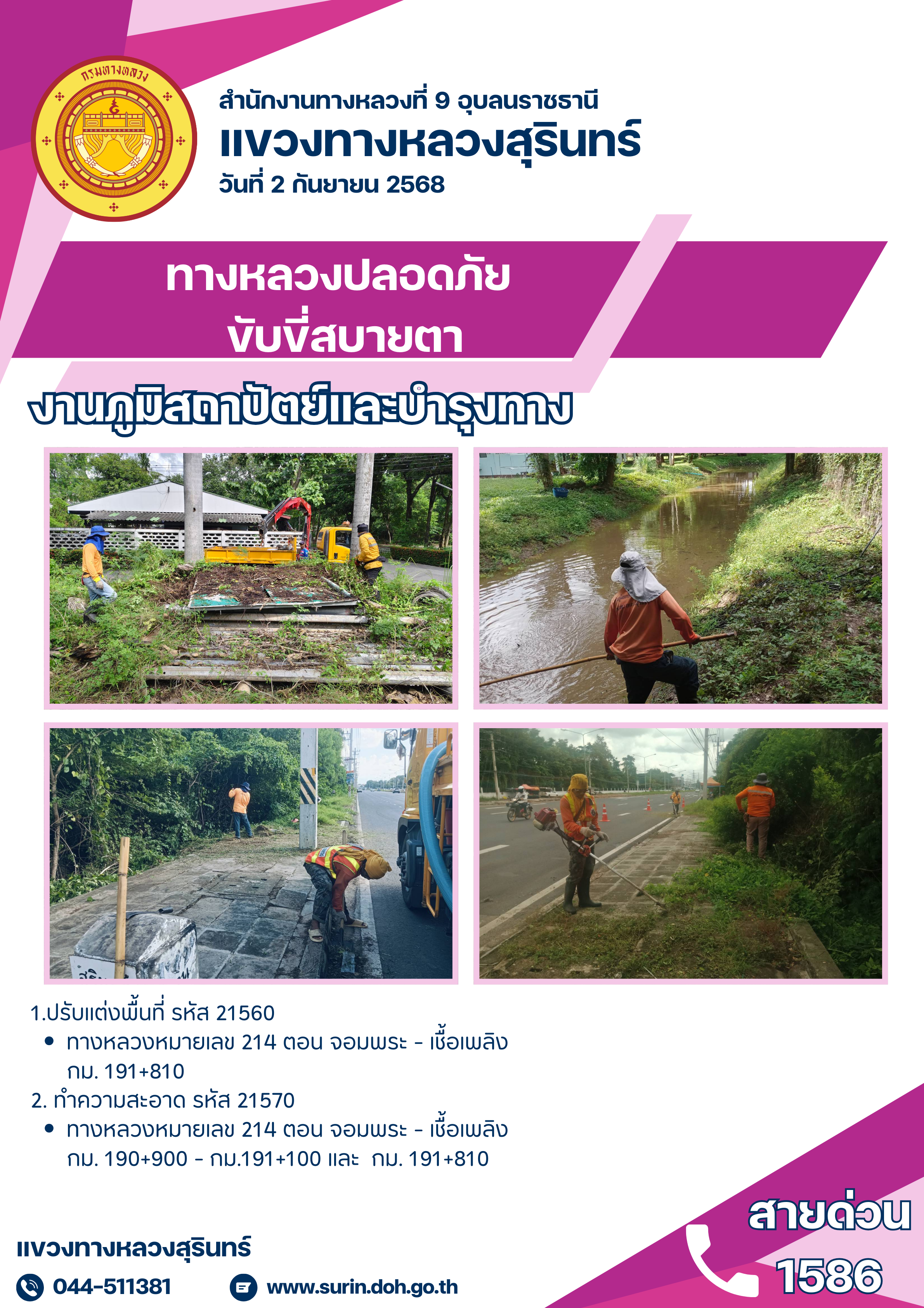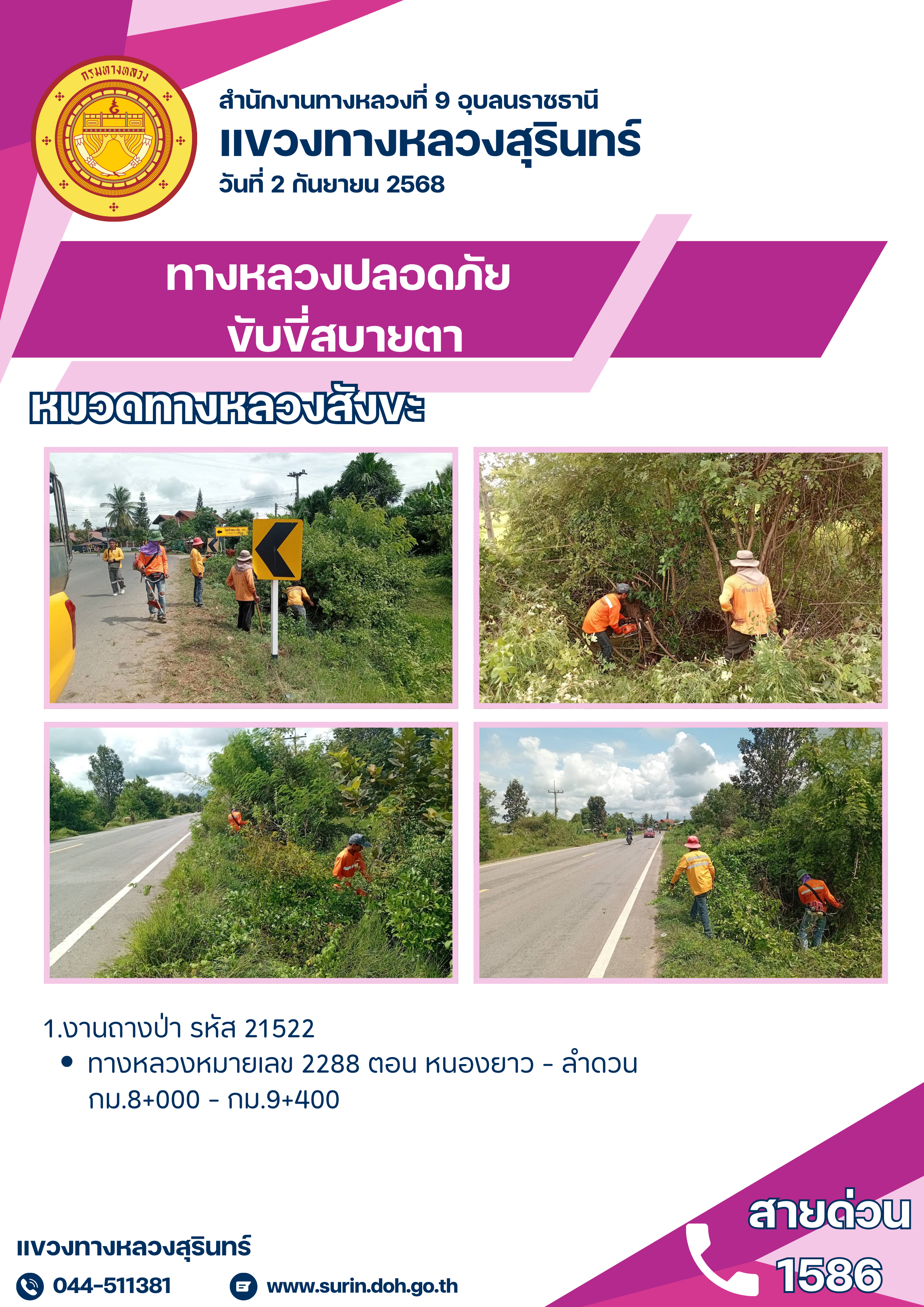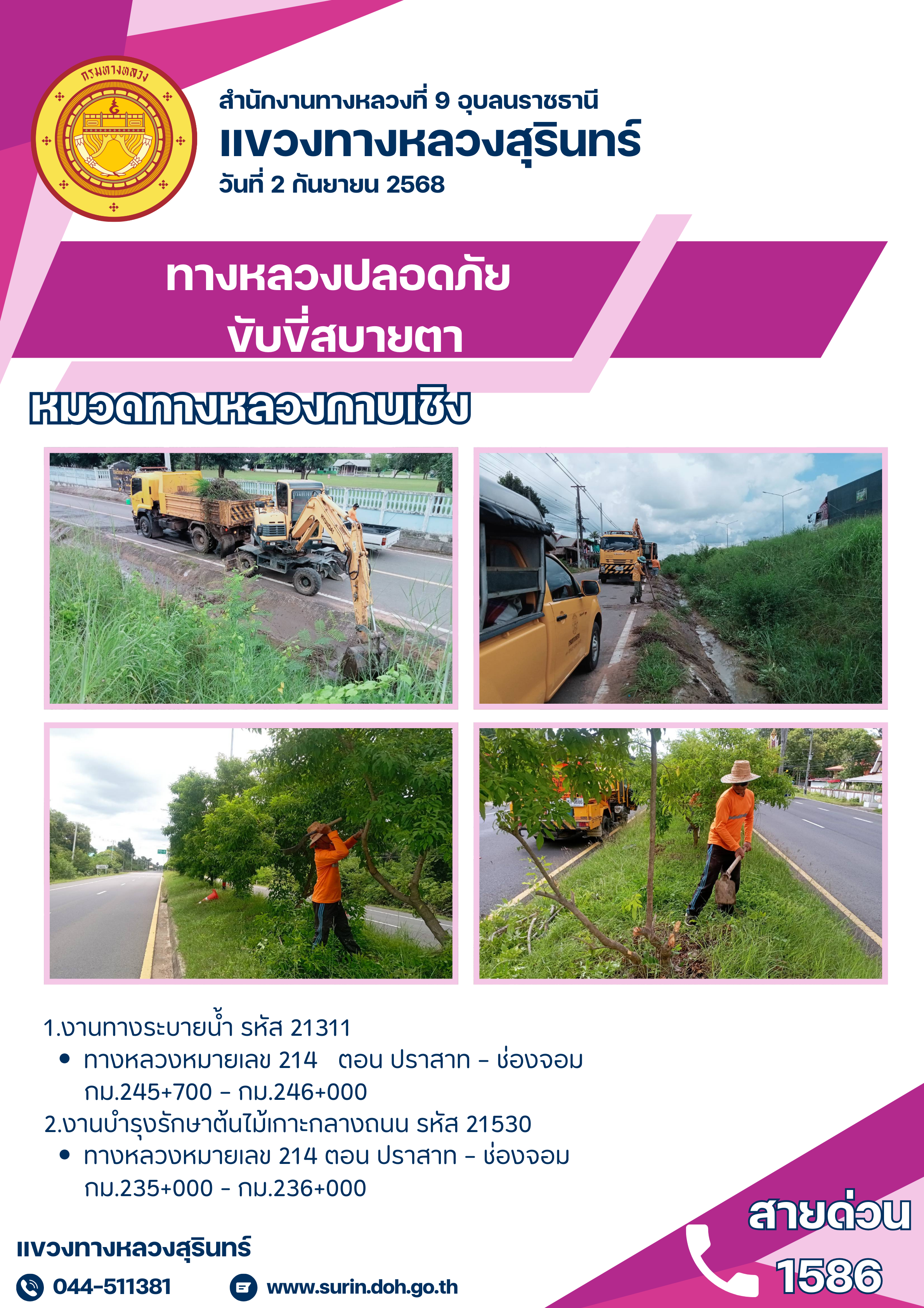 ทางหลวงปลอดภัย ขับขี่สบายตา 2 กันยายน 2568