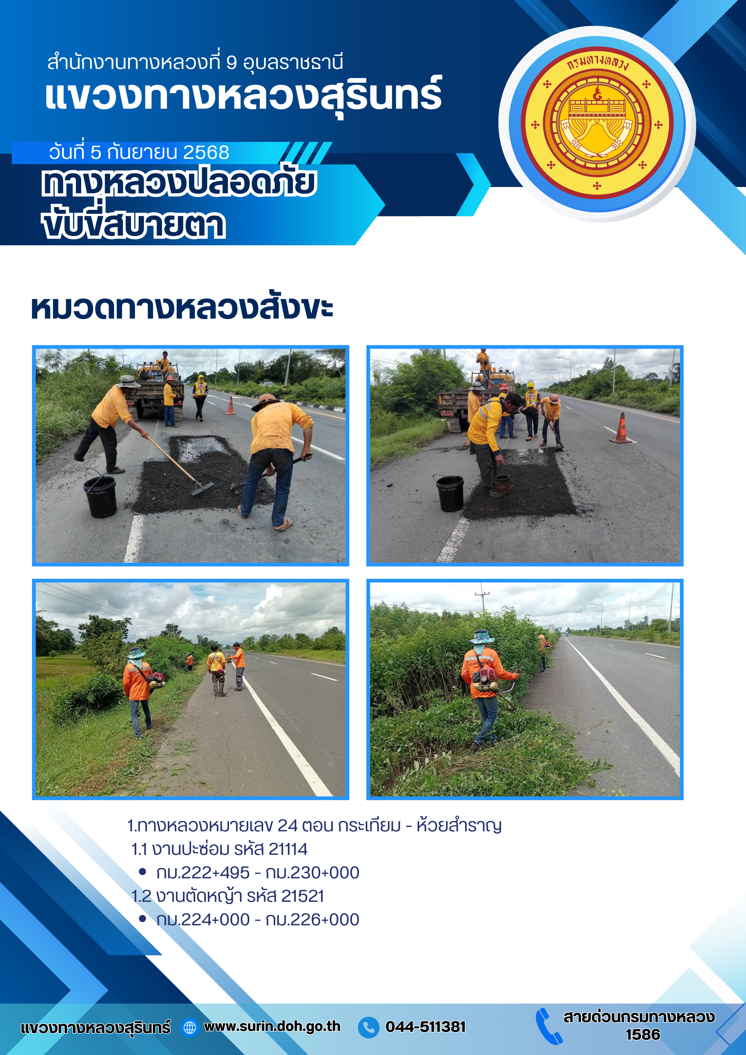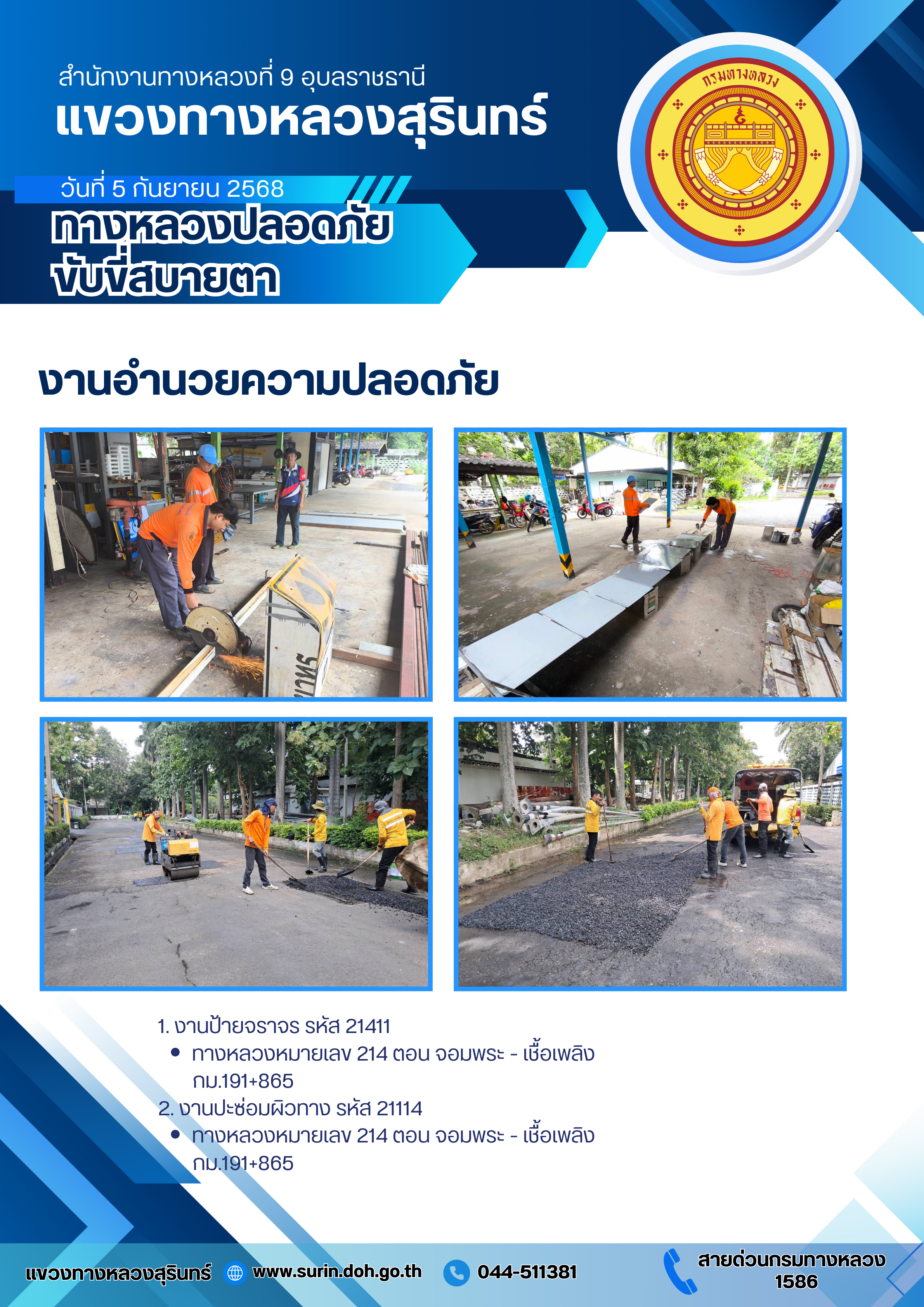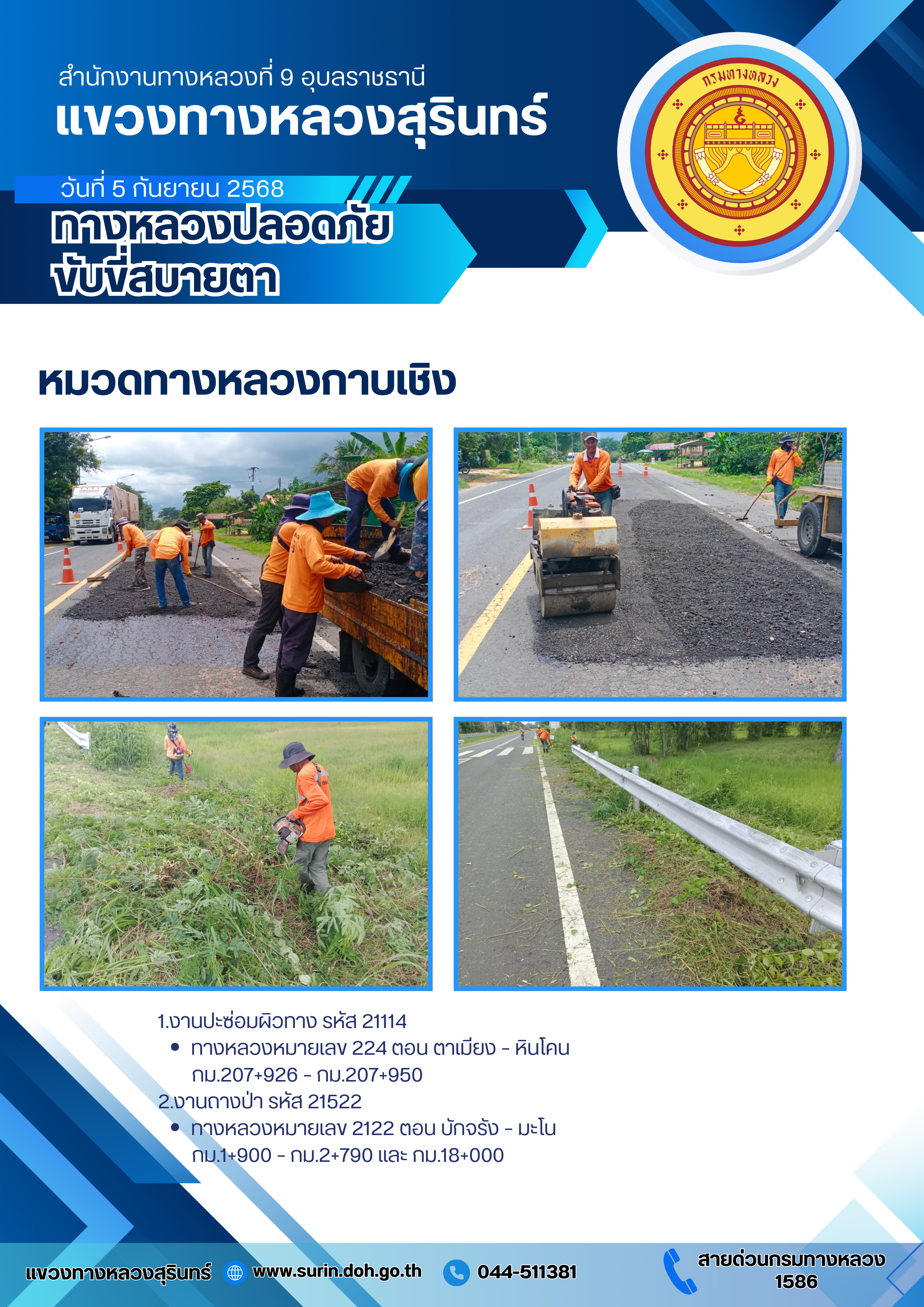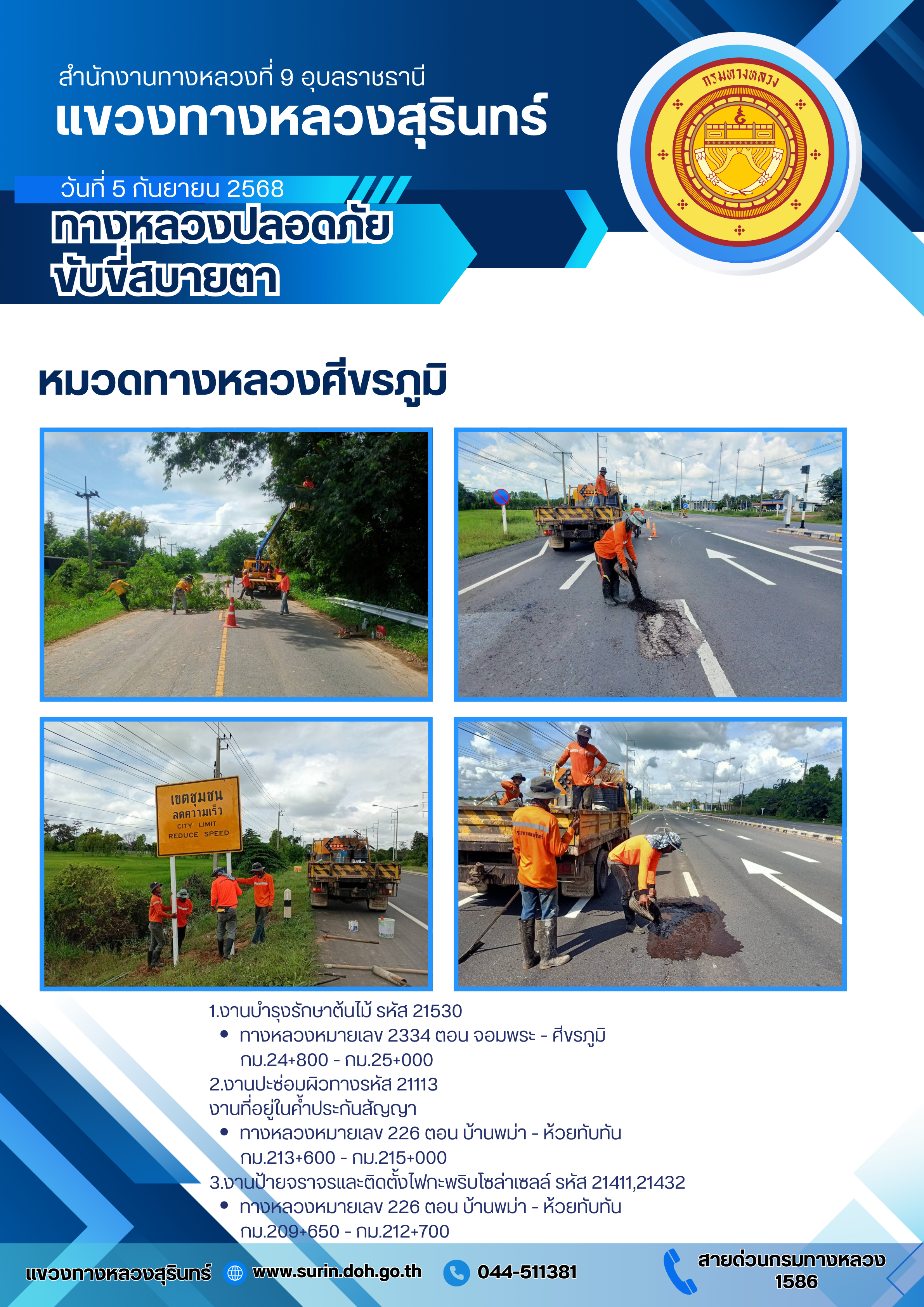 ทางหลวงปลอดภัย ขับขี่สบายตา 5 กันยายน 2568