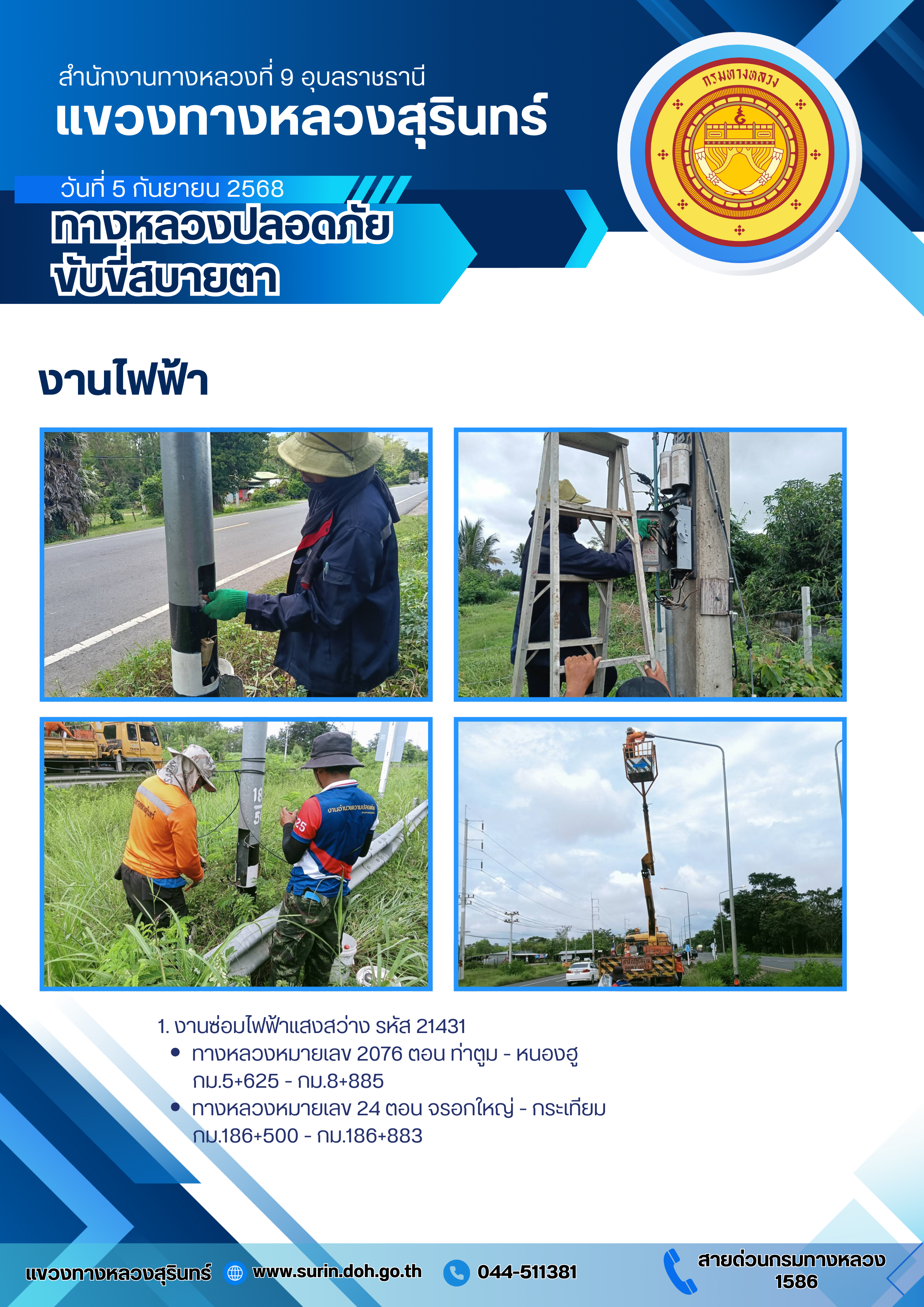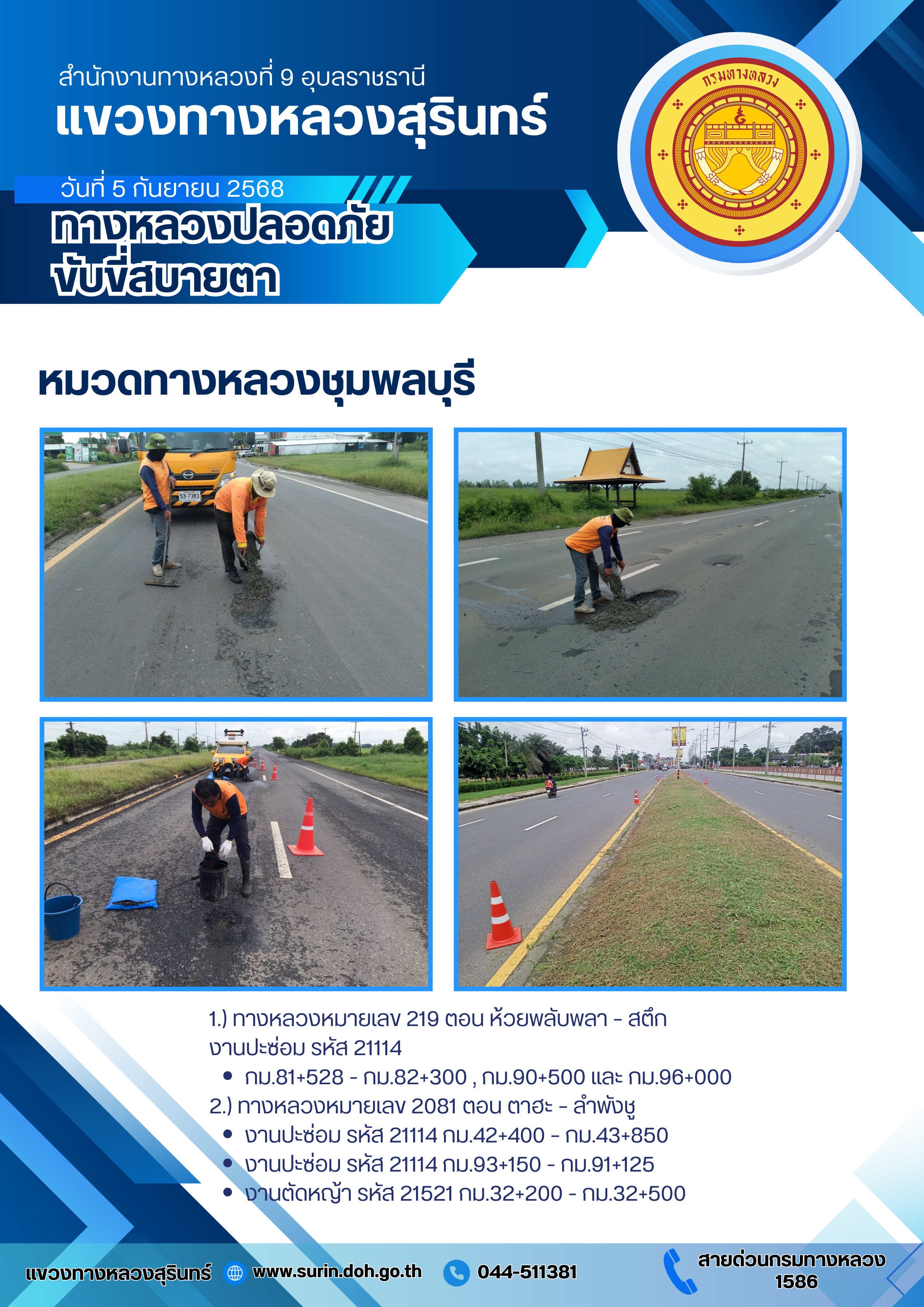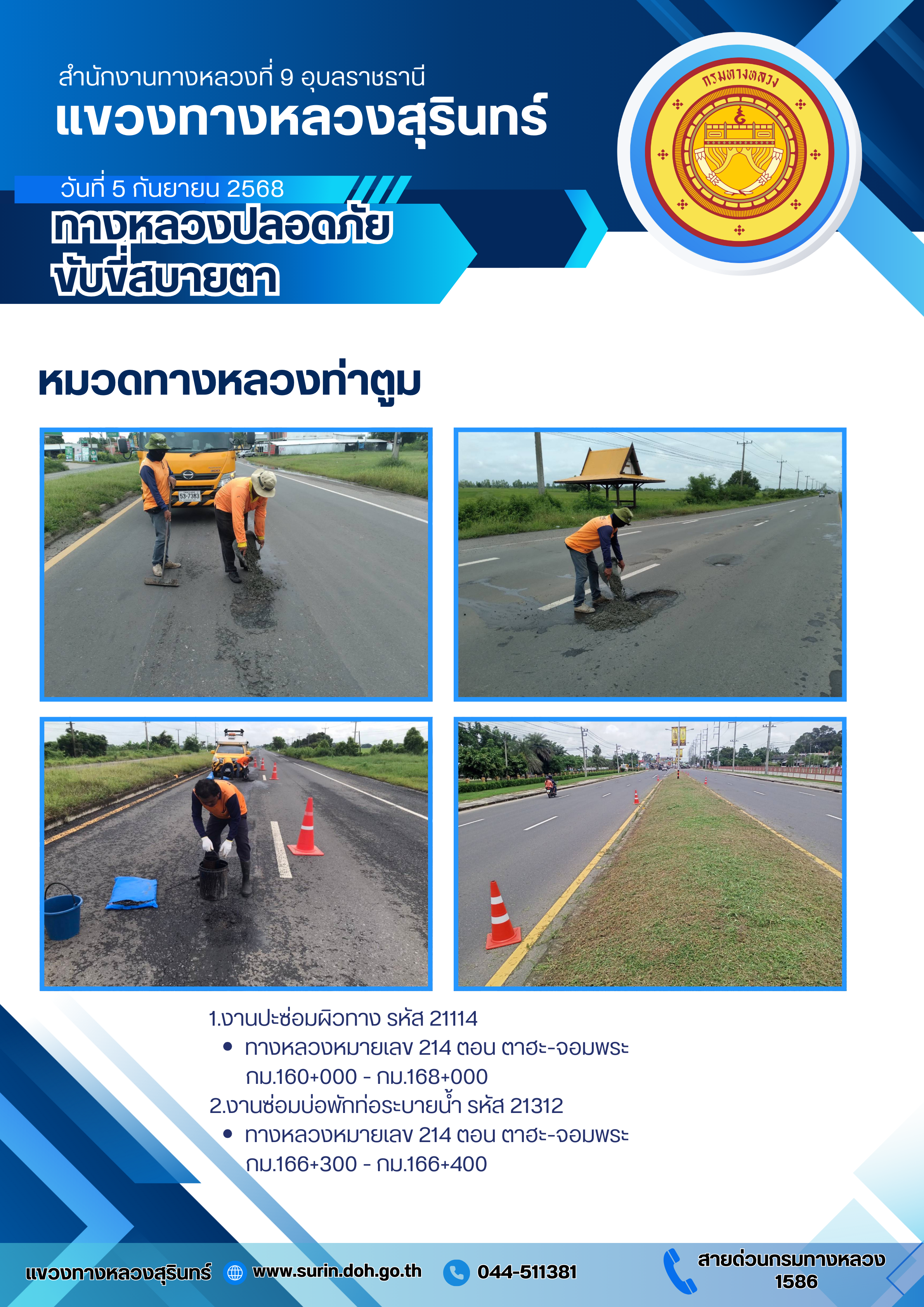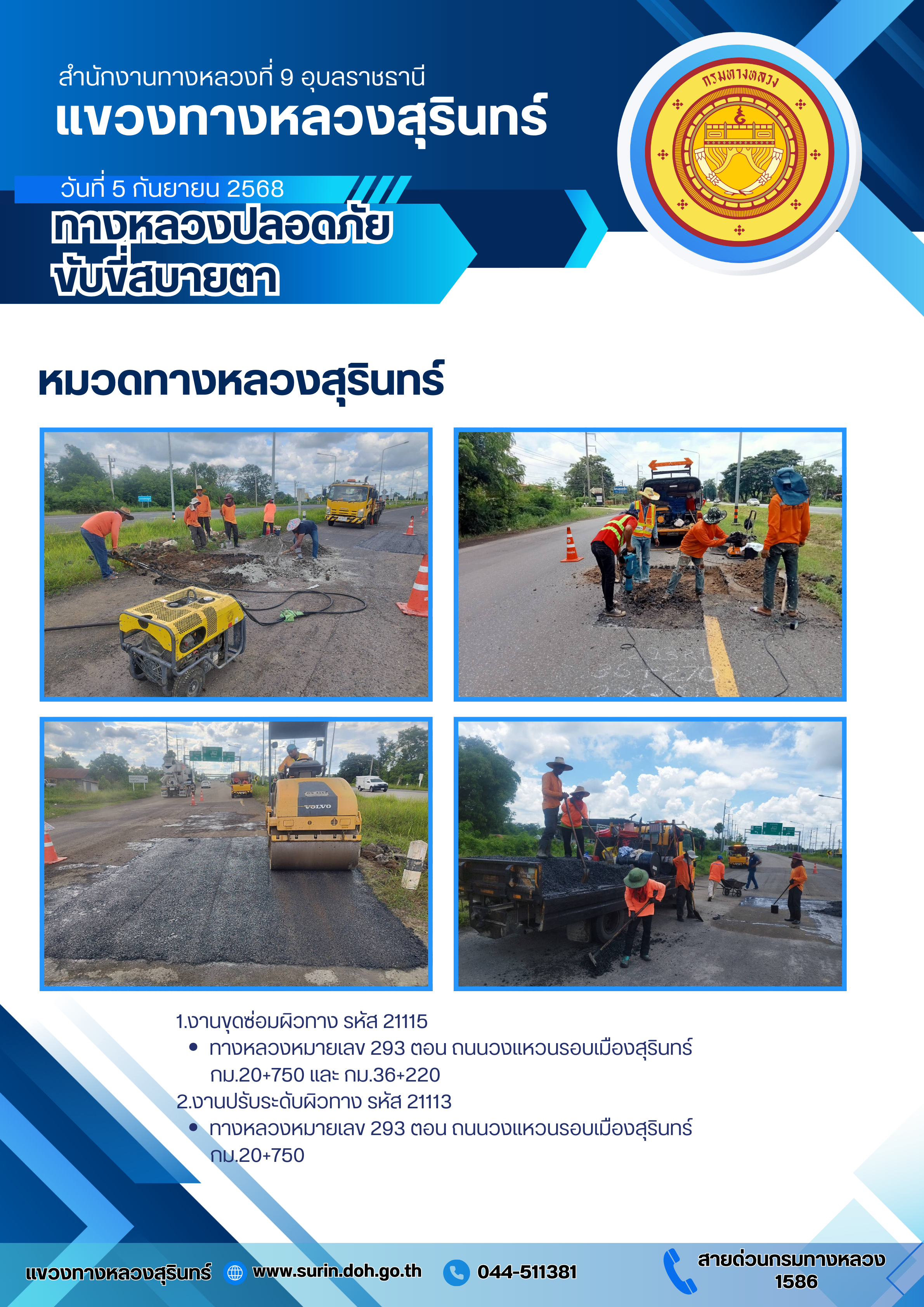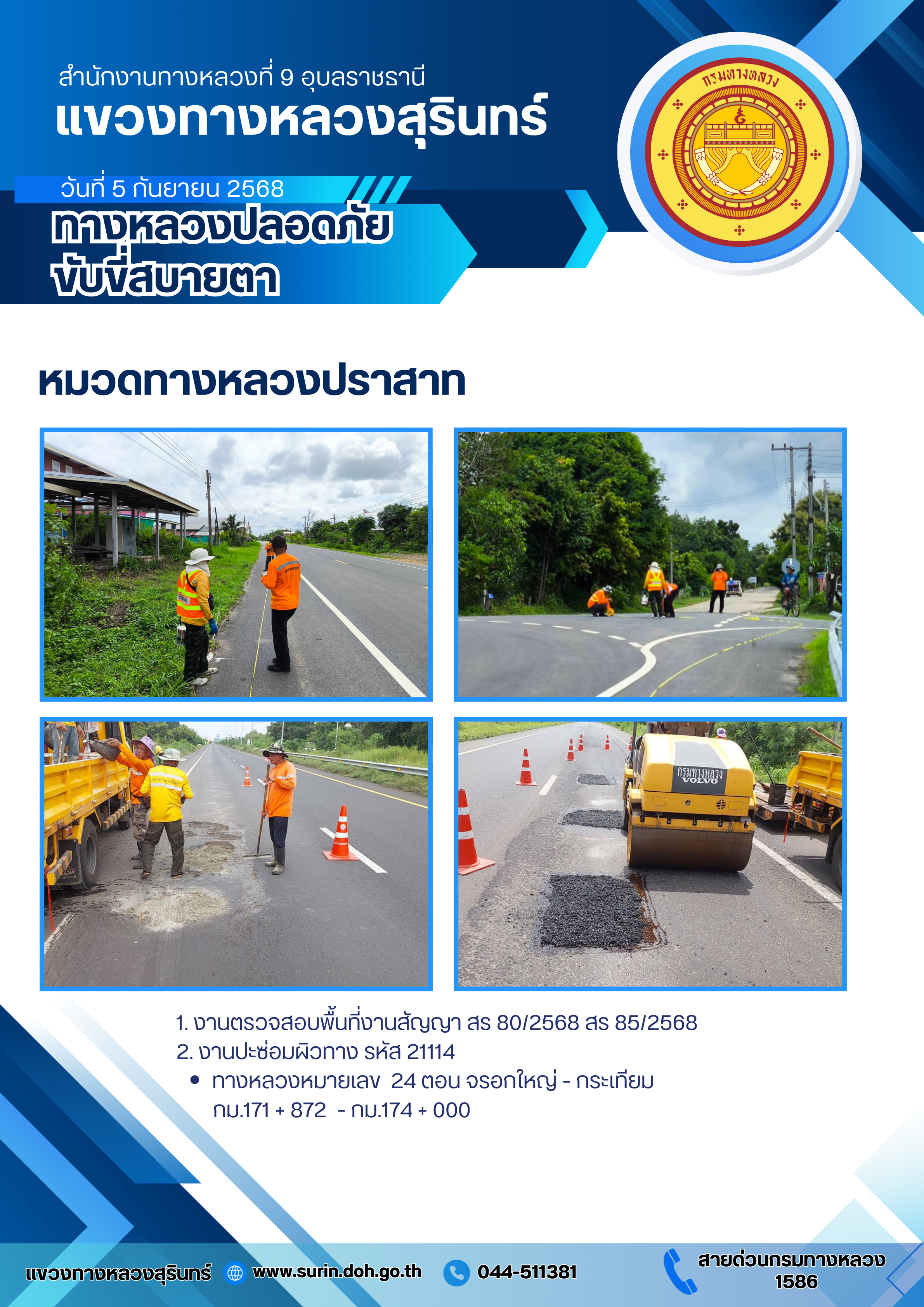 ทางหลวงปลอดภัย ขับขี่สบายตา 5 กันยายน 2568