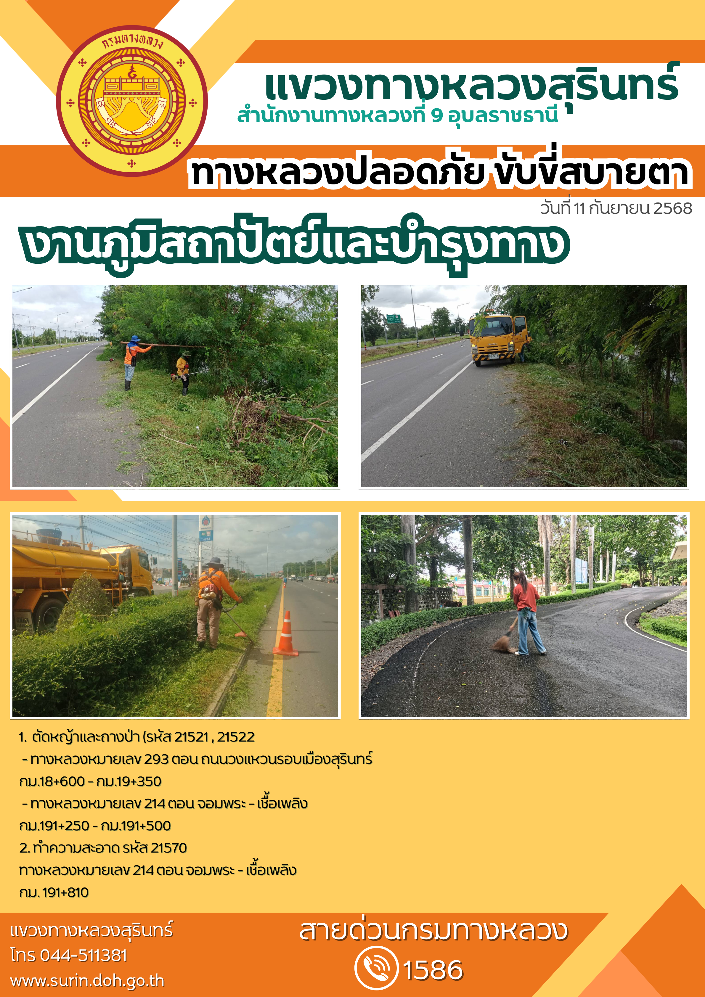ข้อมูลข่าว : ทางหลวงปลอดภัย ขับขี่สบายตา 11 กันยายน 2568