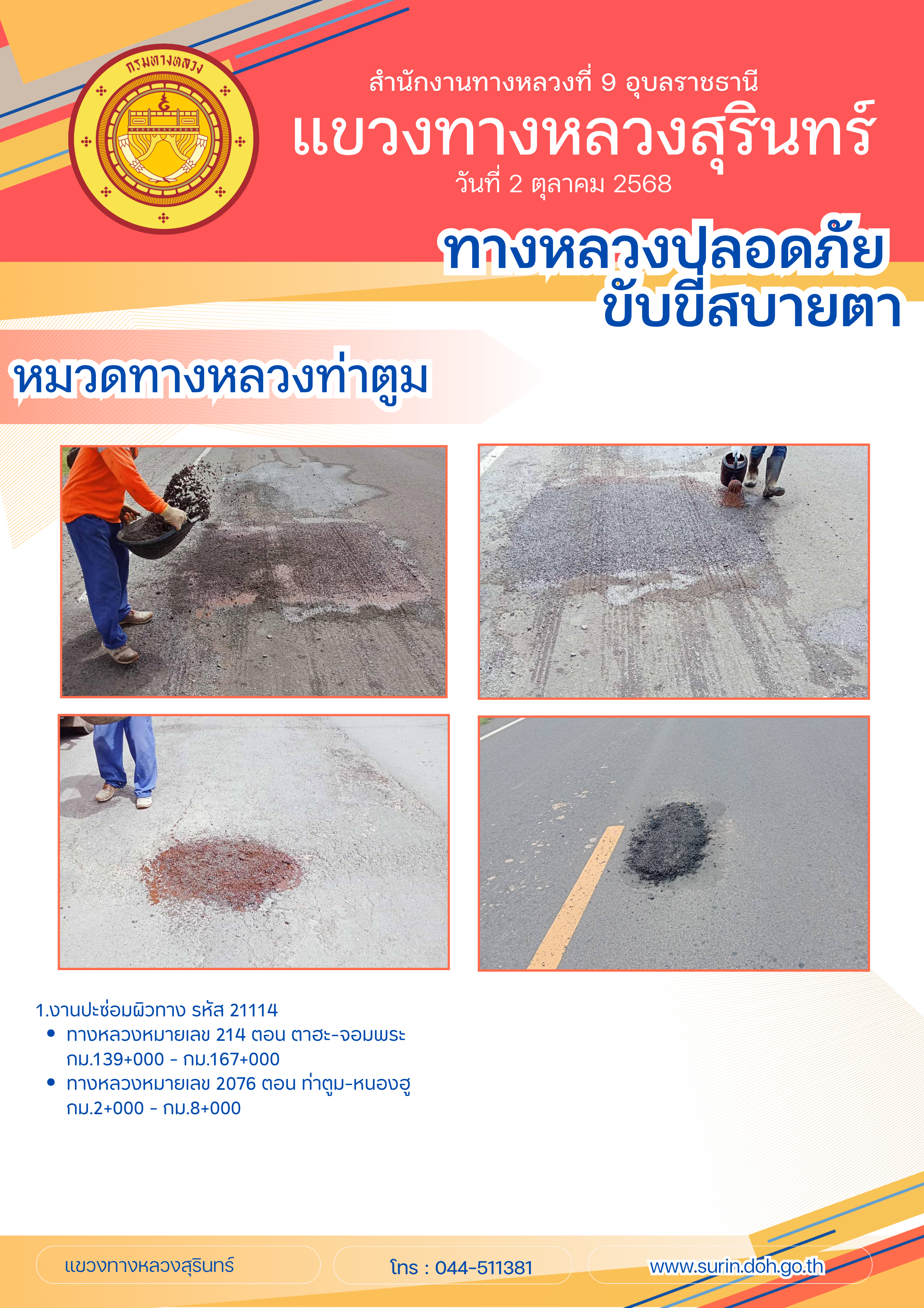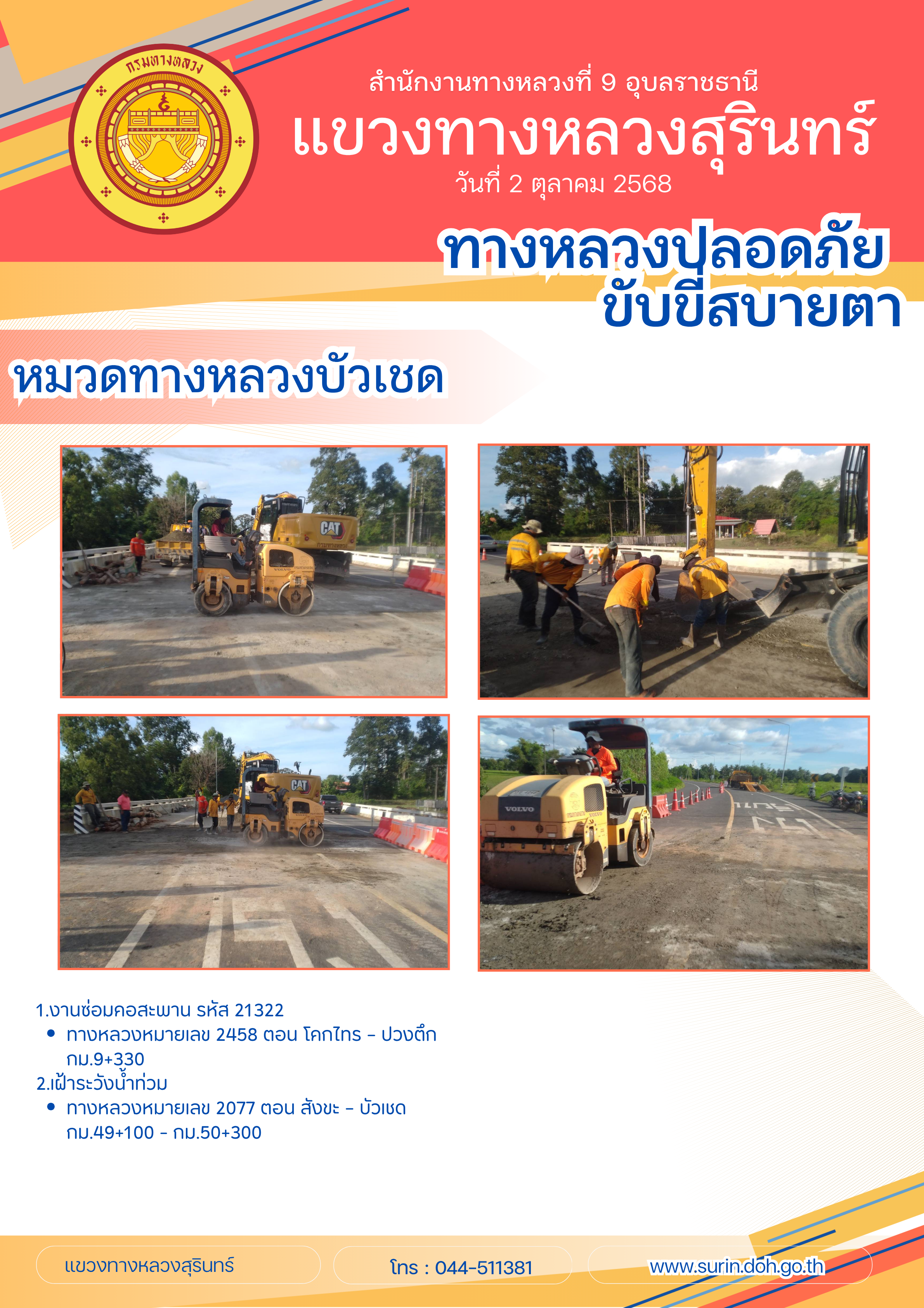 ข้อมูลข่าว : ทางหลวงปลอดภัย ขับขี่สบายตา 2 ตุลาคม 2568