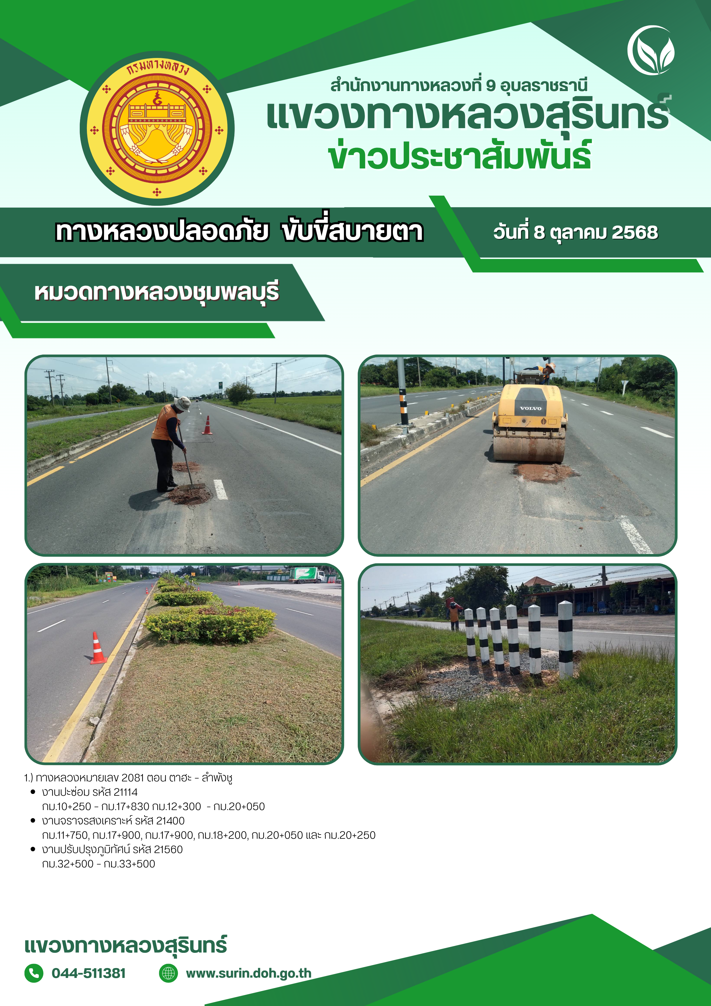 ข้อมูลข่าว : ทางหลวงปลอดภัย ขับขี่สบายตา 8 ตุลาคม 2568