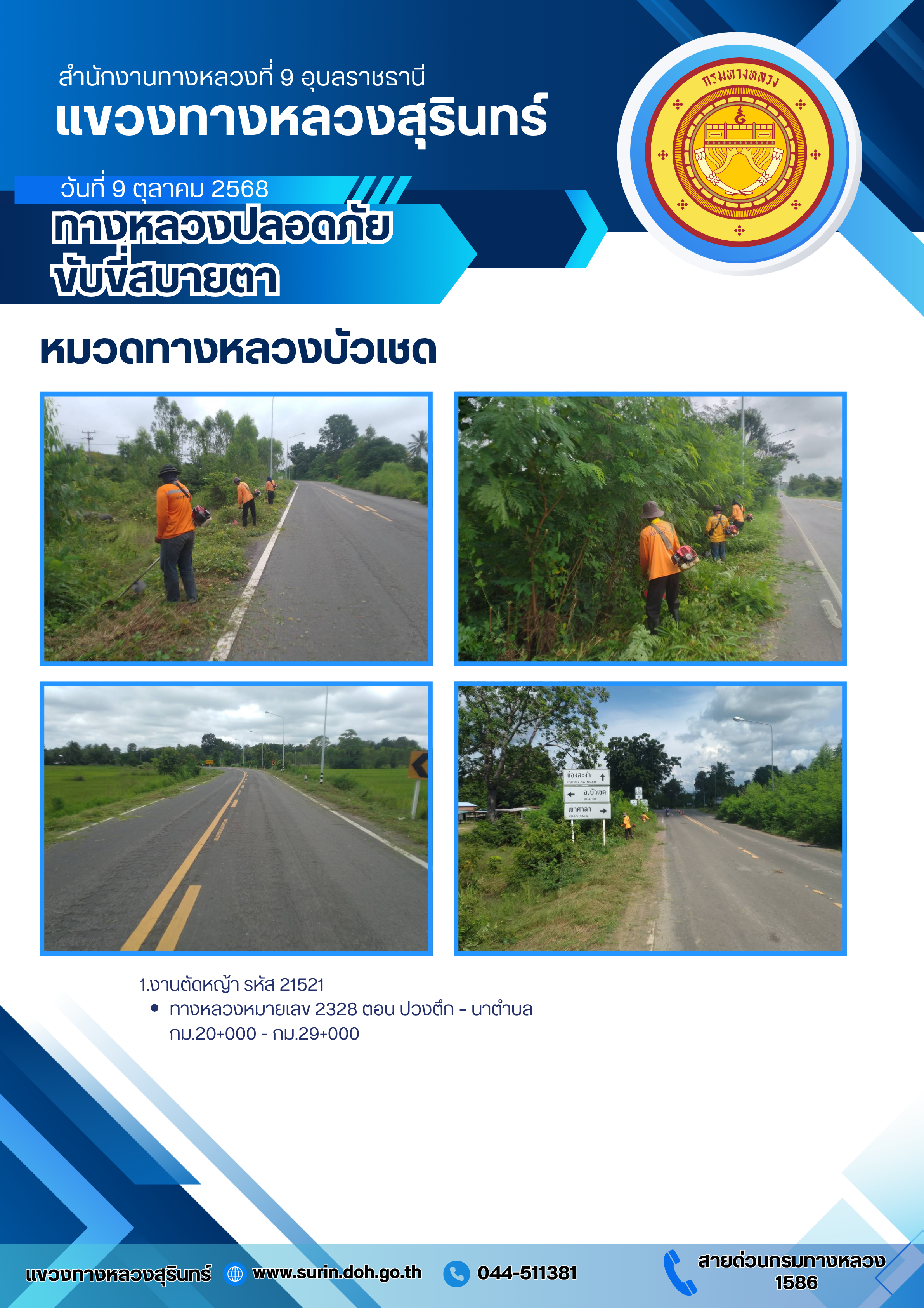 ข้อมูลข่าว : ทางหลวงปลอดภัย ขับขี่สบายตา 9 ตุลาคม 2568