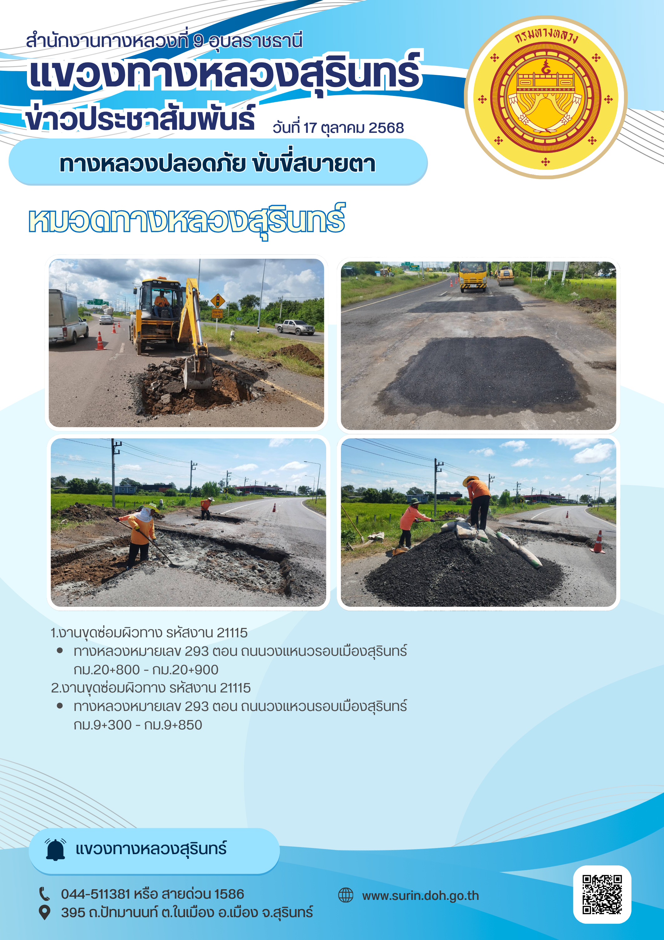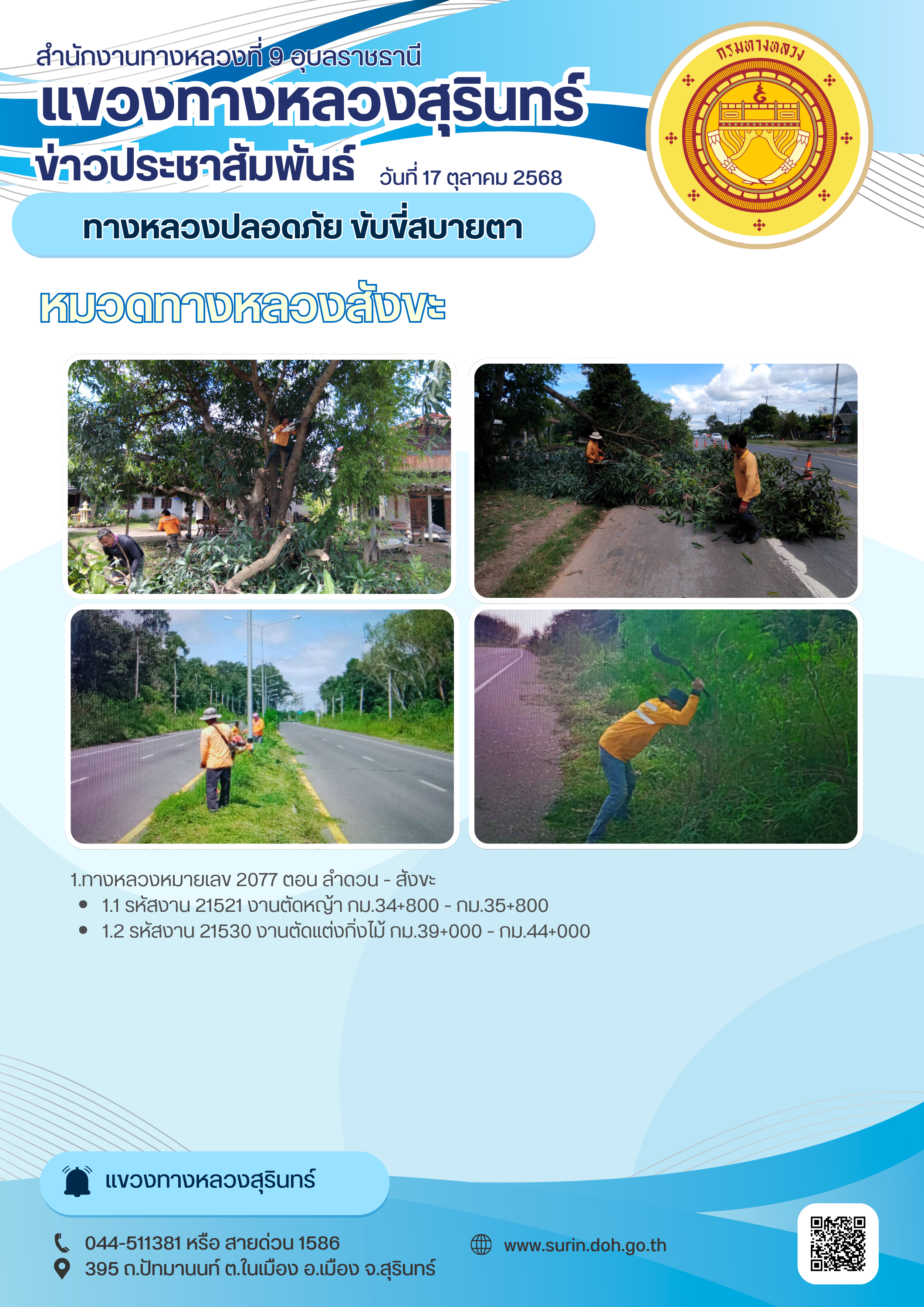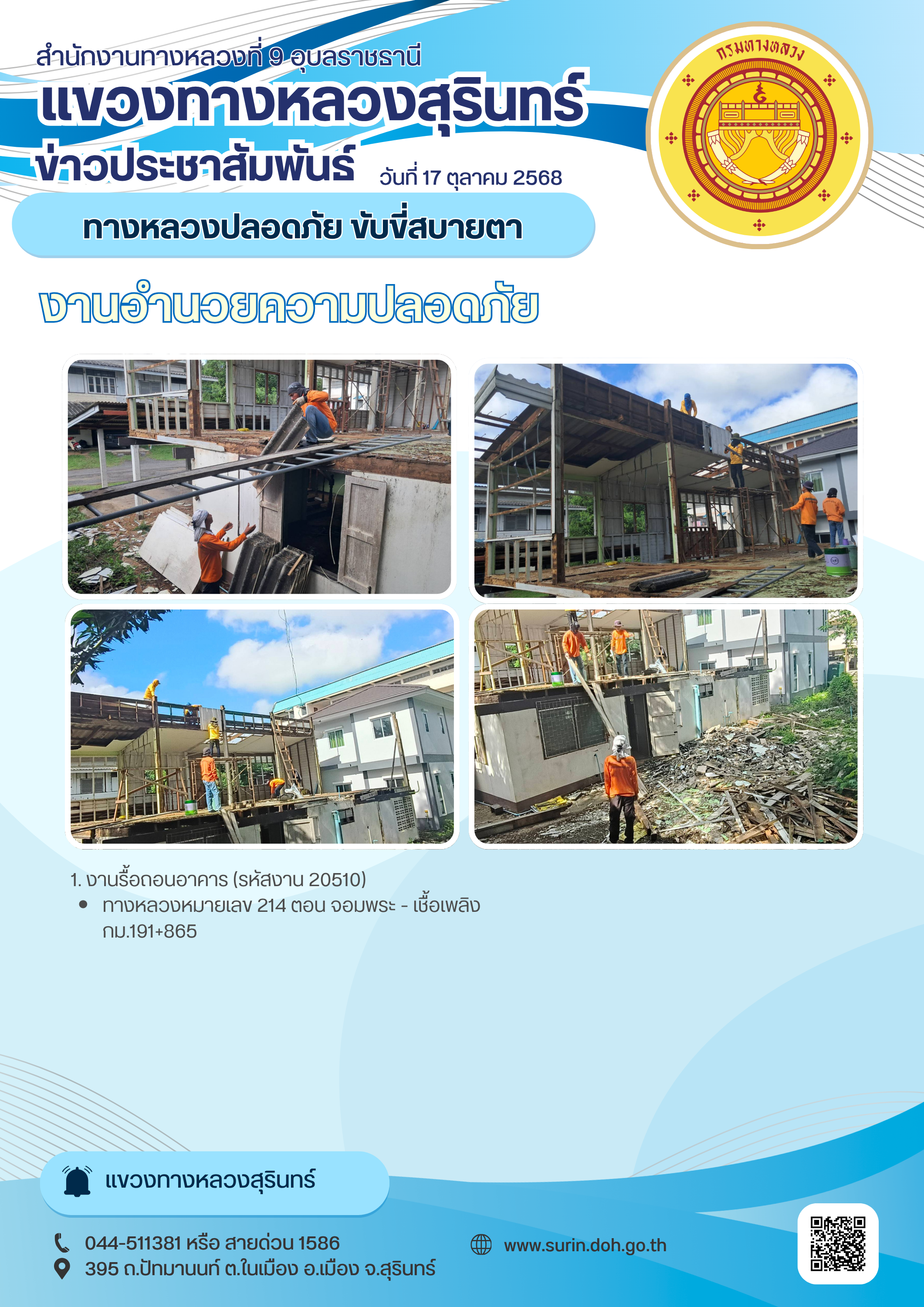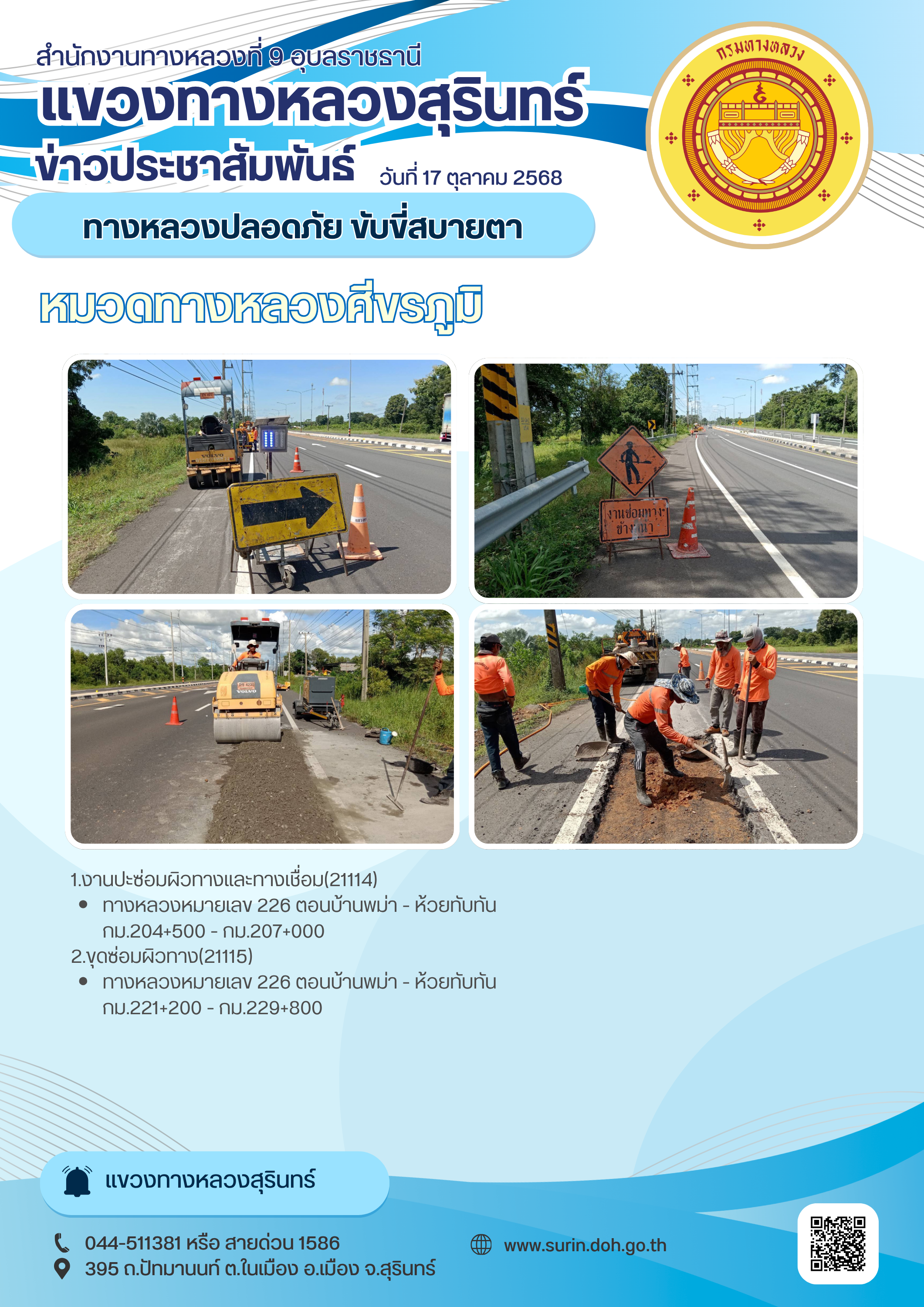 ข้อมูลข่าว : ทางหลวงปลอดภัย ขับขี่สบายตา 17 ตุลาคม 2568