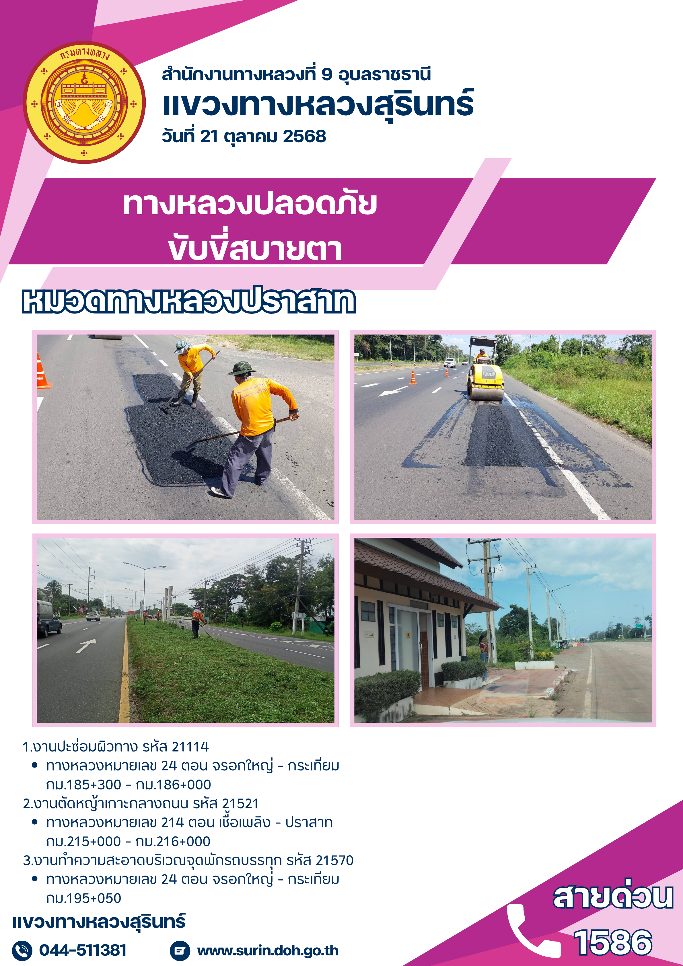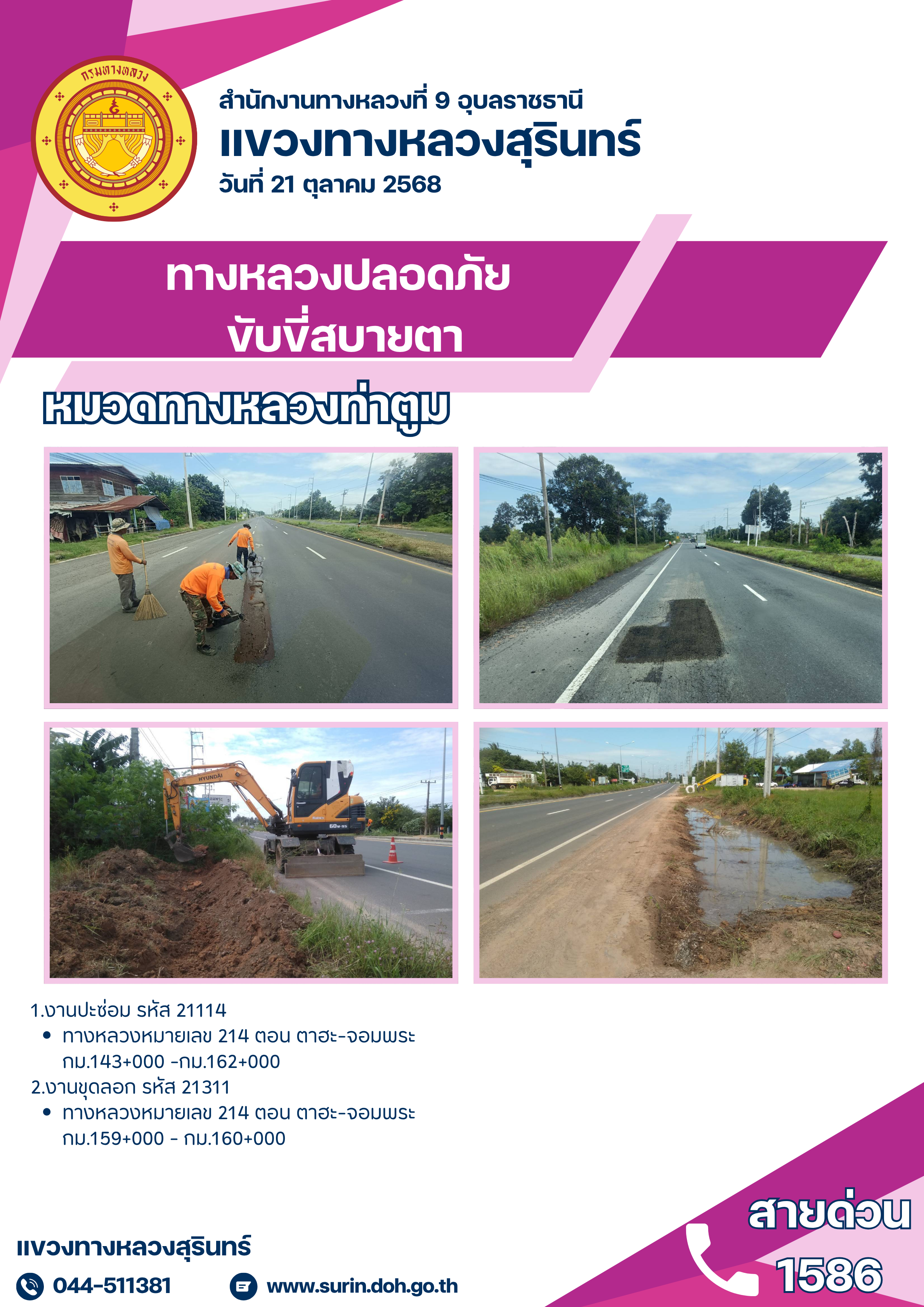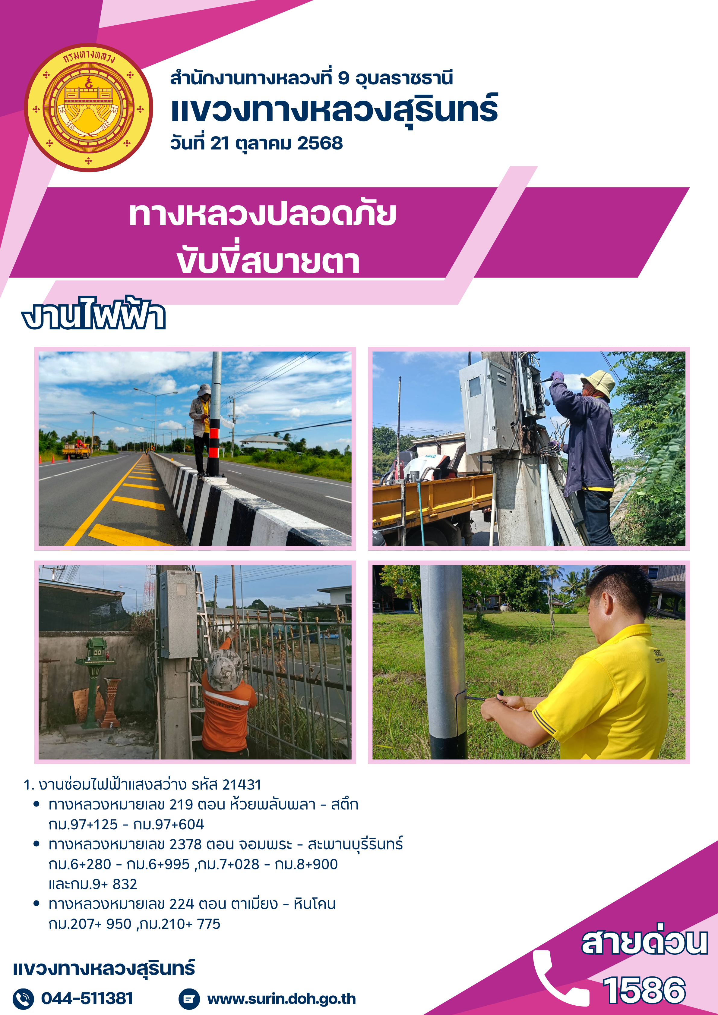 ข้อมูลข่าว : ทางหลวงปลอดภัย ขับขี่สบายตา 21 ตุลาคม 2568