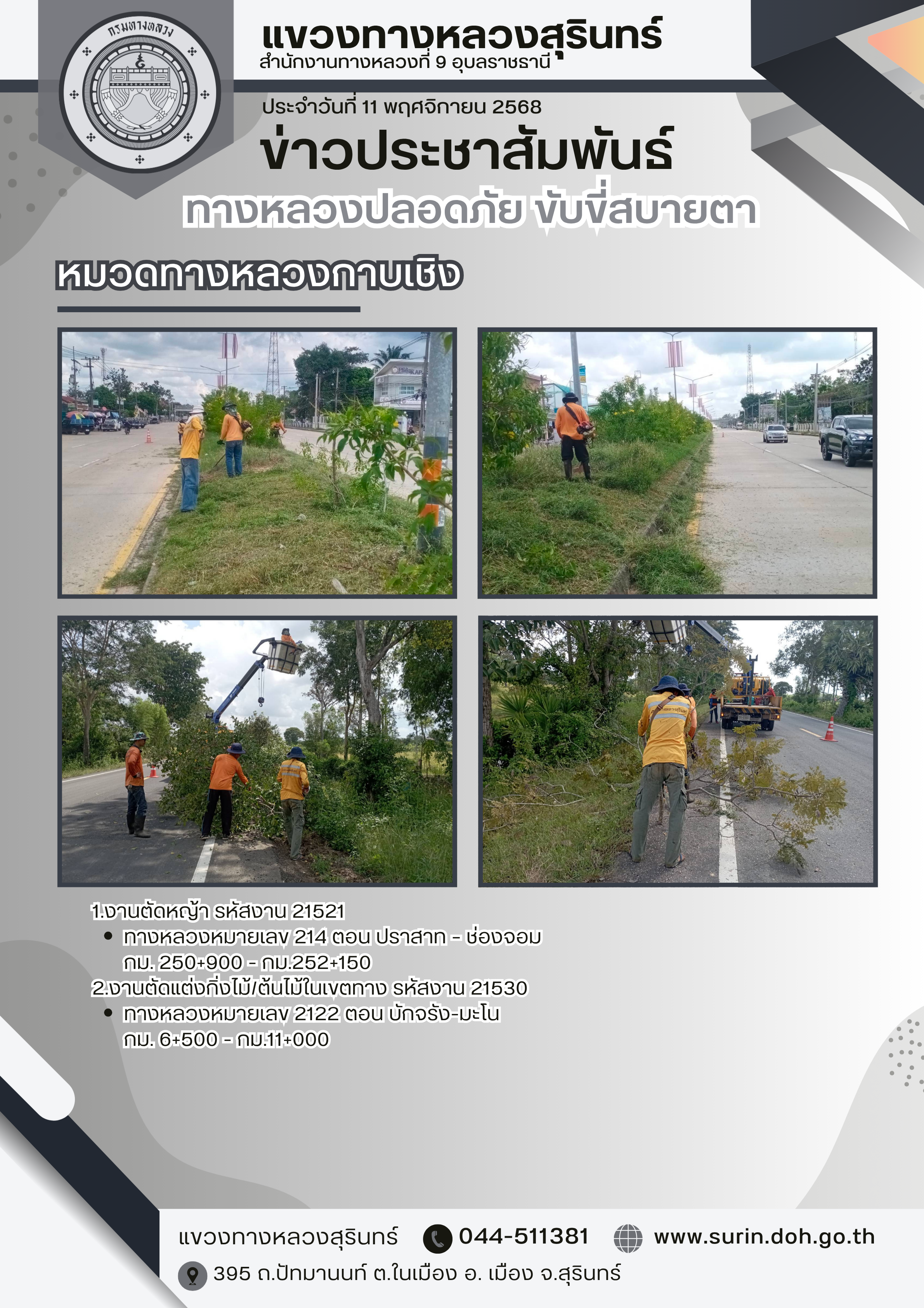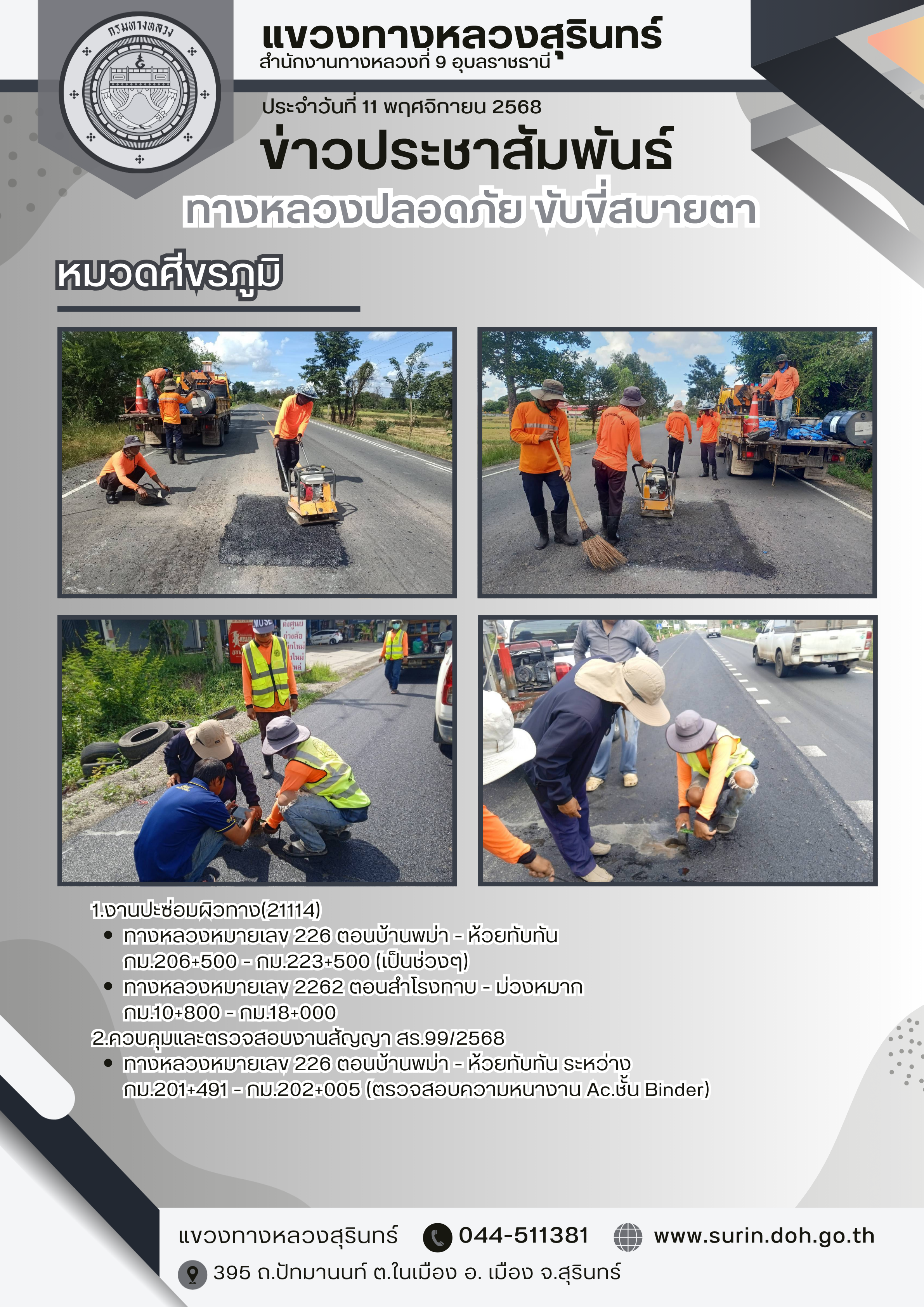 ข้อมูลข่าว : ทางหลวงปลอดภัย ขับขี่สบายตา 11 พฤศจิกายน 2568