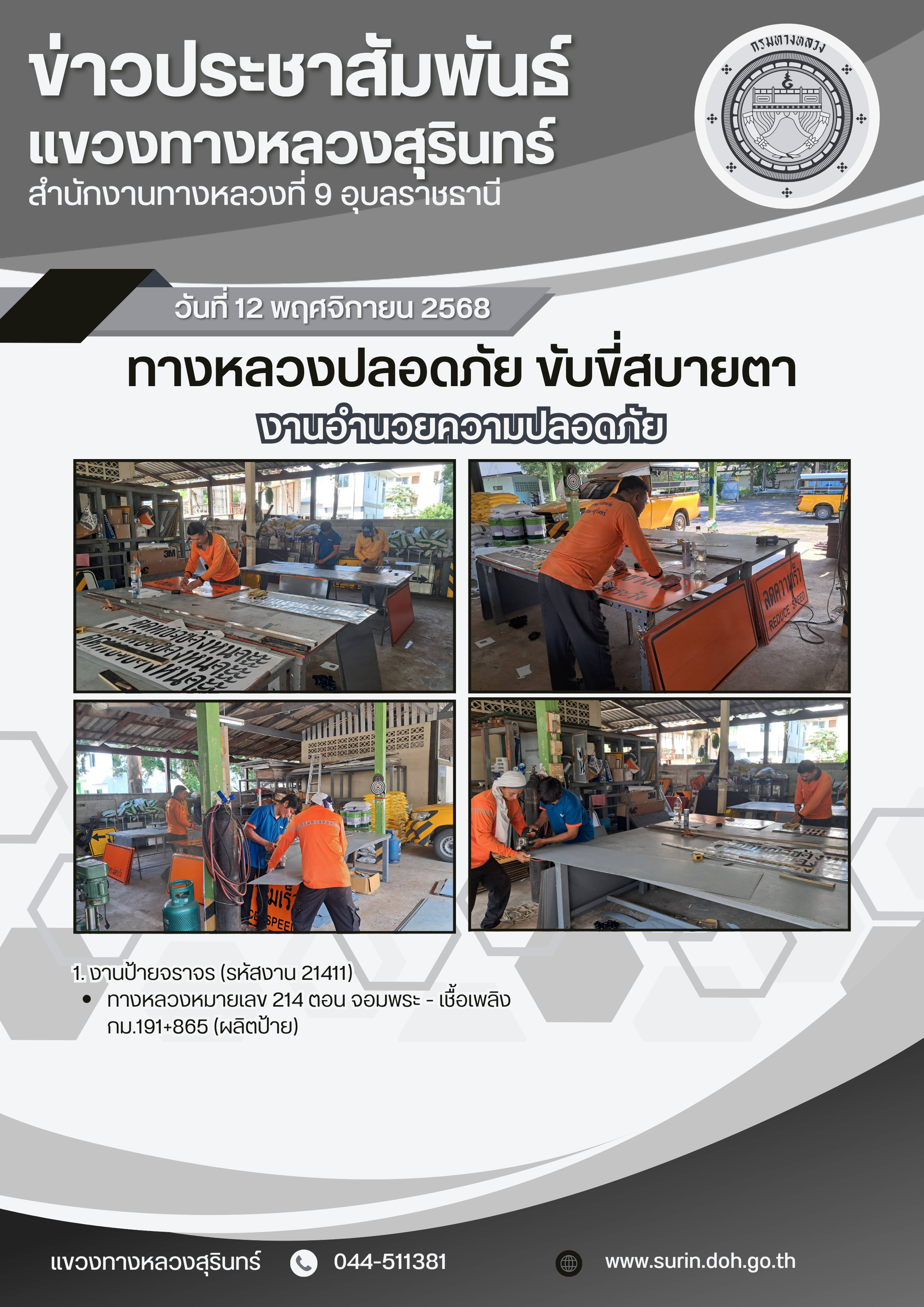 ทางหลวงปลอดภัย ขับขี่สบายตา 12 พฤศจิกายน 2568