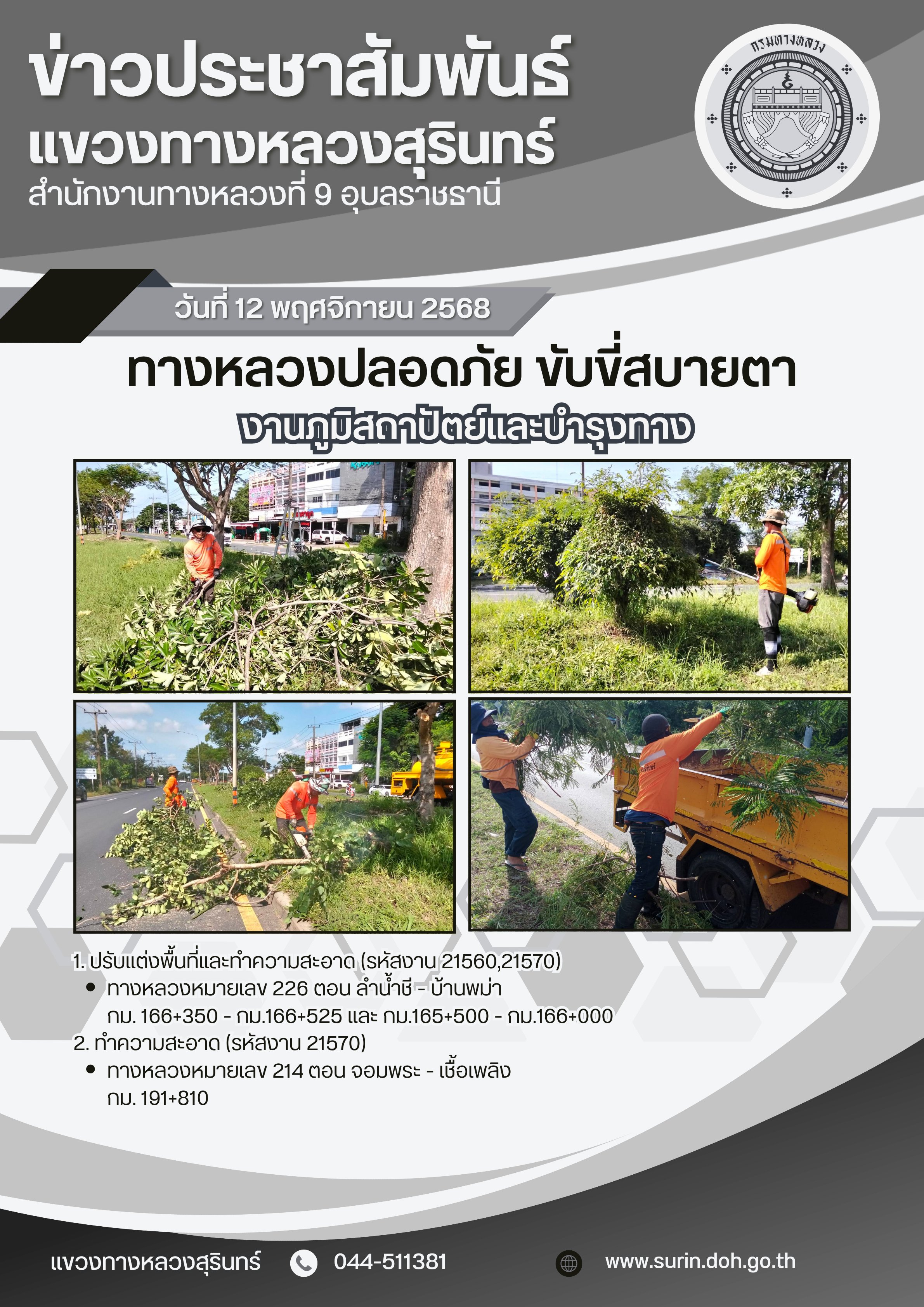 ข้อมูลข่าว : ทางหลวงปลอดภัย ขับขี่สบายตา 12 พฤศจิกายน 2568