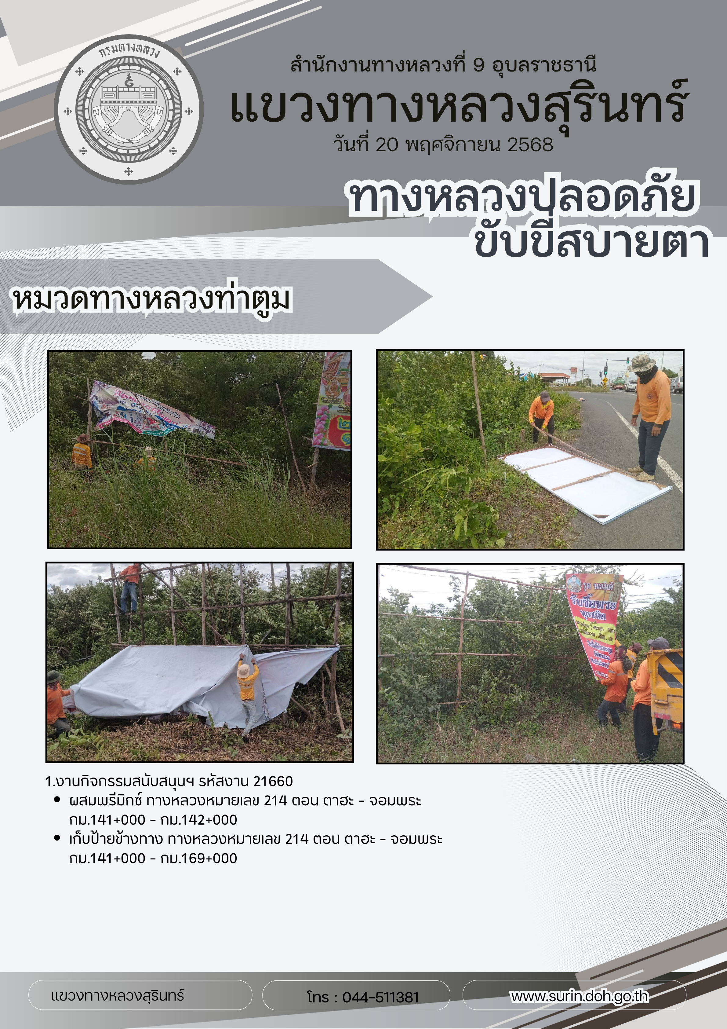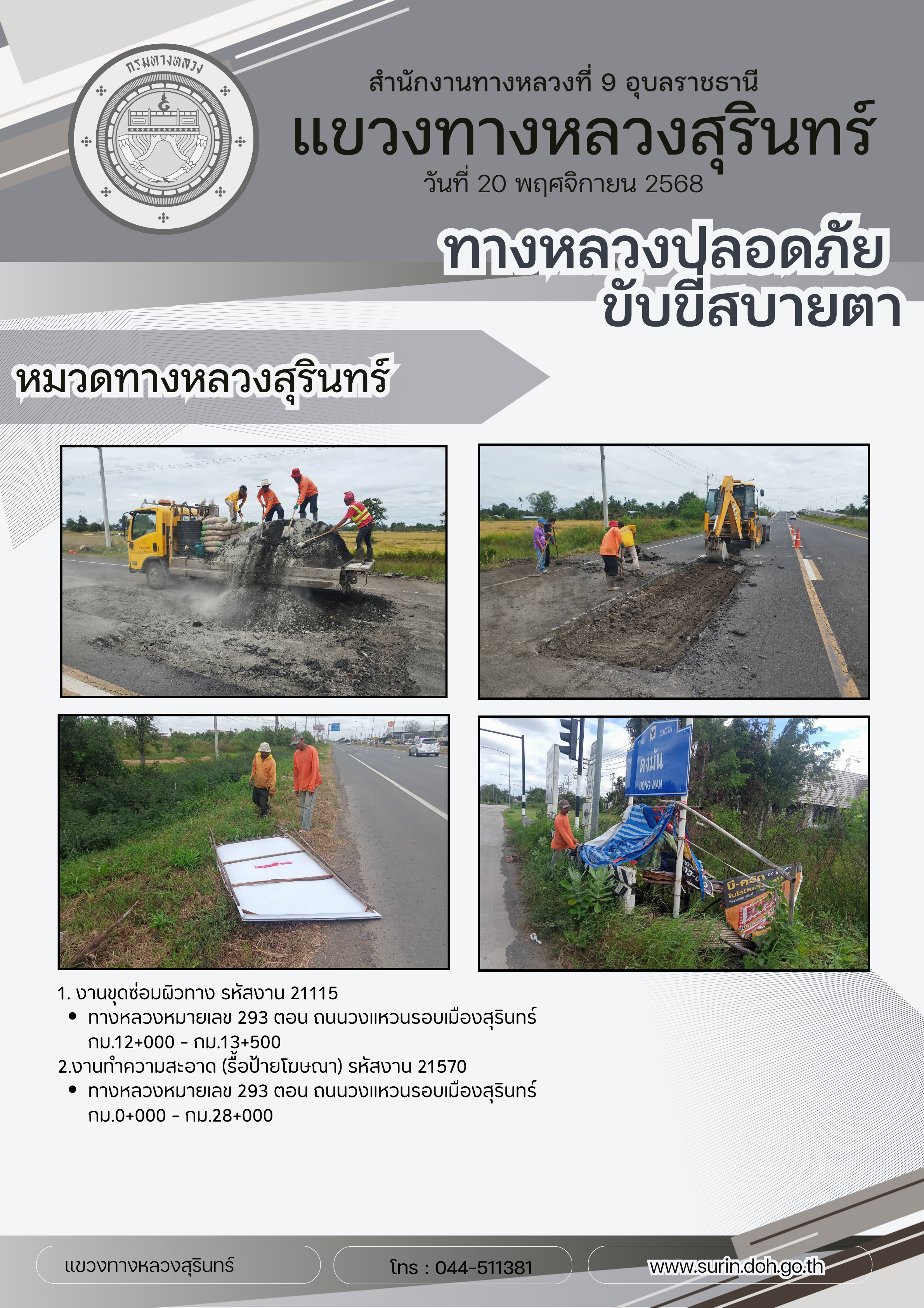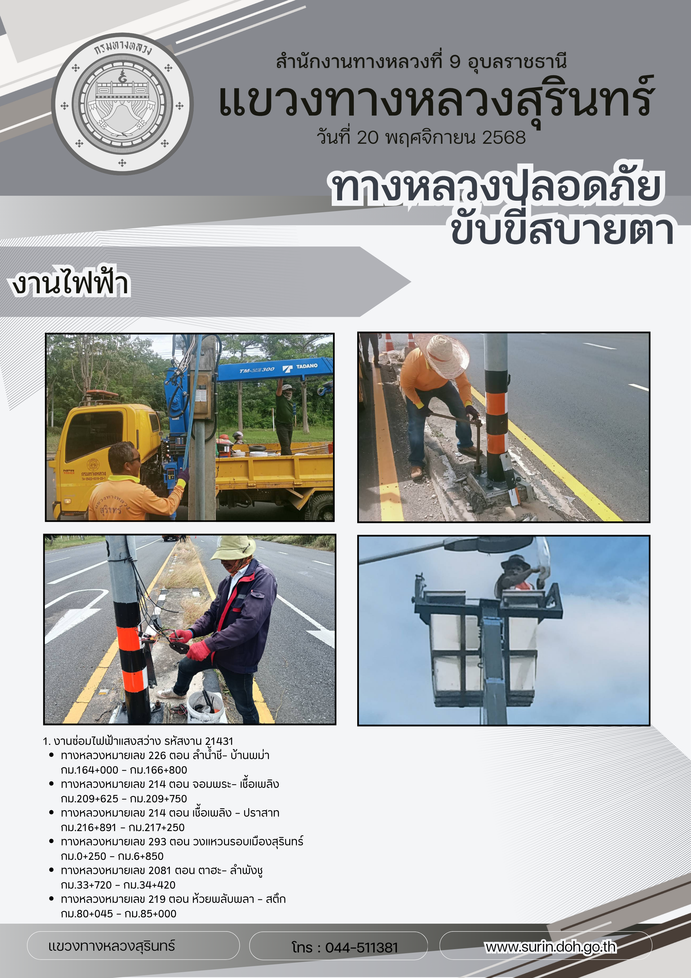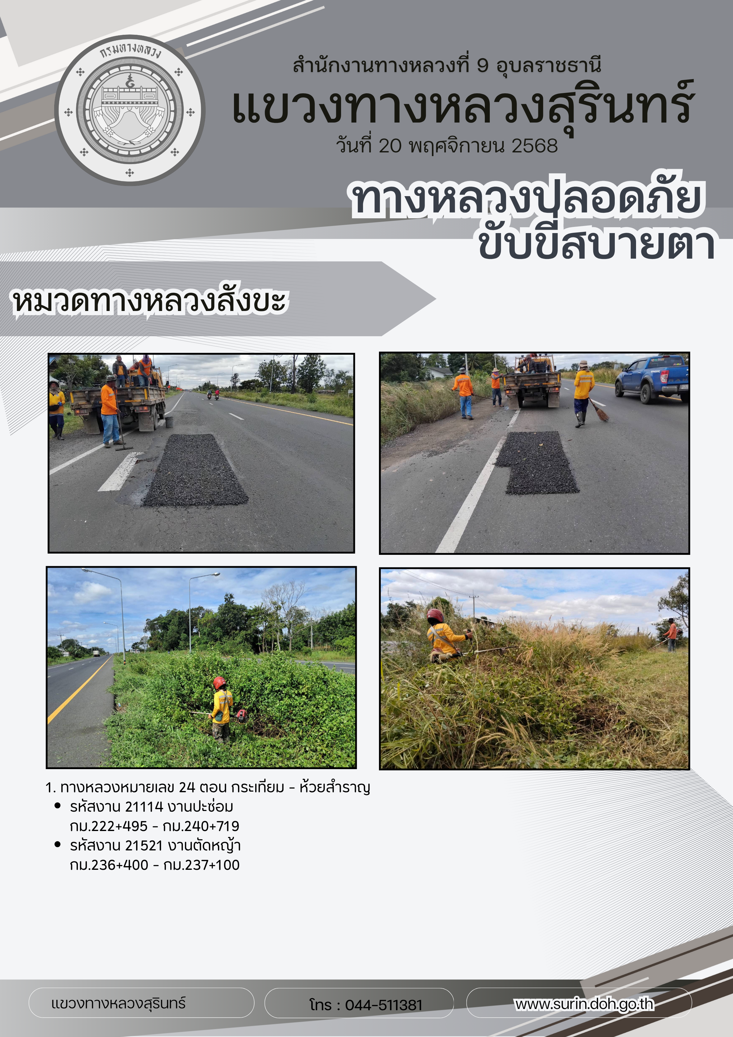 ข้อมูลข่าว : ทางหลวงปลอดภัย ขับขี่สบายตา 20 พฤศจิกายน 2568