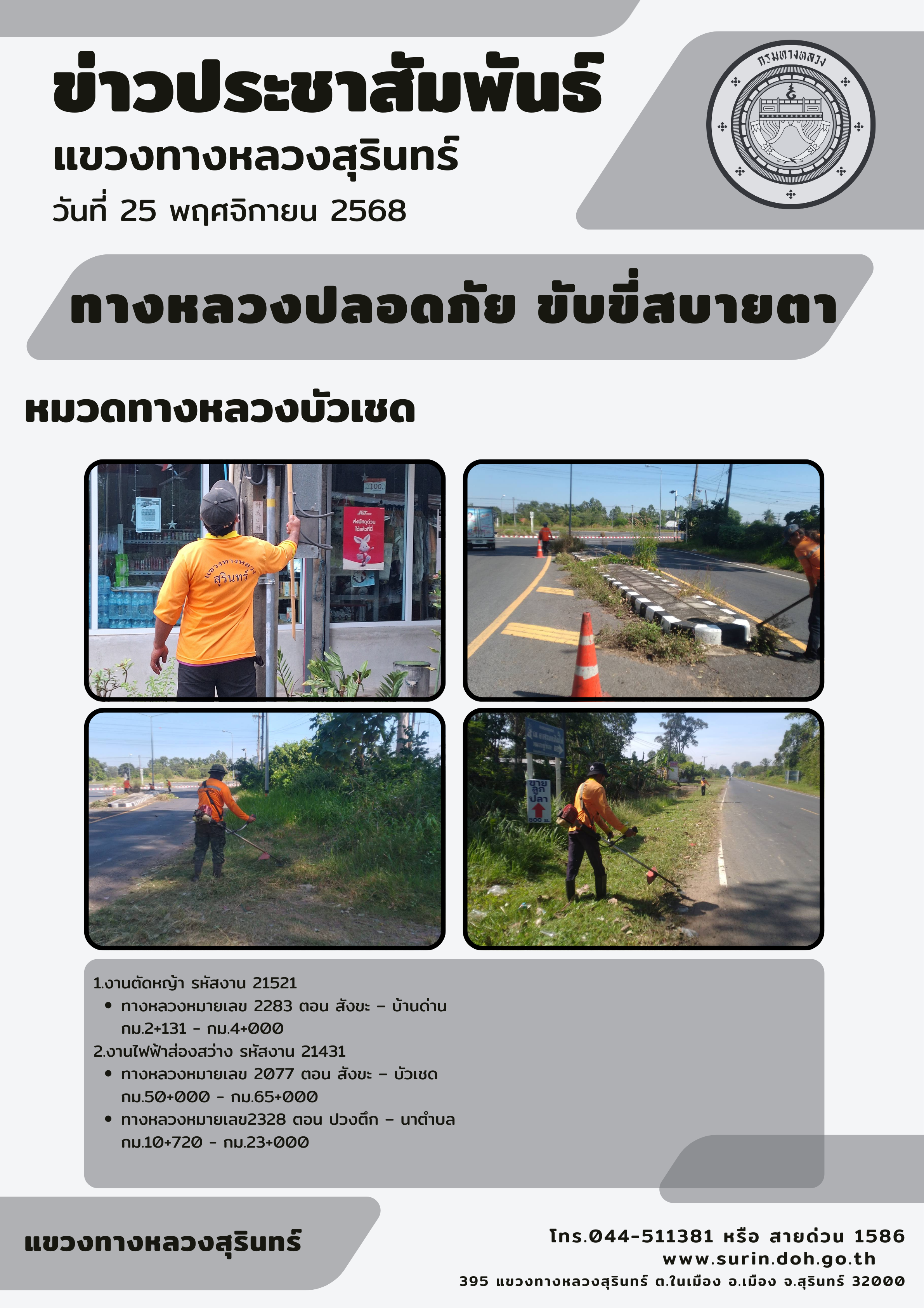 ข้อมูลข่าว : ทางหลวงปลอดภัย ขับขี่สบายตา 25 พฤศจิกายน 2568