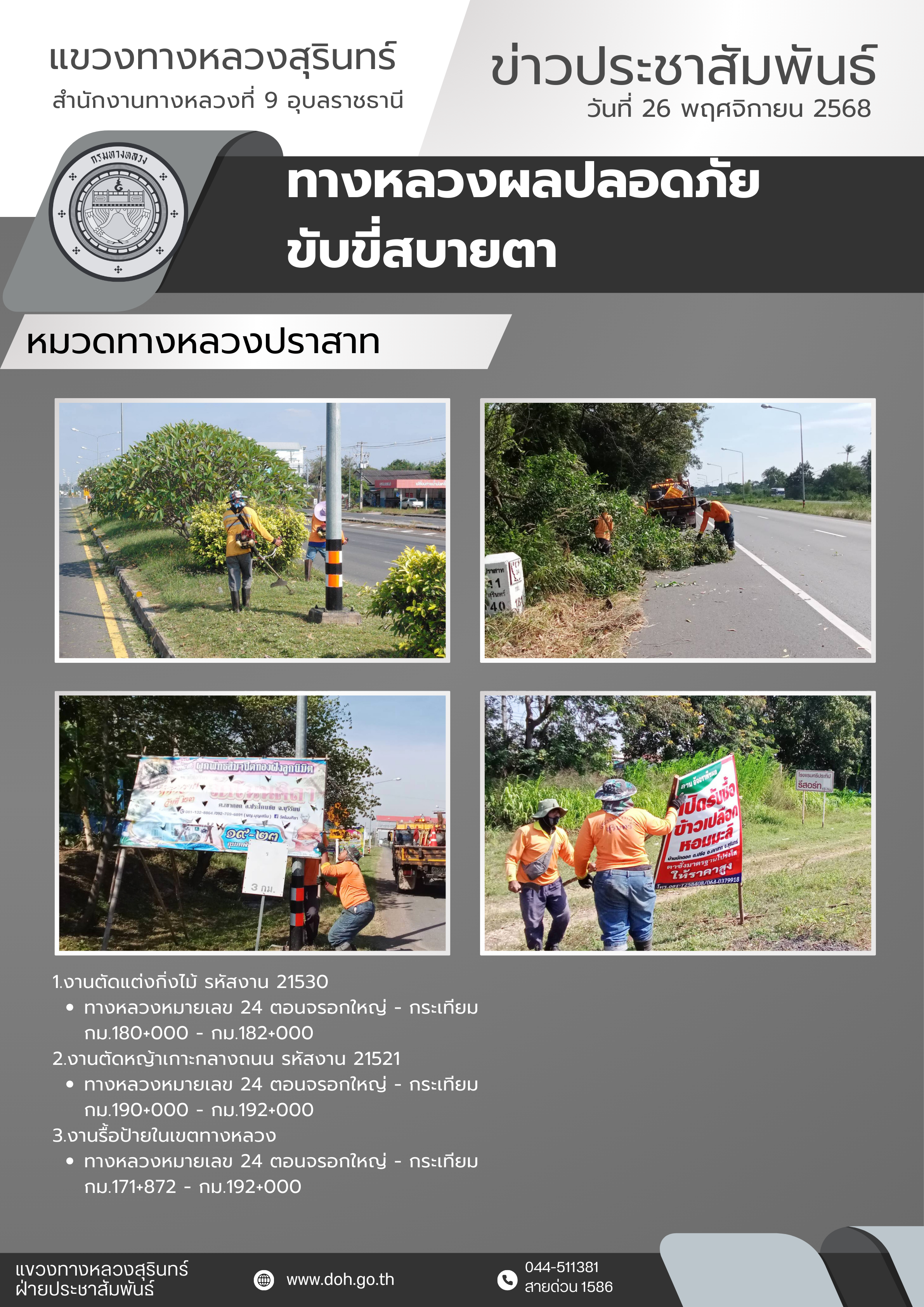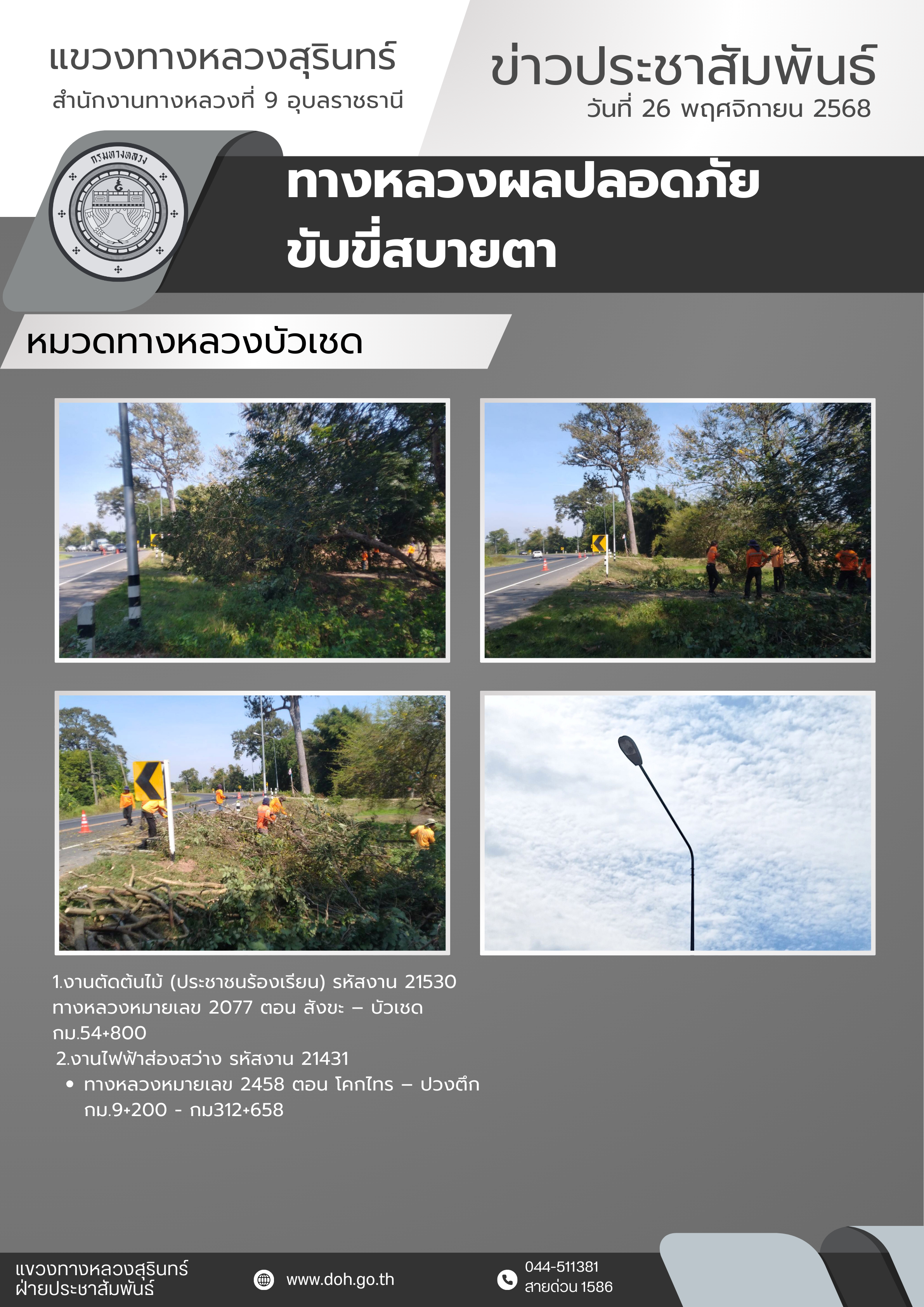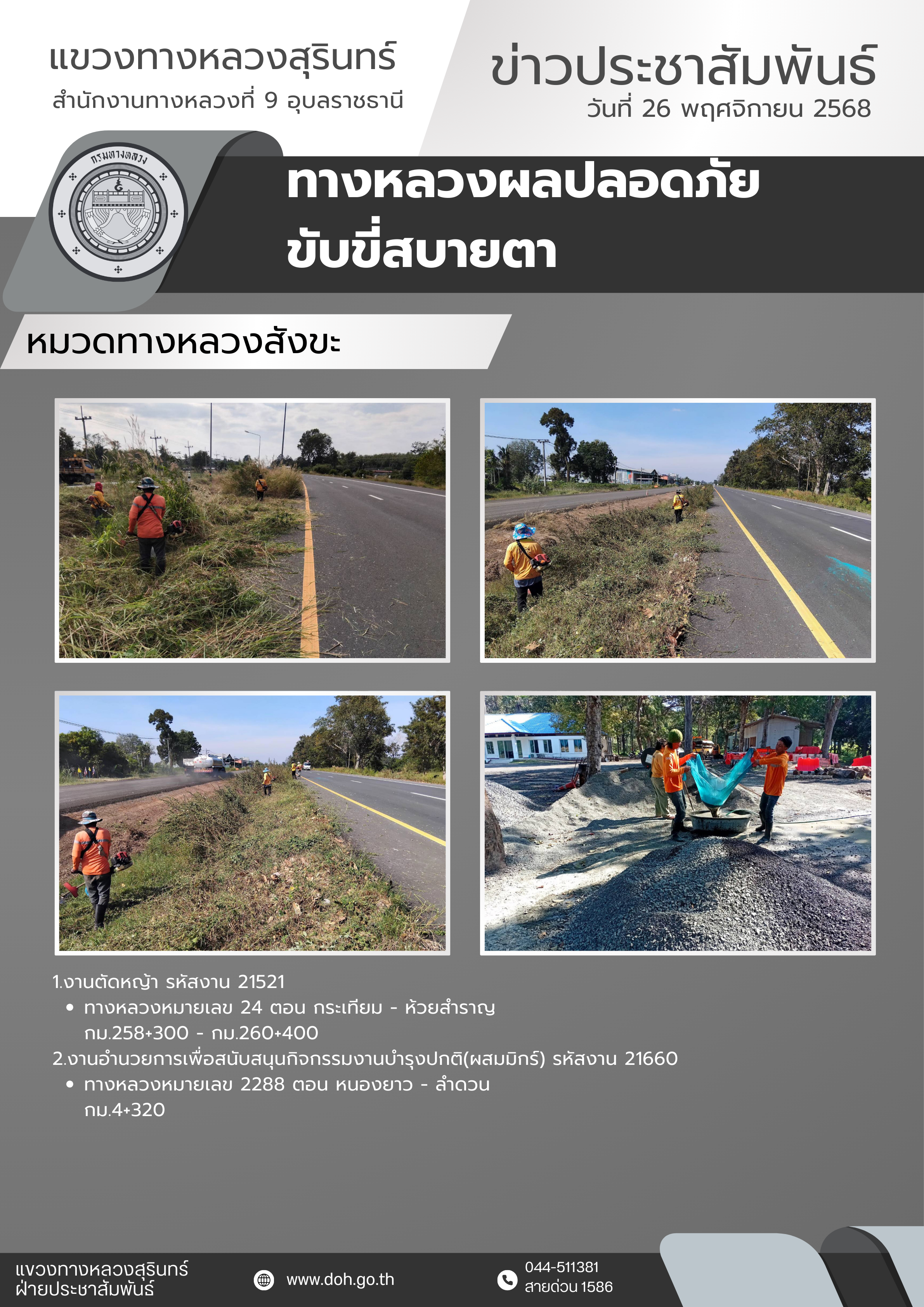 ข้อมูลข่าว : ทางหลวงปลอดภัย ขับขี่สบายตา 26 พฤศจิกายน 2568