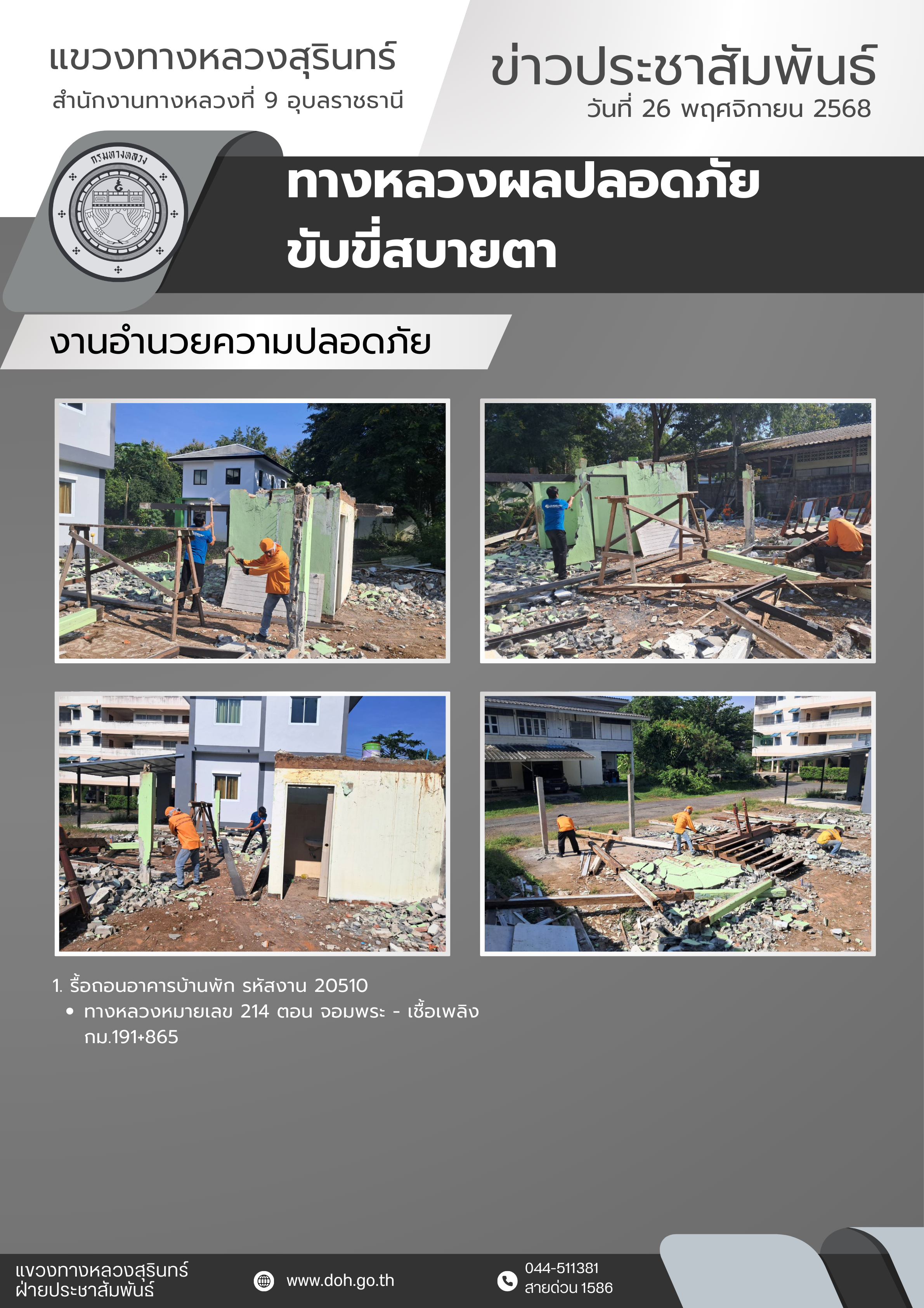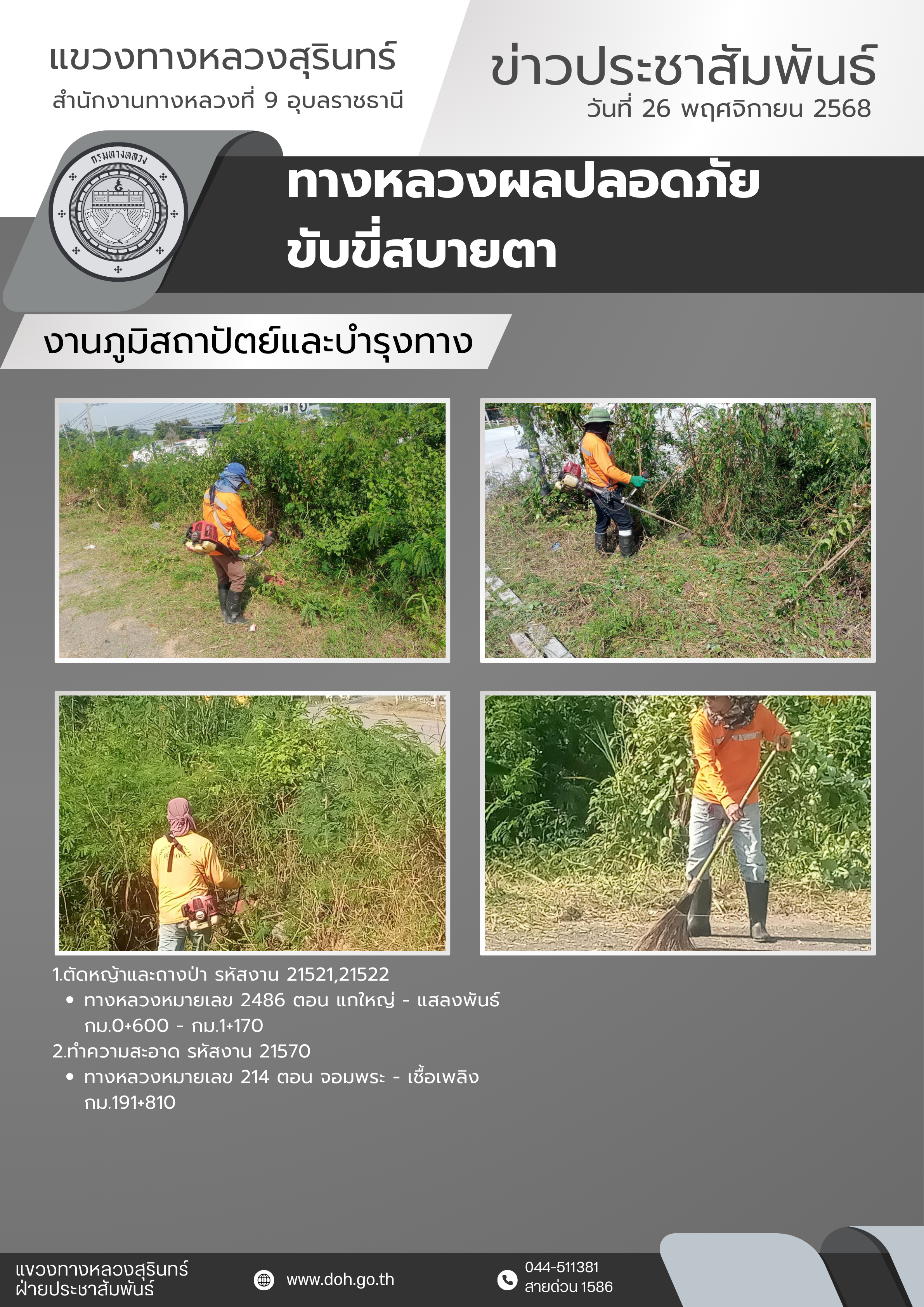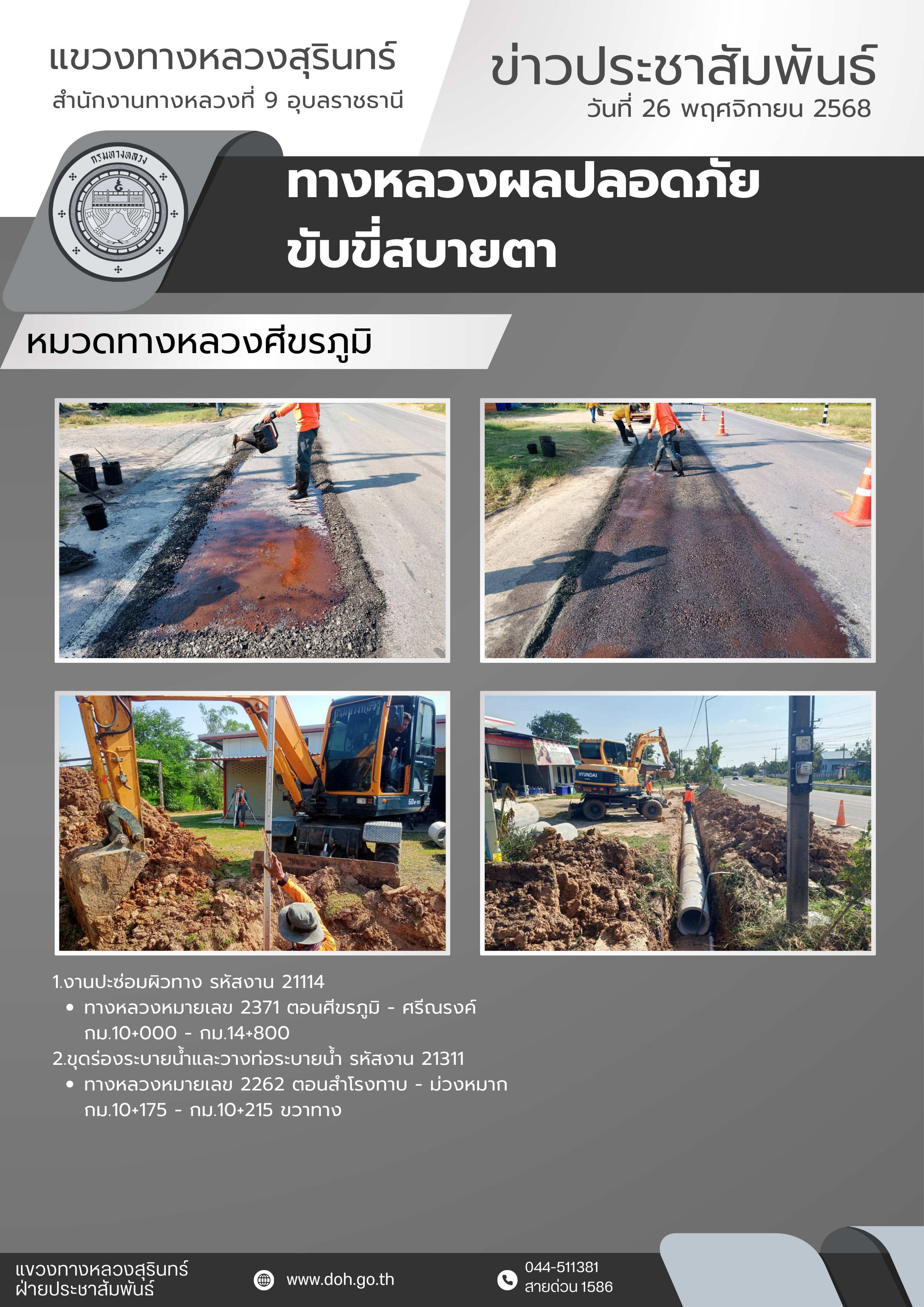 ข้อมูลข่าว : ทางหลวงปลอดภัย ขับขี่สบายตา 26 พฤศจิกายน 2568
