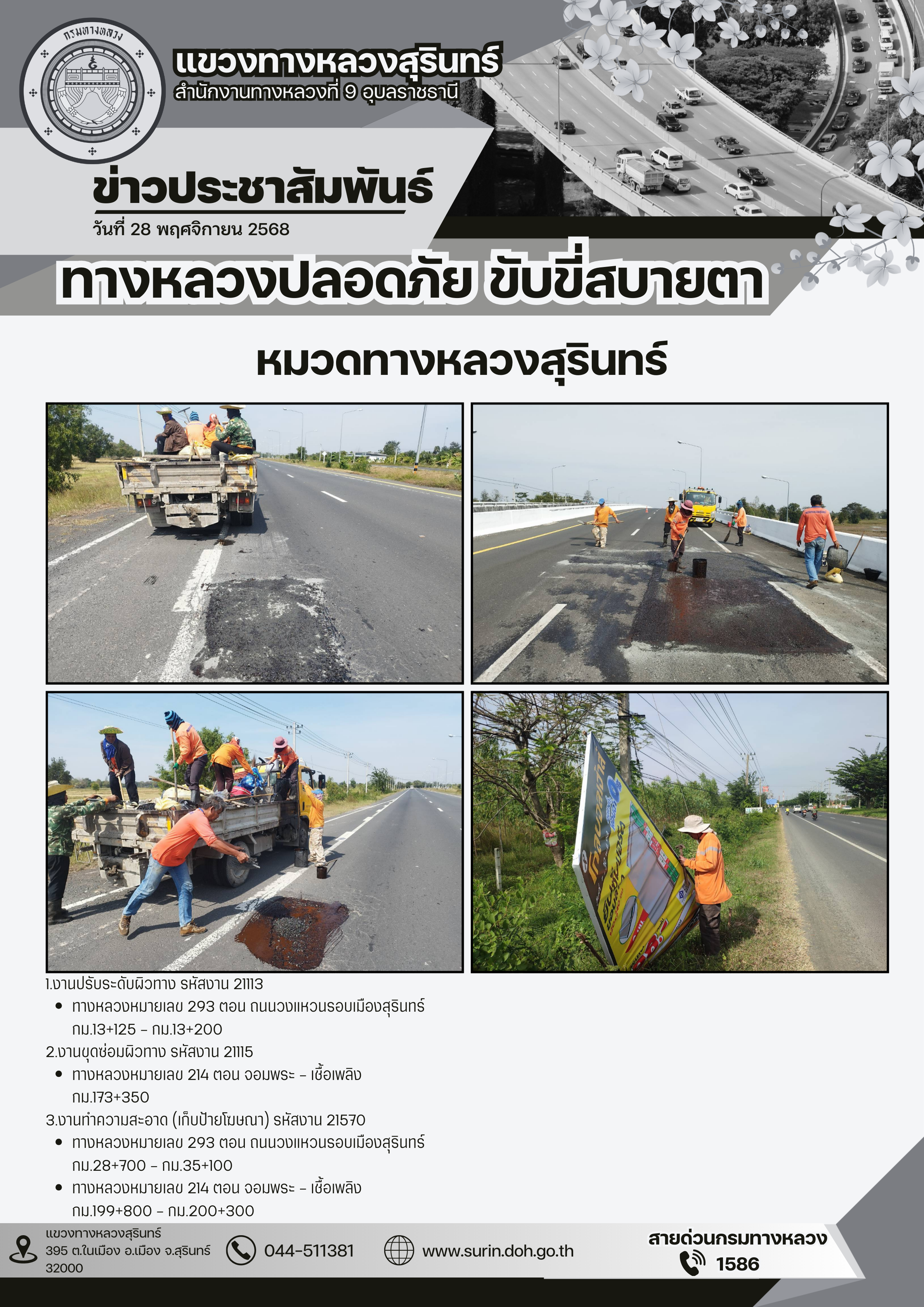 ข้อมูลข่าว : ทางหลวงปลอดภัย ขับขี่สบายตา 28 พฤศจิกายน 2568