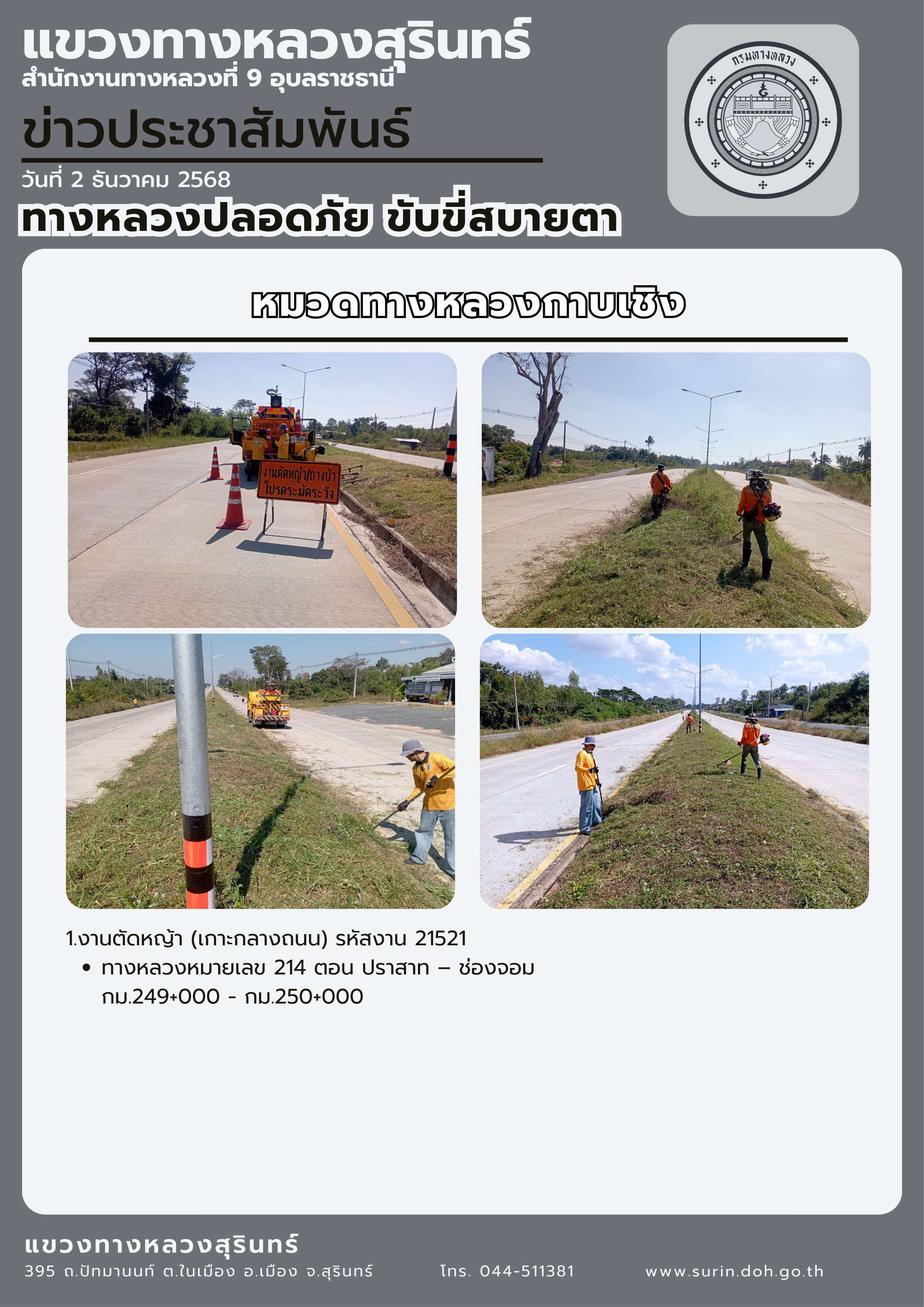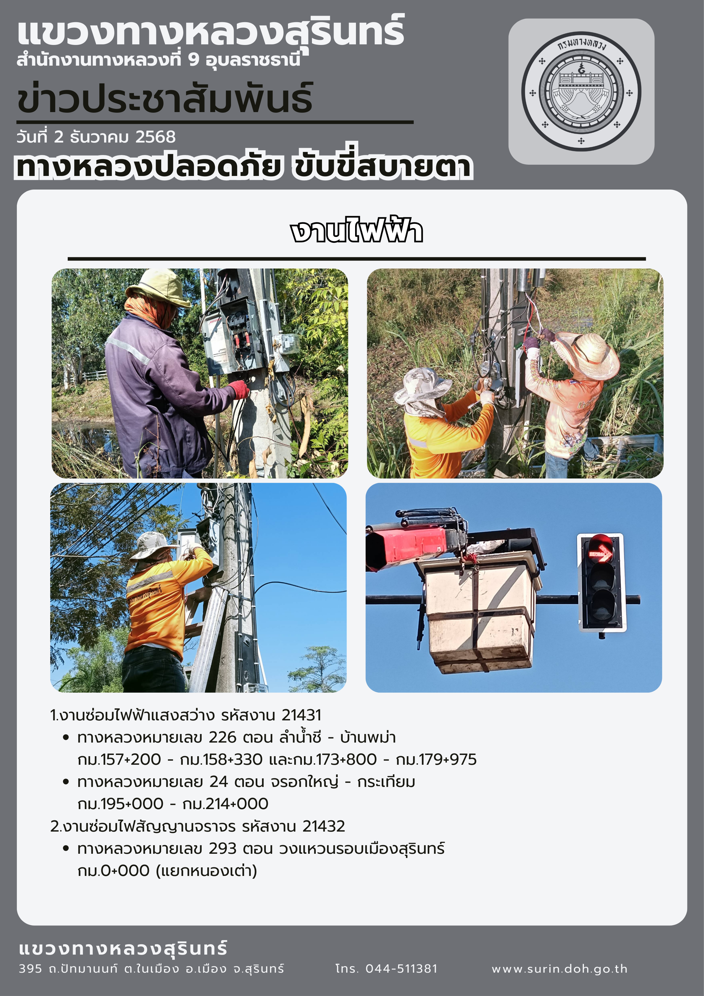 ข้อมูลข่าว : ทางหลวงปลอดภัย ขับขี่สบายตา 2 ธันวาคม 2568