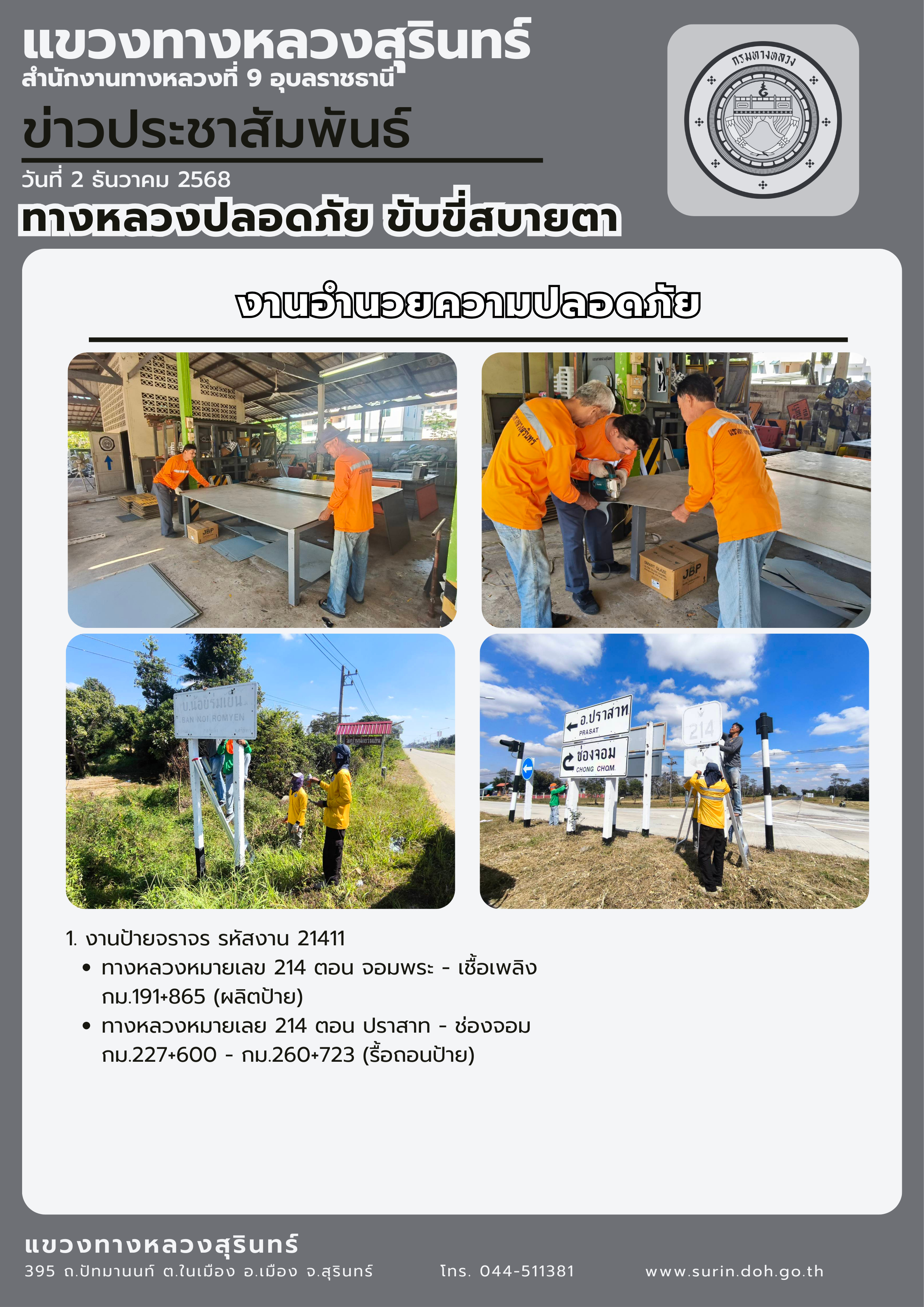 ทางหลวงปลอดภัย ขับขี่สบายตา 2 ธันวาคม 2568