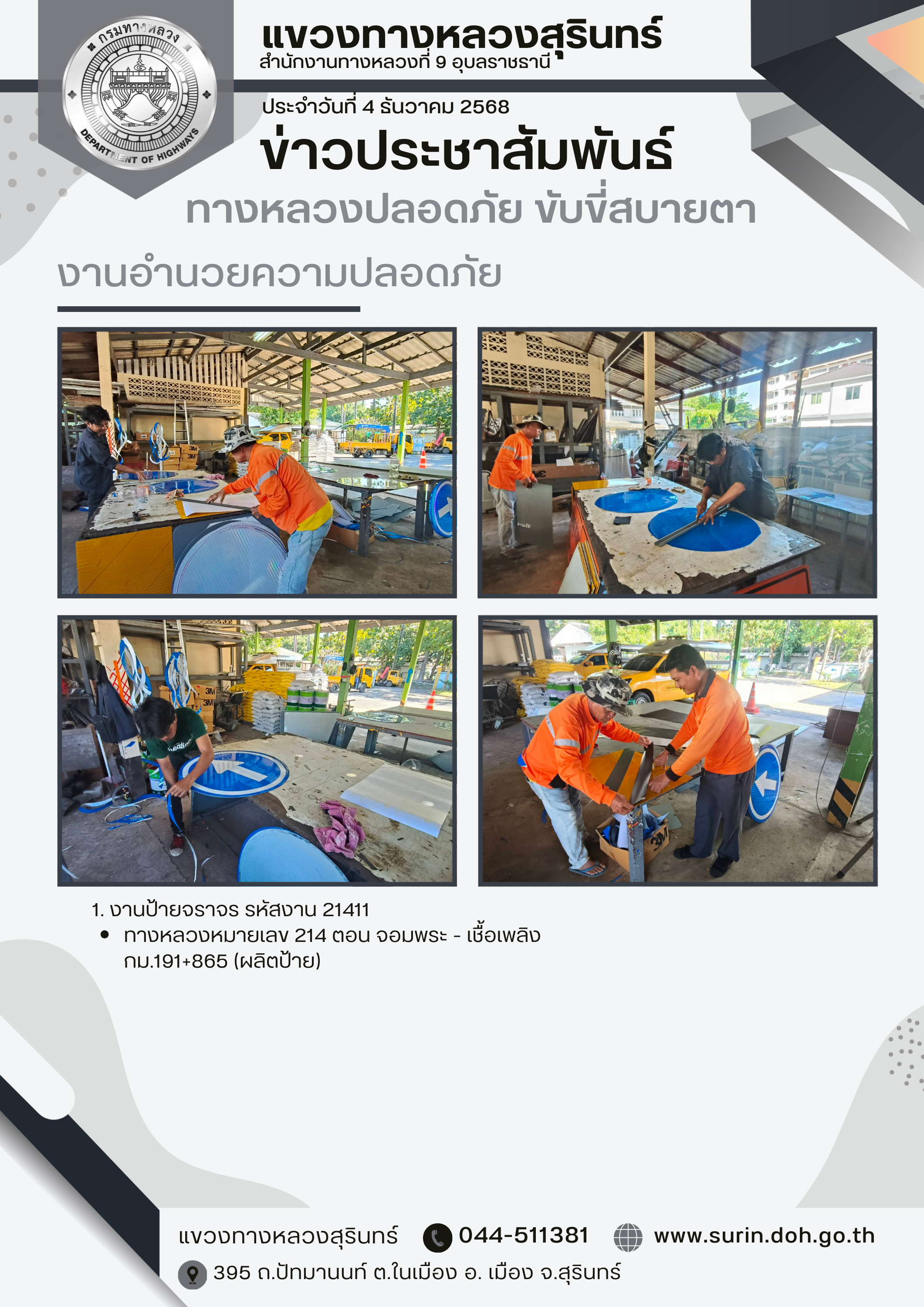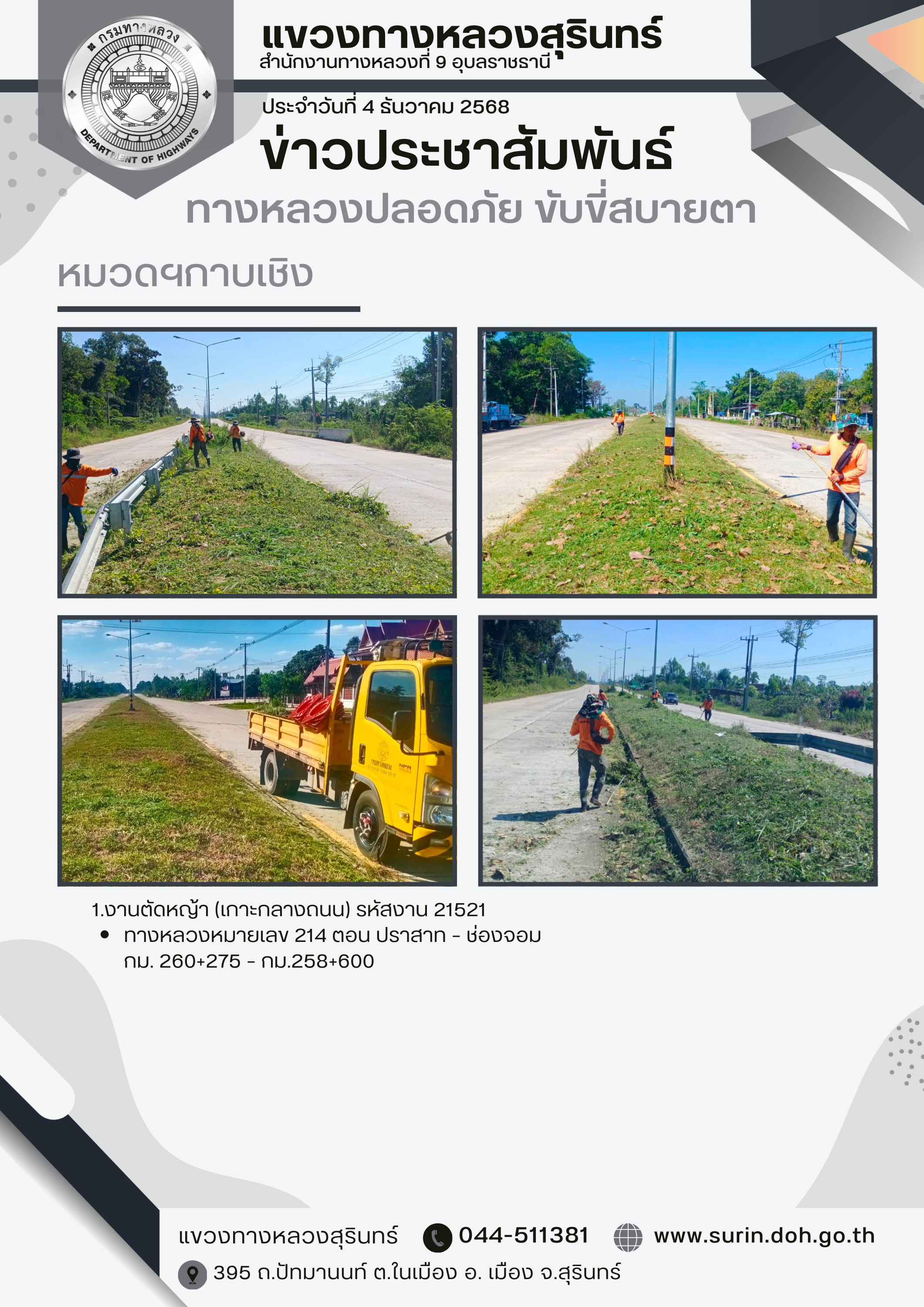 ข้อมูลข่าว : ทางหลวงปลอดภัย ขับขี่สบายตา 4 ธันวาคม 2568