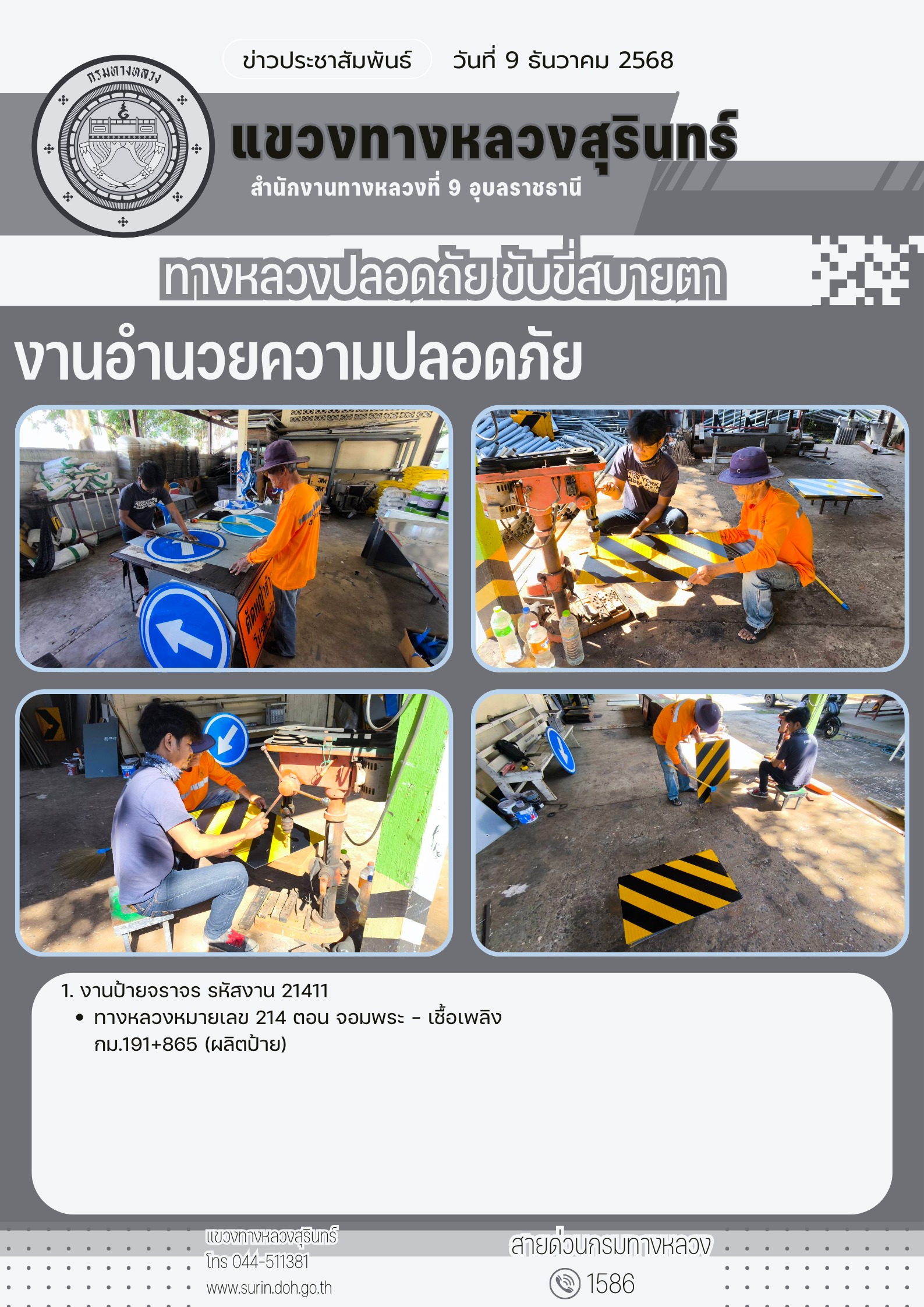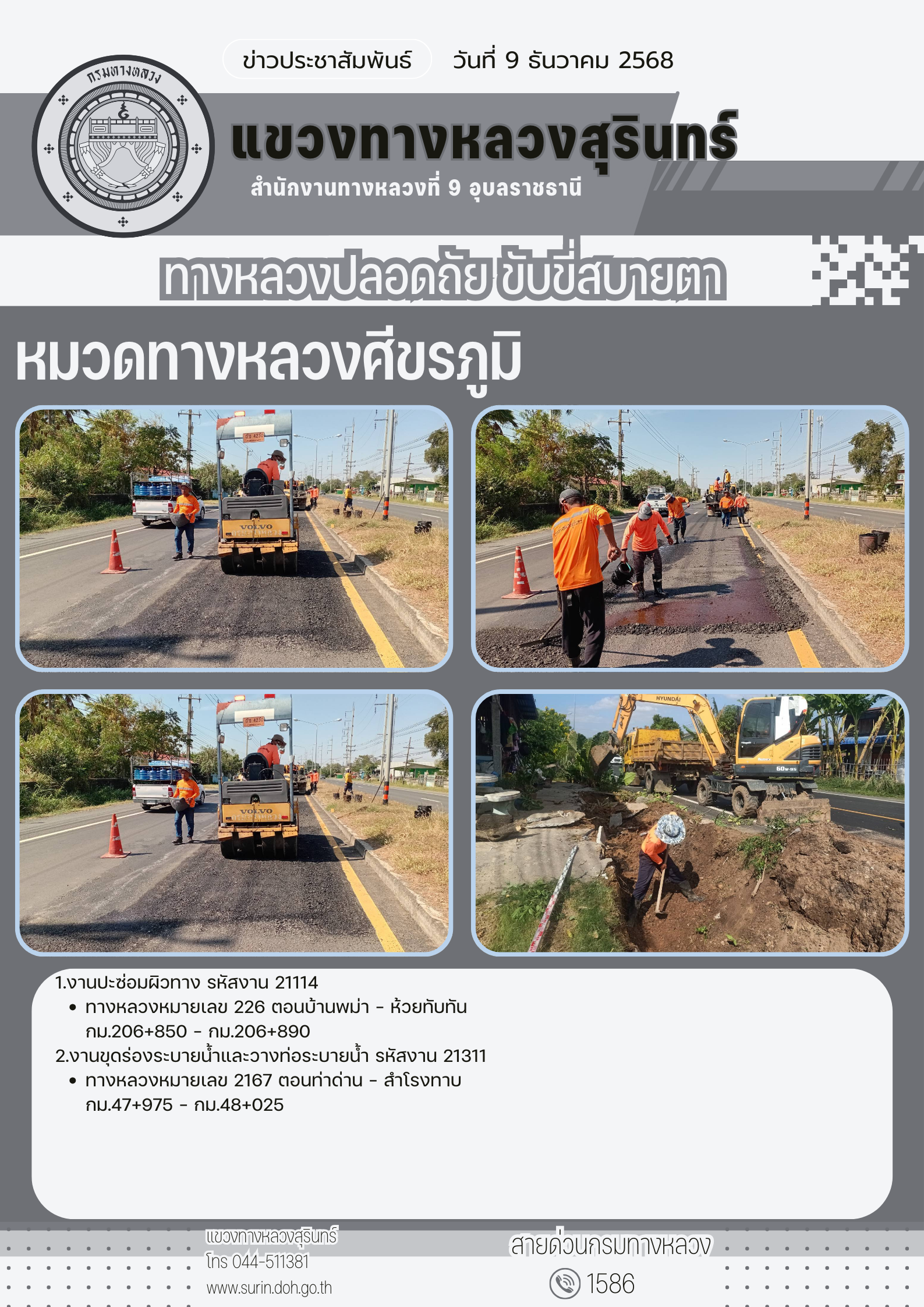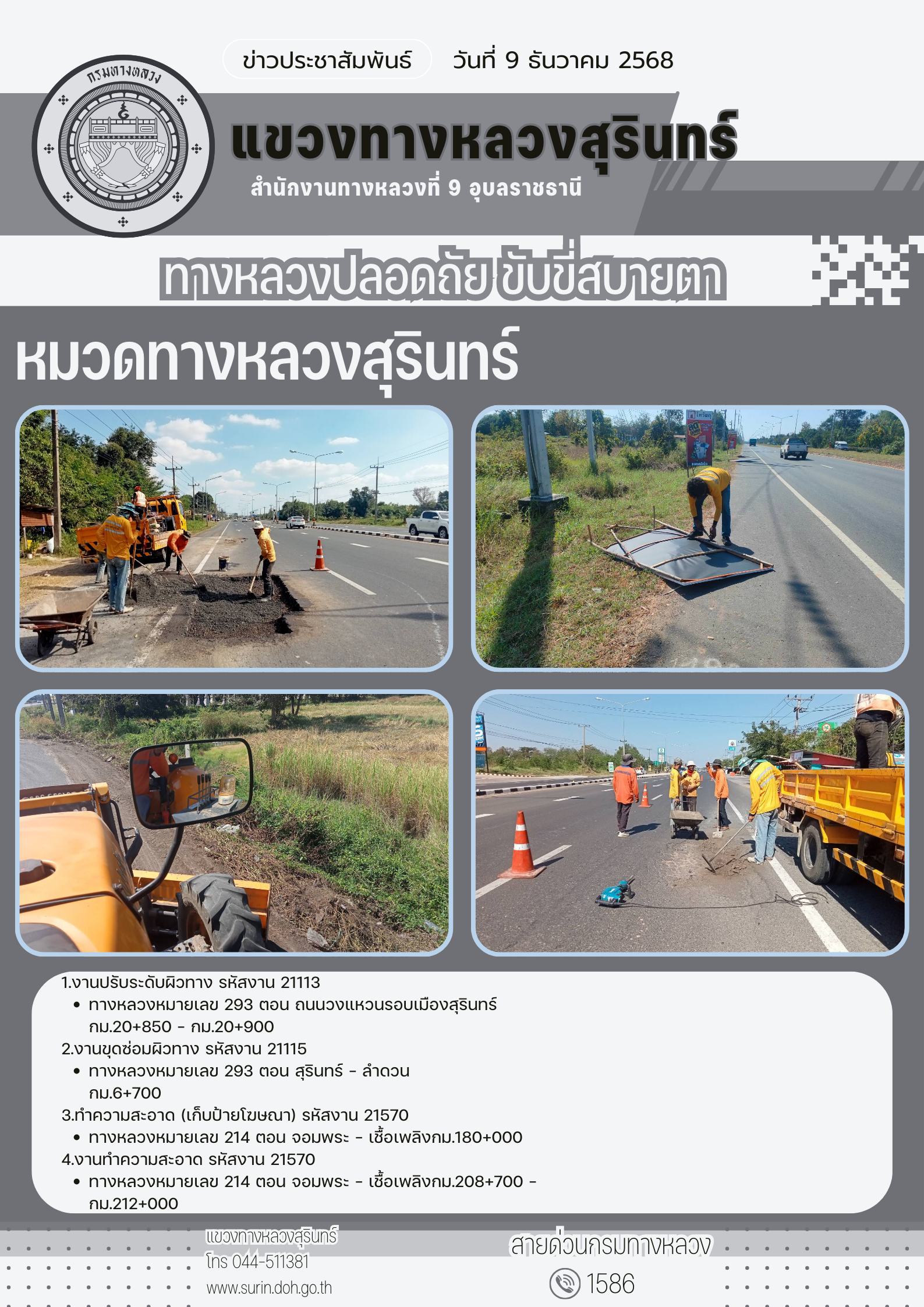 ทางหลวงปลอดภัย ขับขี่สบายตา 9 ธันวาคม 2568