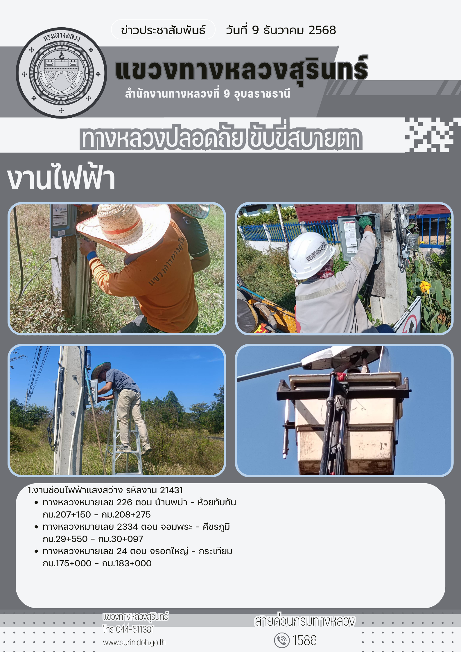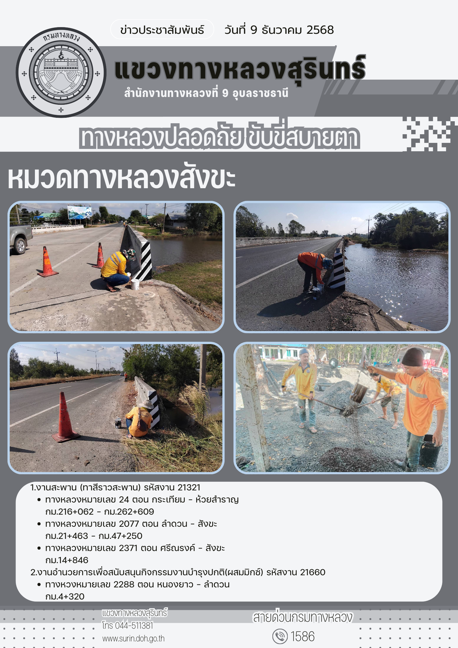 ข้อมูลข่าว : ทางหลวงปลอดภัย ขับขี่สบายตา 9 ธันวาคม 2568
