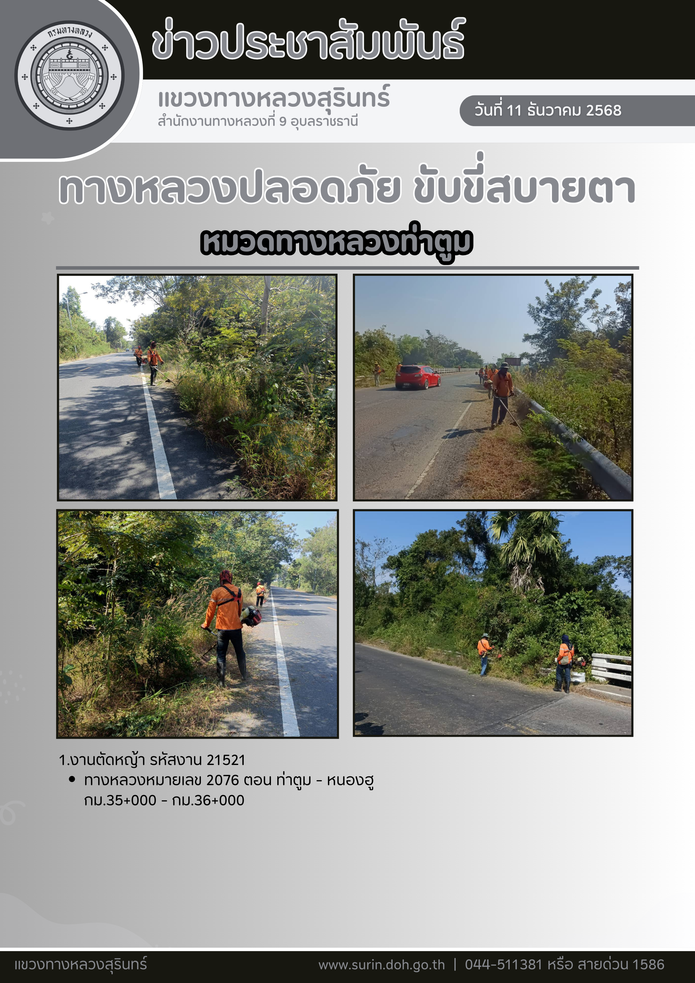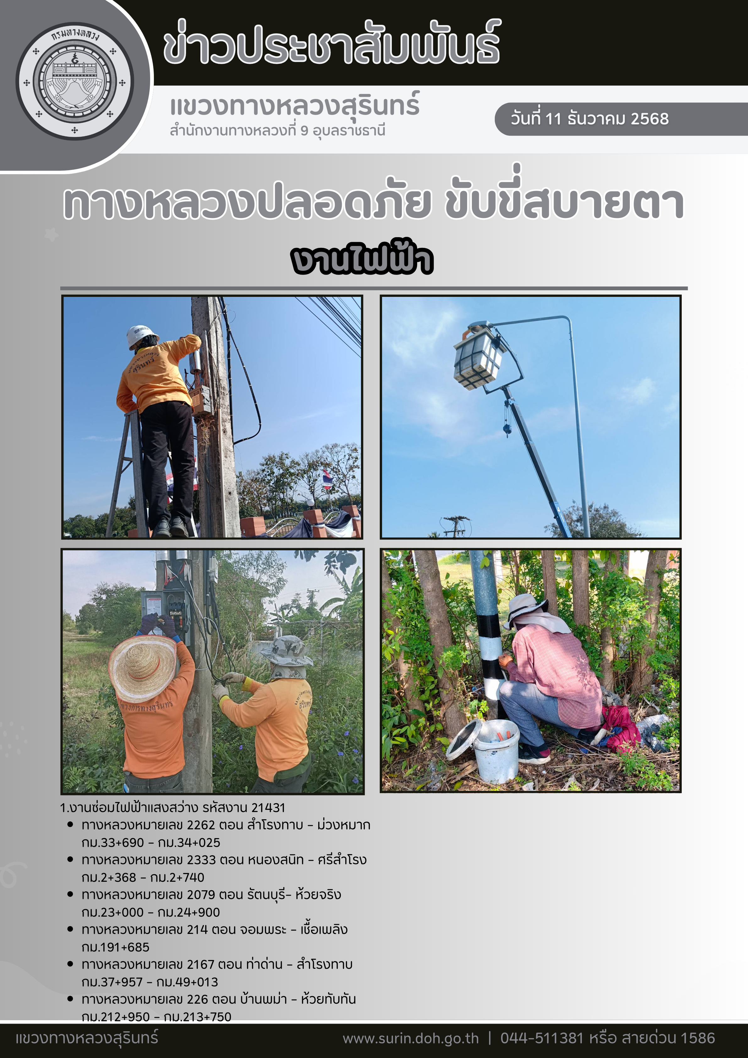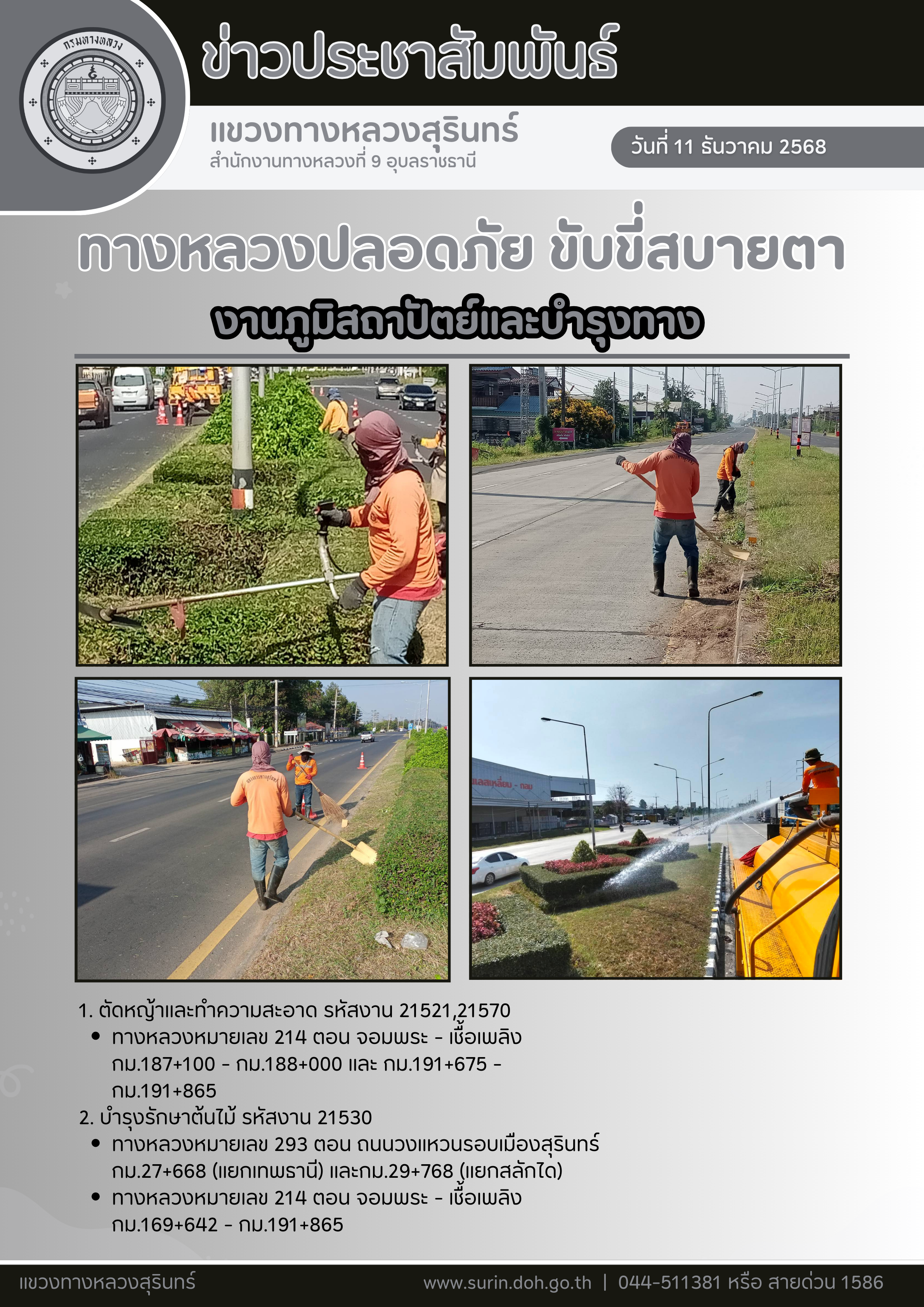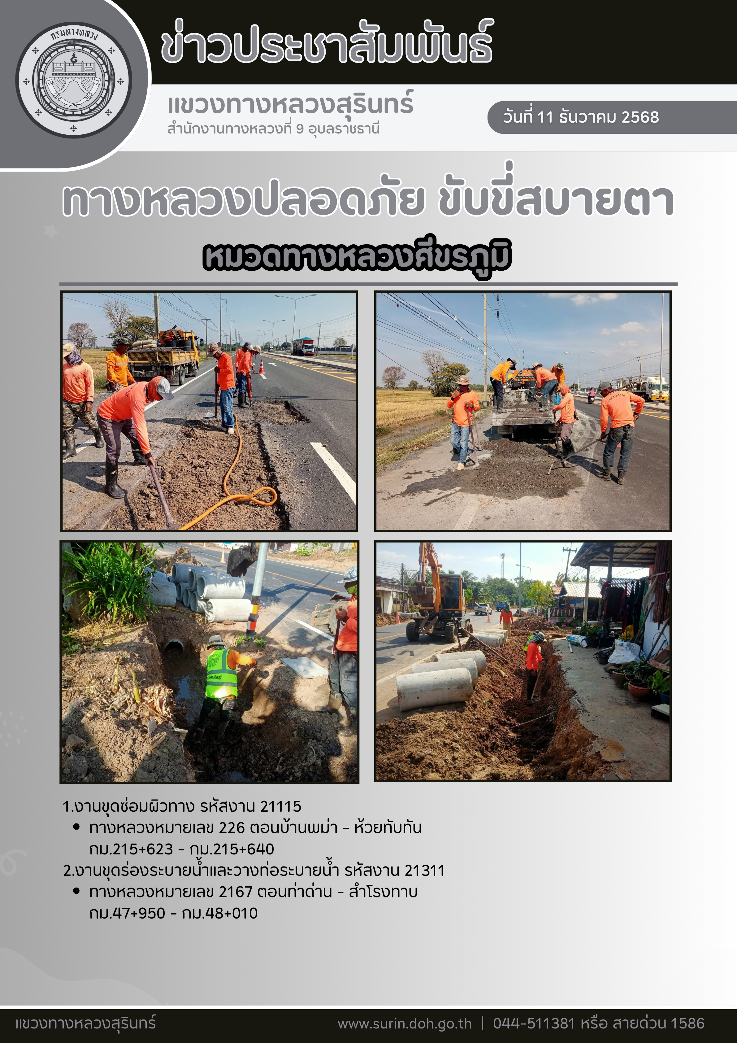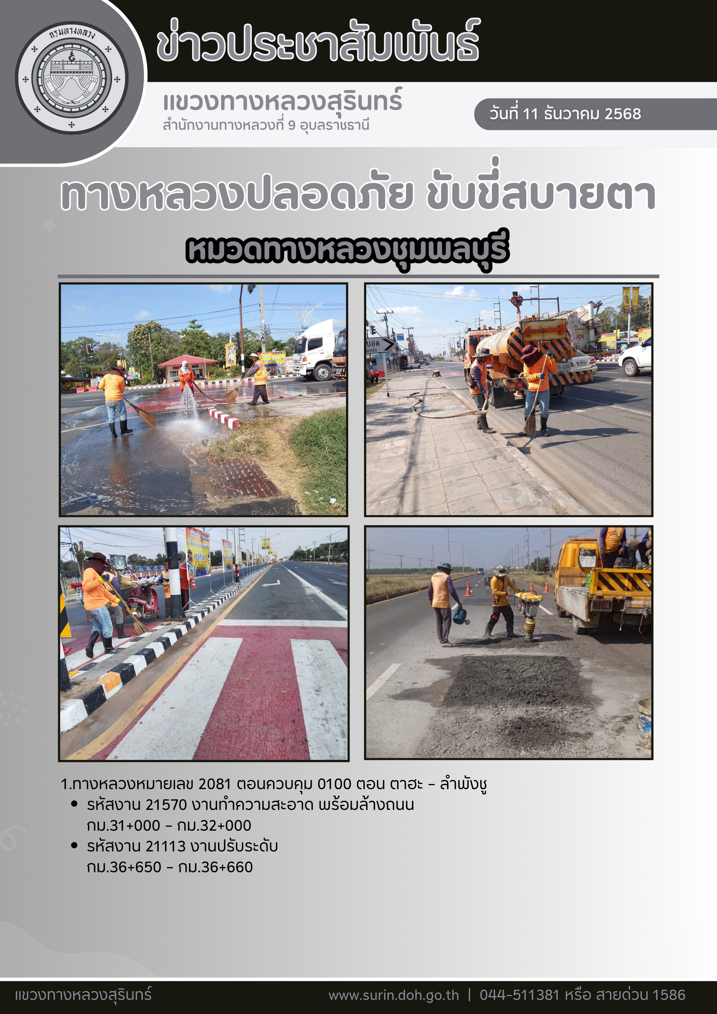ข้อมูลข่าว : ทางหลวงปลอดภัย ขับขี่สบายตา 11 ธันวาคม 2568