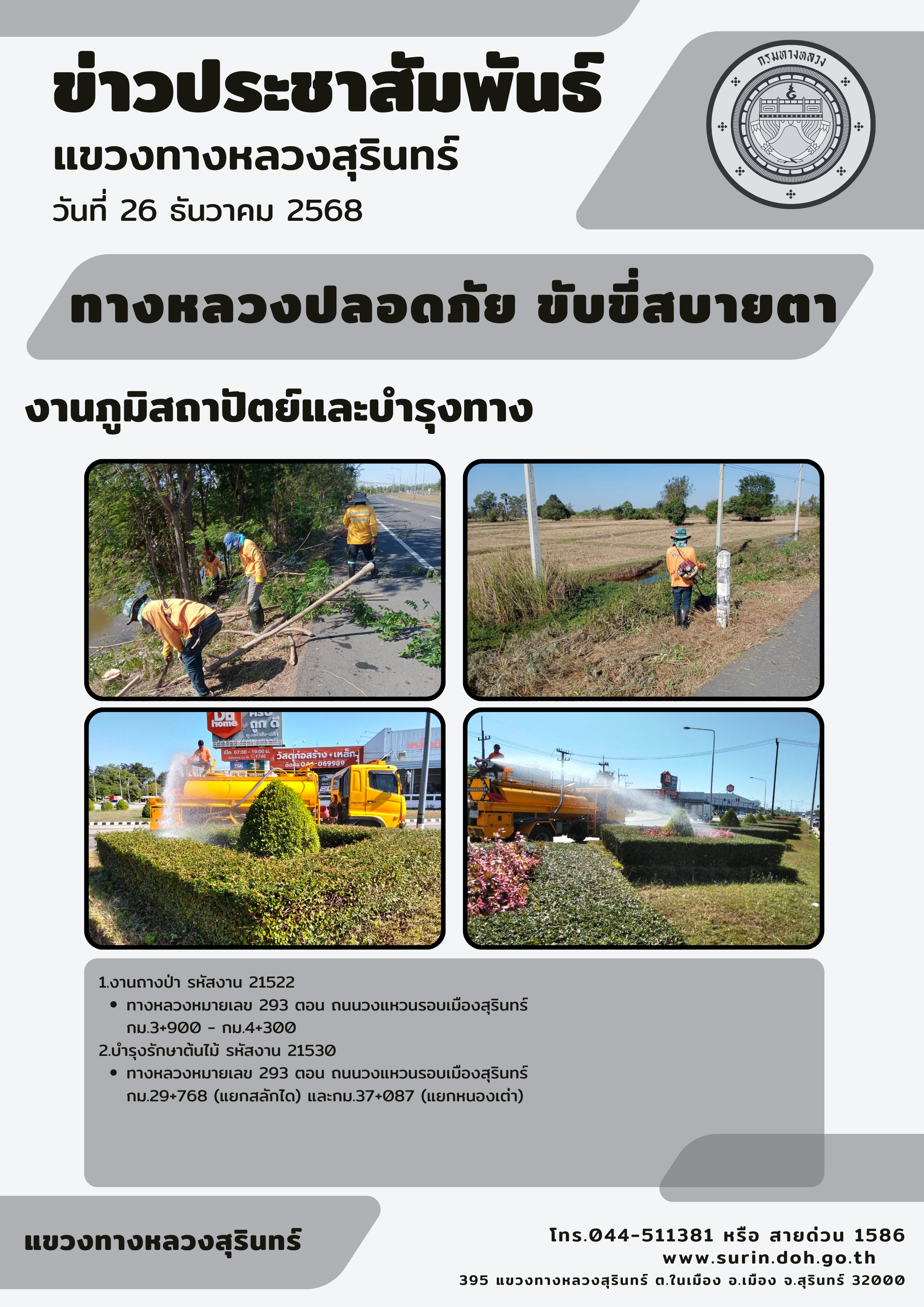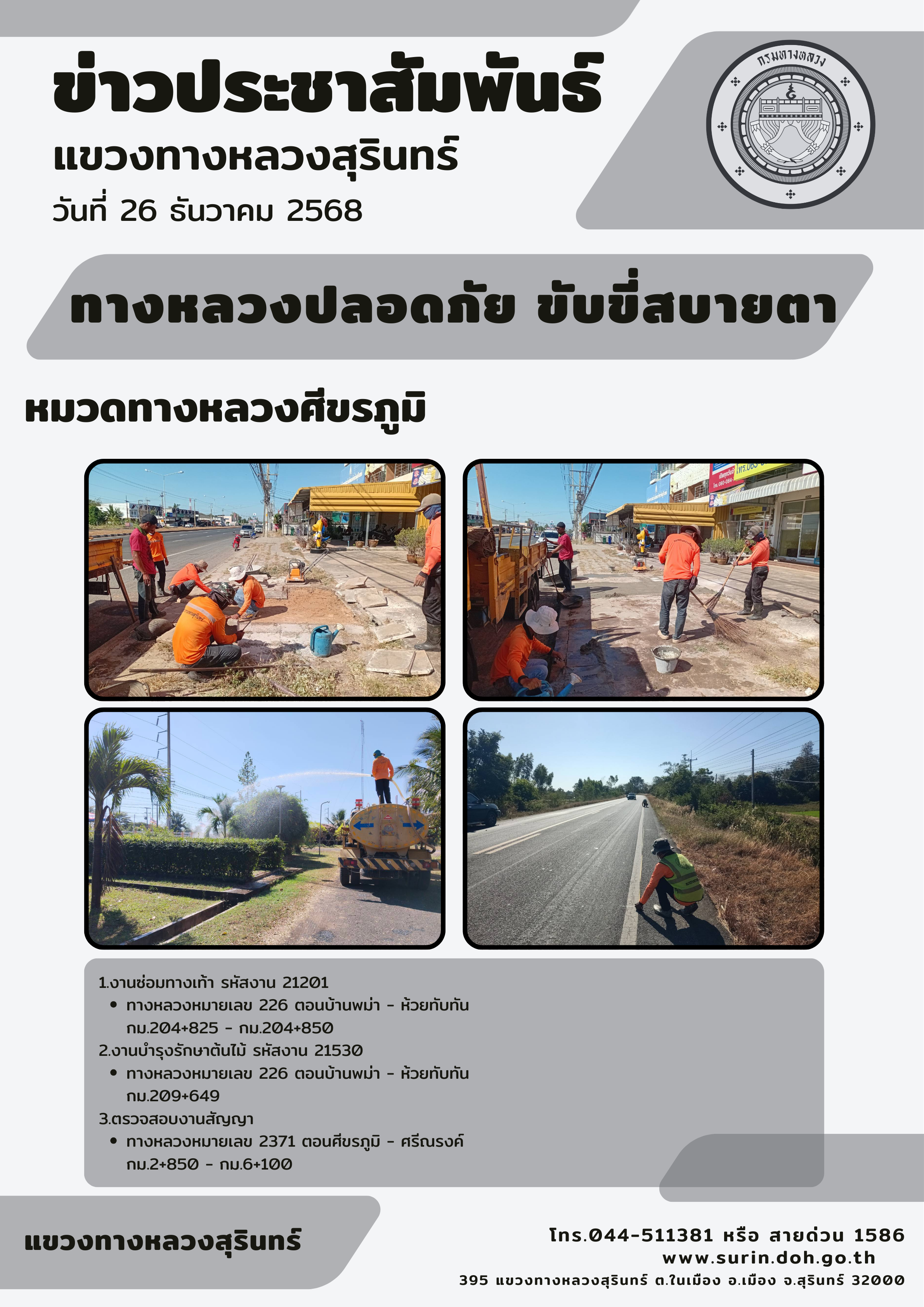 ข้อมูลข่าว : ทางหลวงปลอดภัย ขับขี่สบายตา 26 ธันวาคม 2568