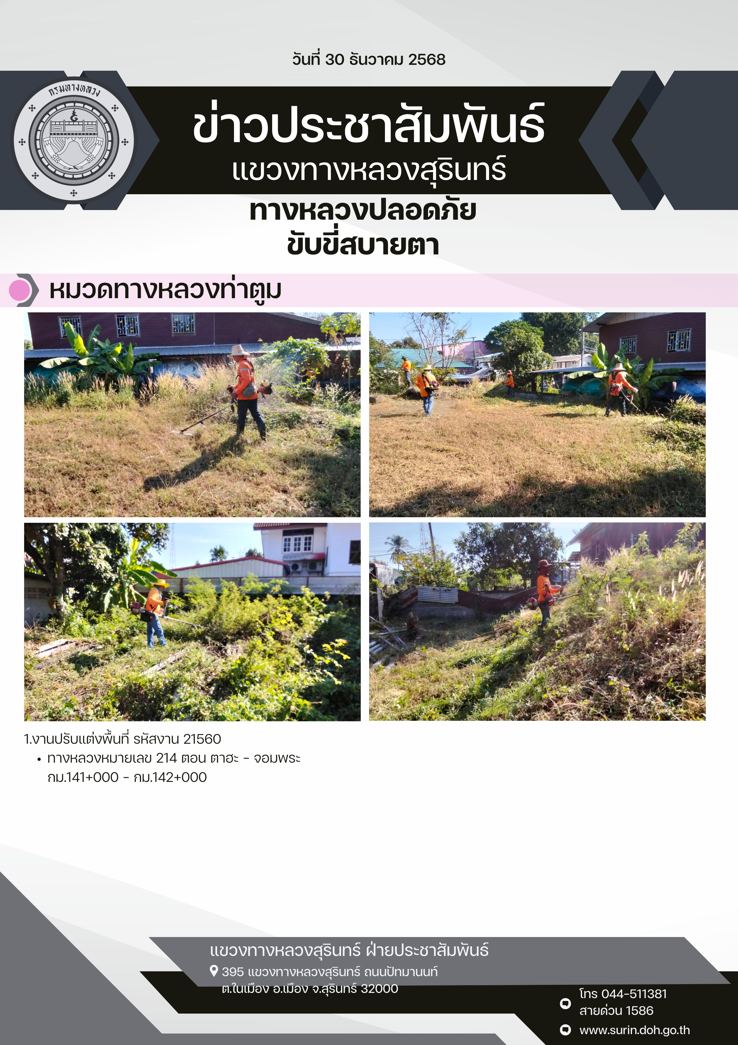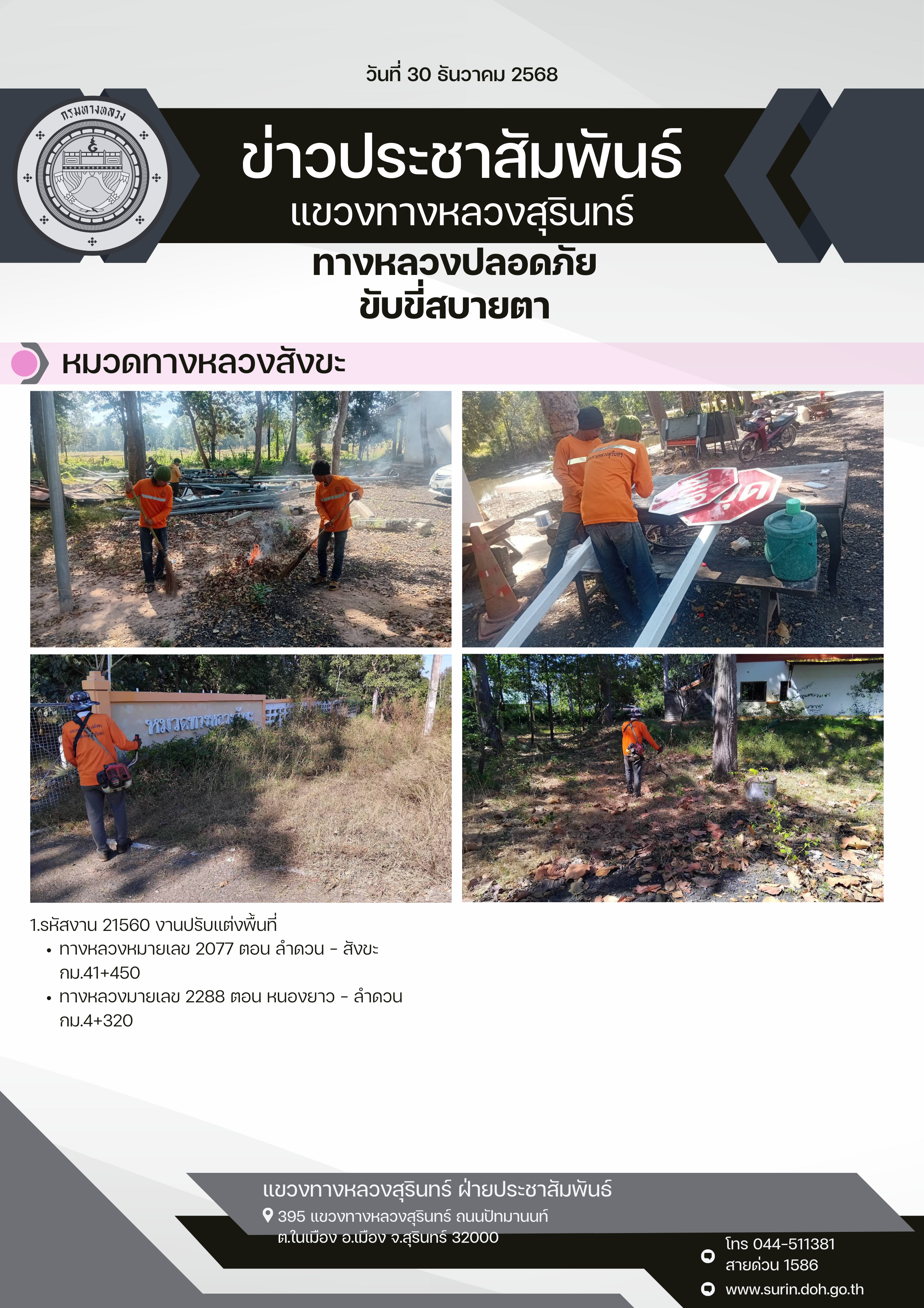 ข้อมูลข่าว : ทางหลวงปลอดภัย ขับขี่สบายตา 30 ธันวาคม 2568