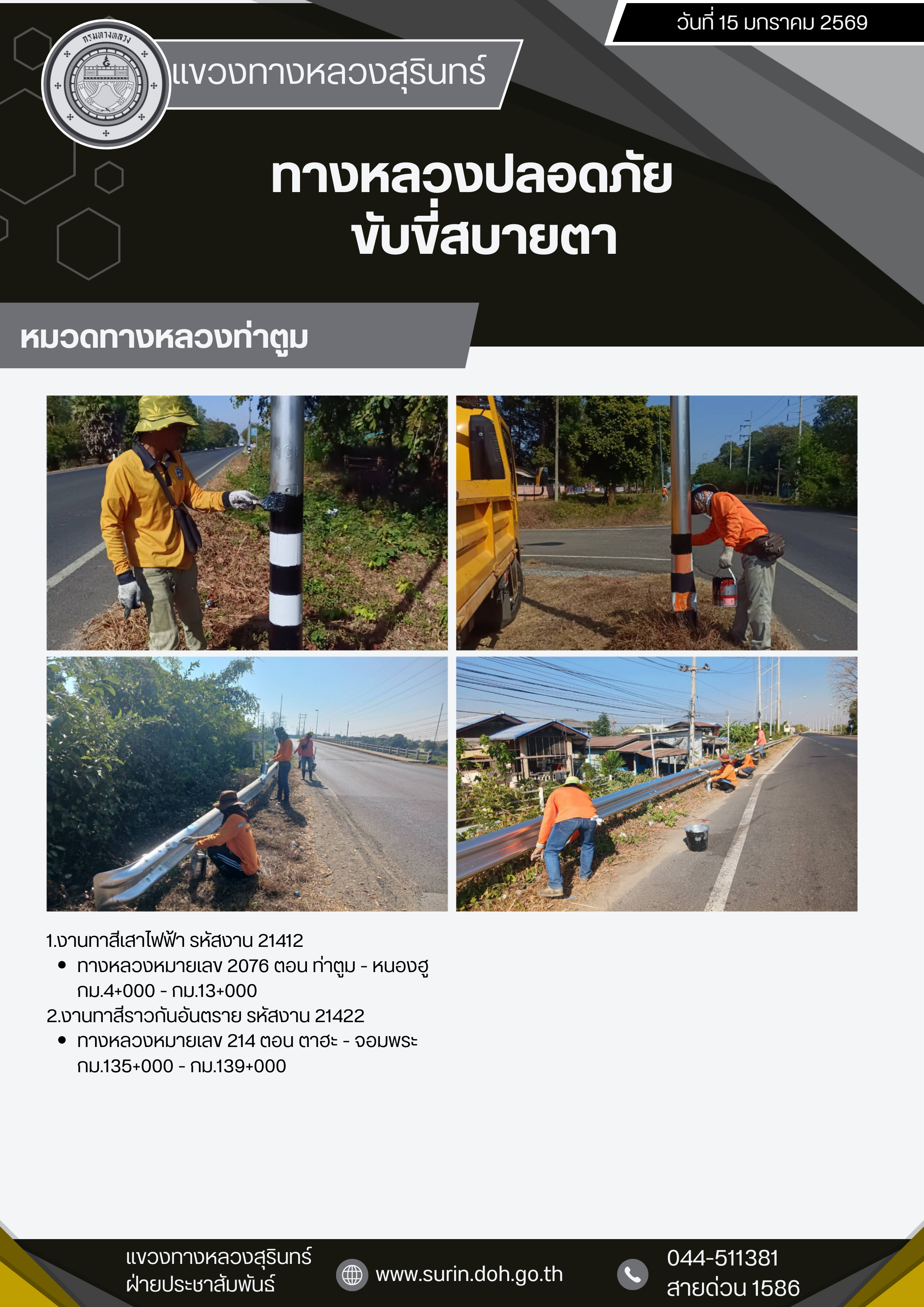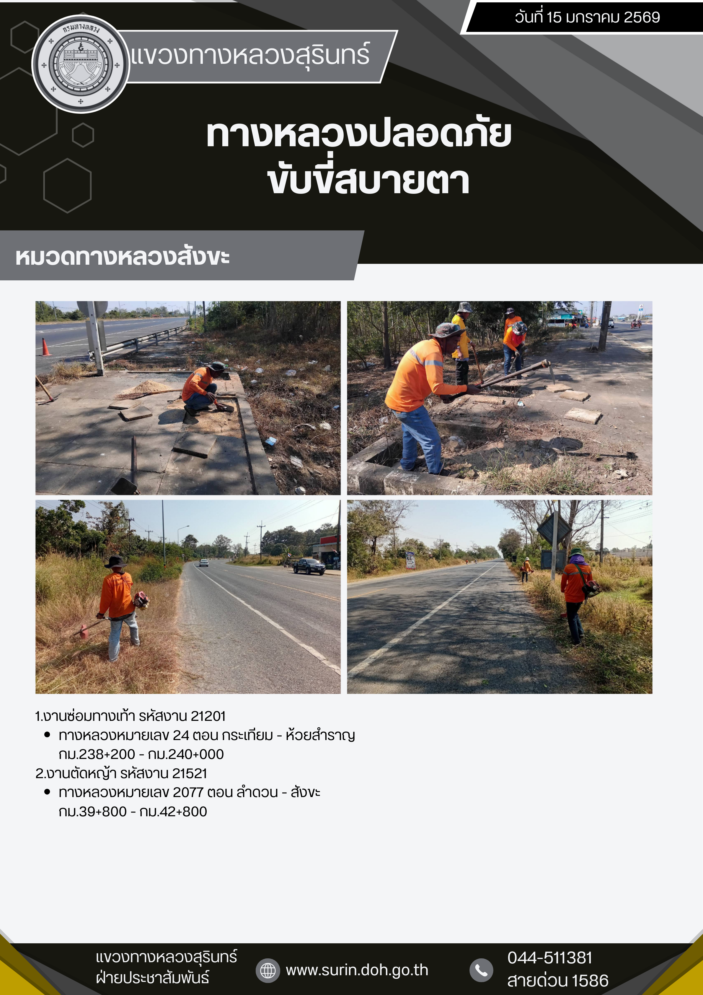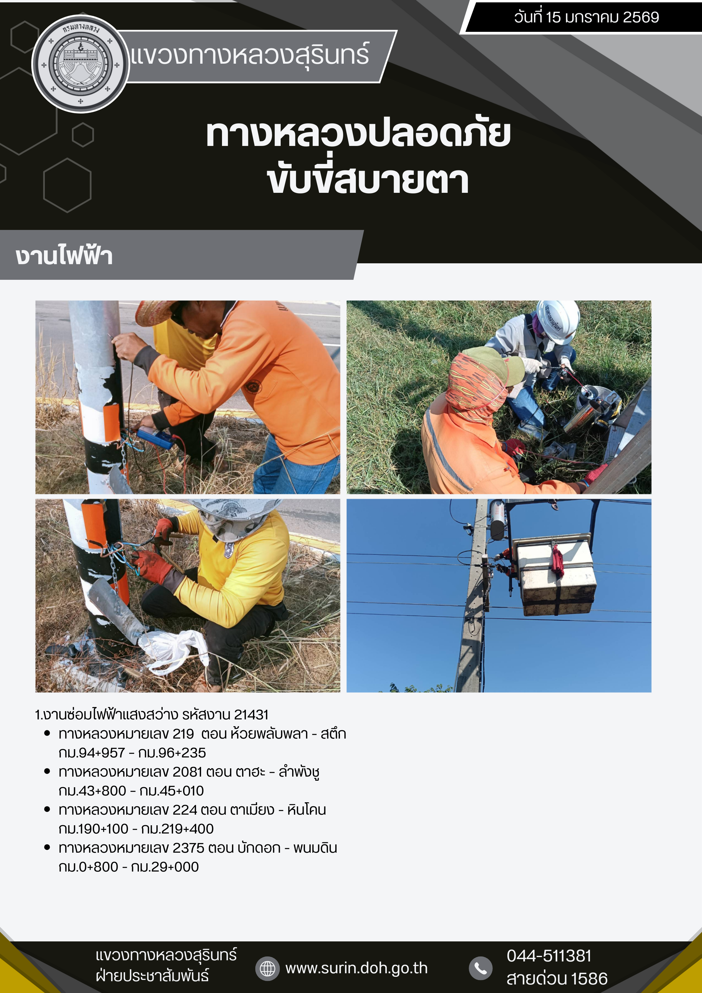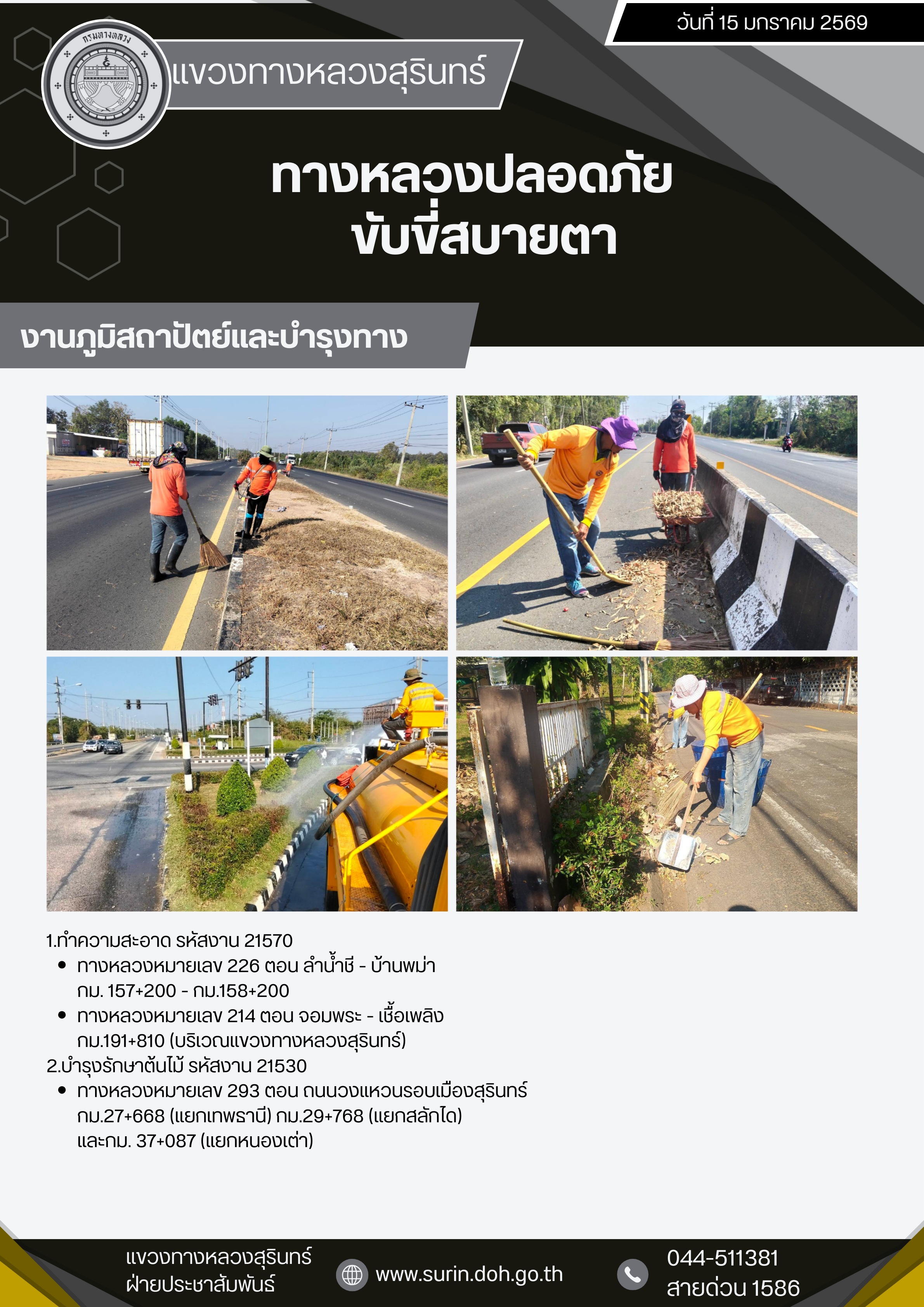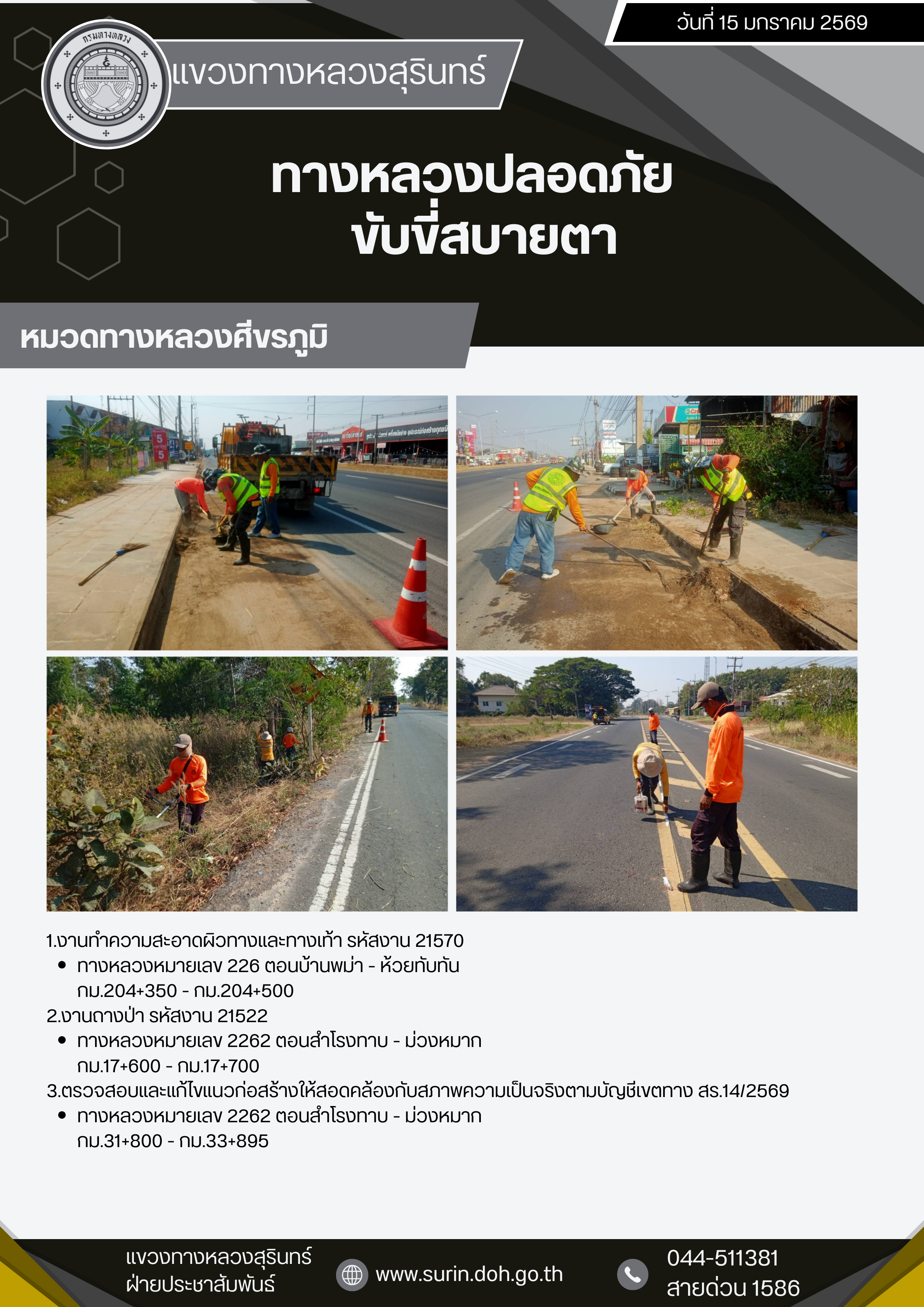 ข้อมูลข่าว : ทางหลวงปลอดภัย ขับขี่สบายตา 15 มกราคม 2569