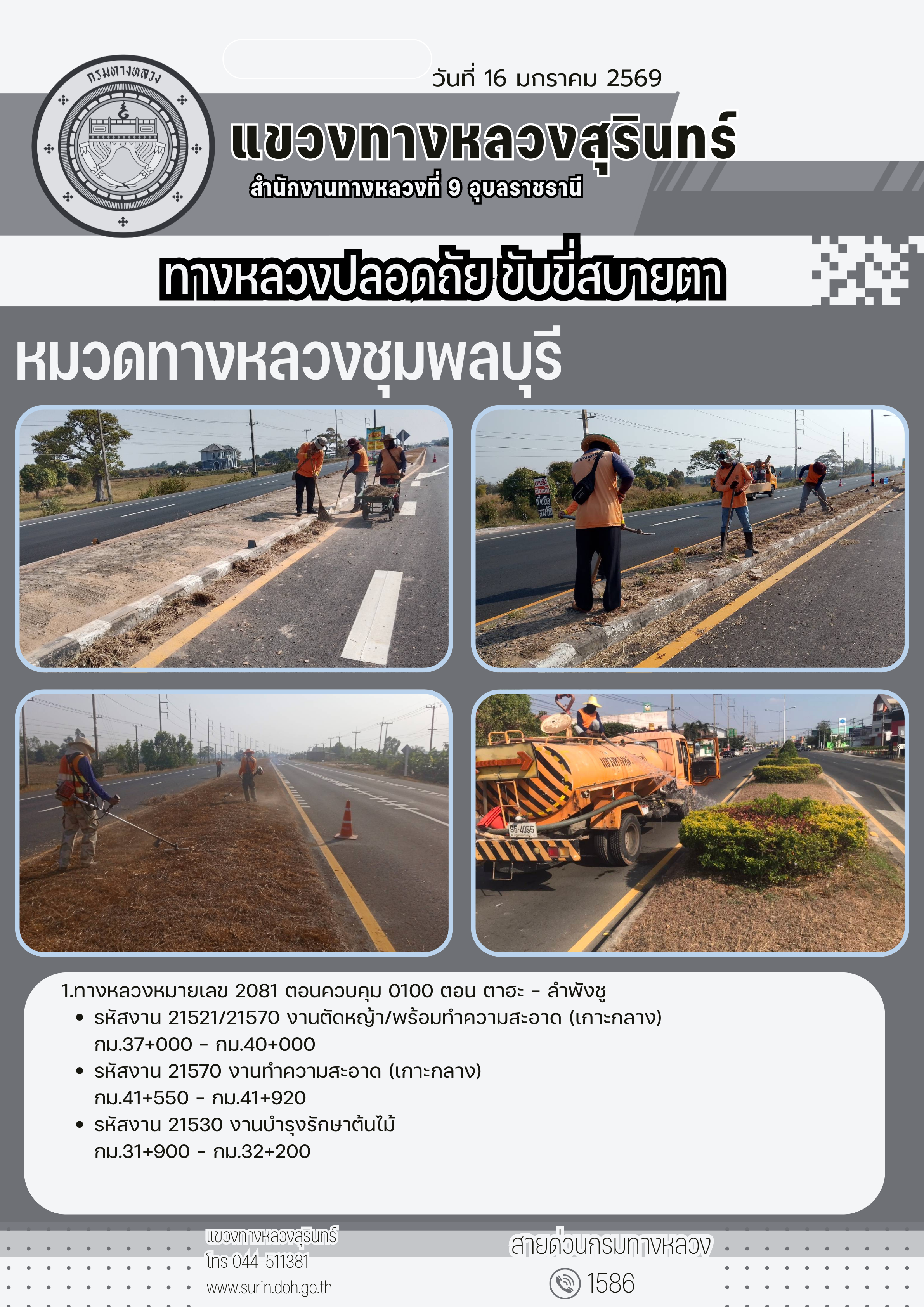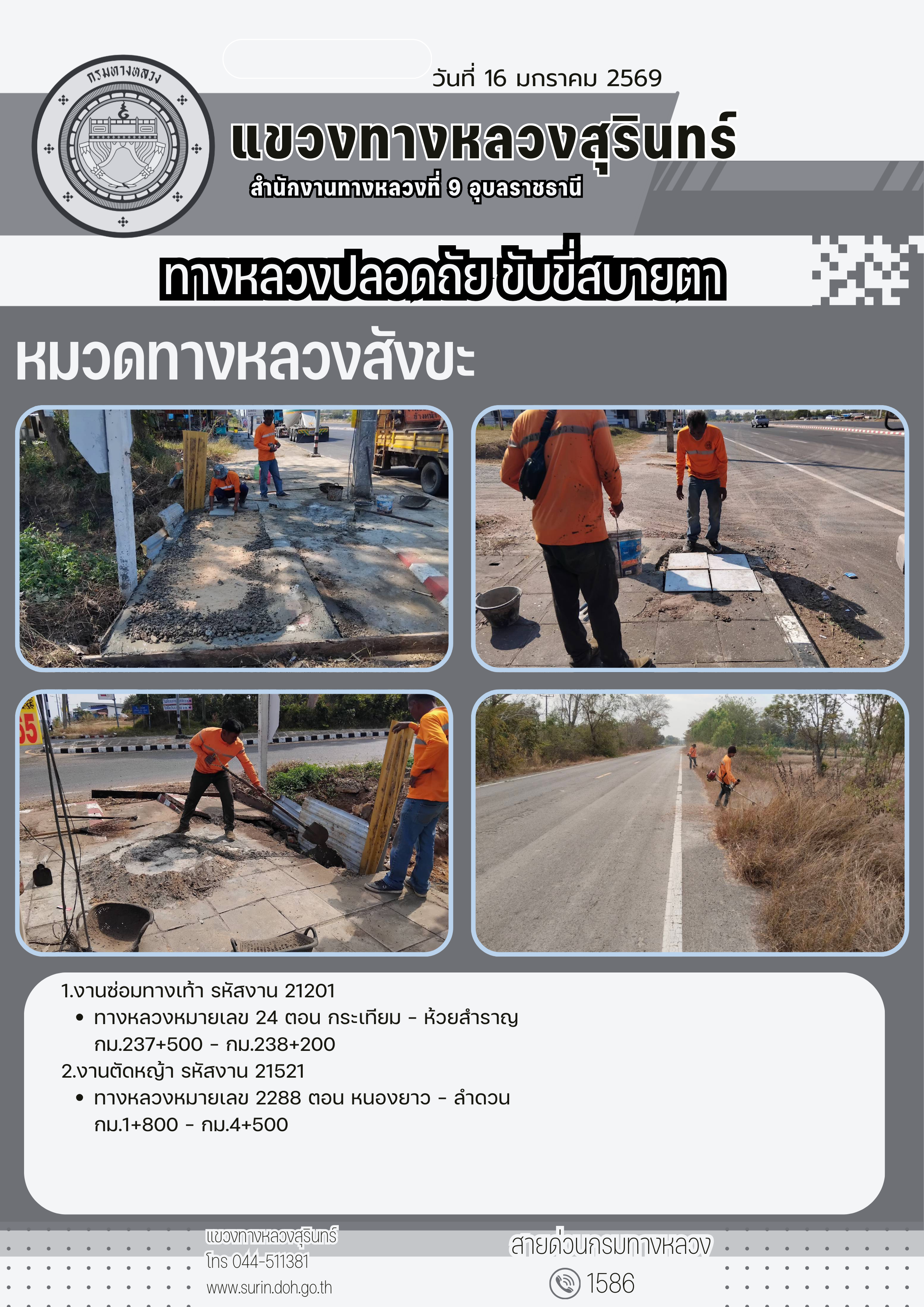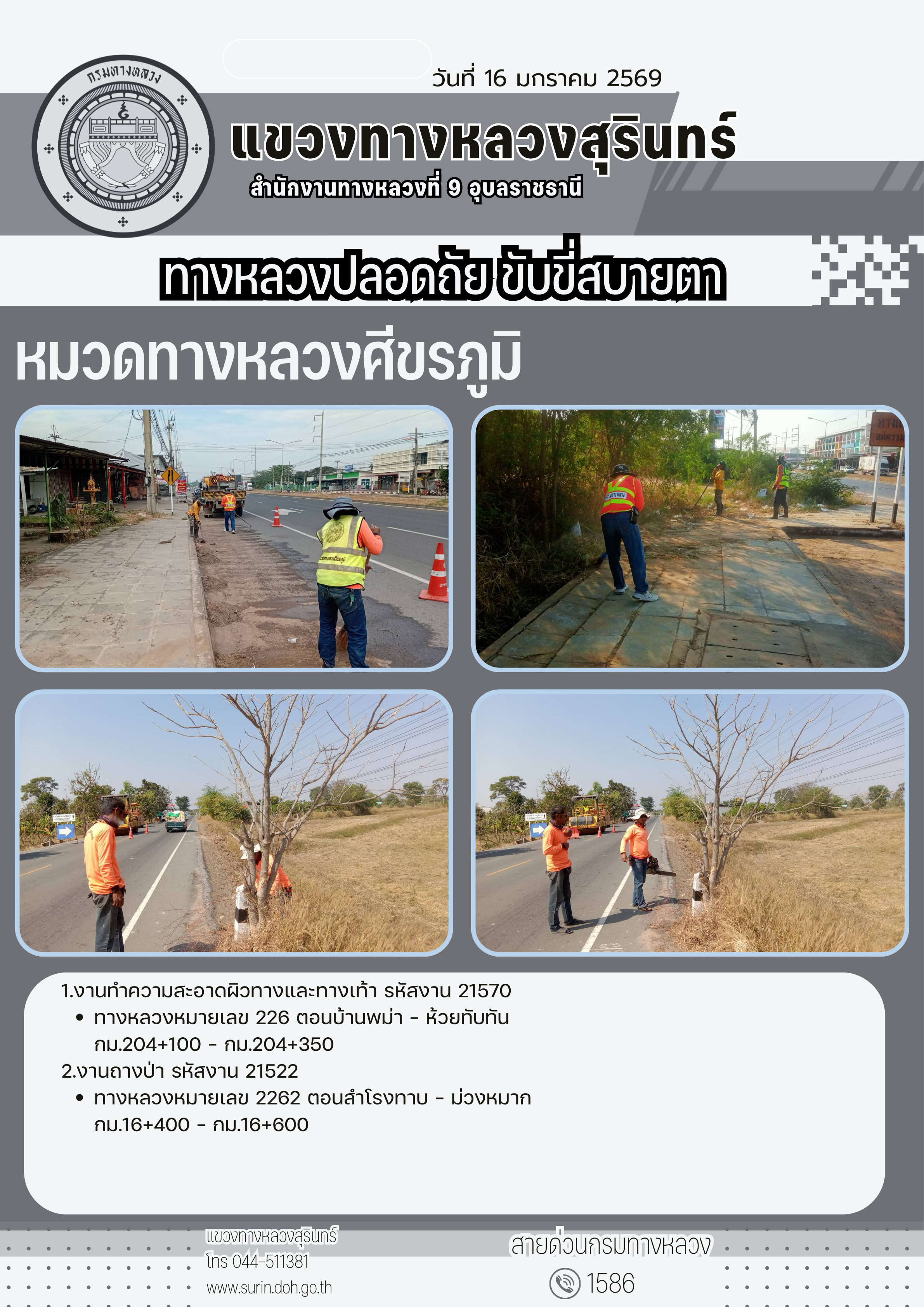 ทางหลวงปลอดภัย ขับขี่สบายตา 16 มกราคม 2569