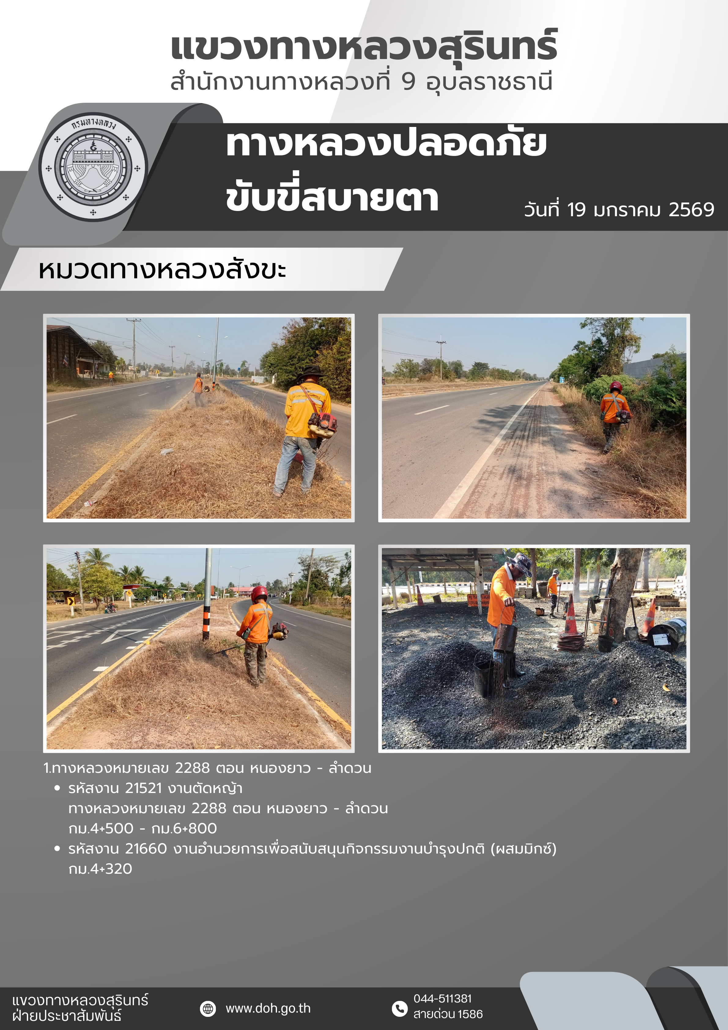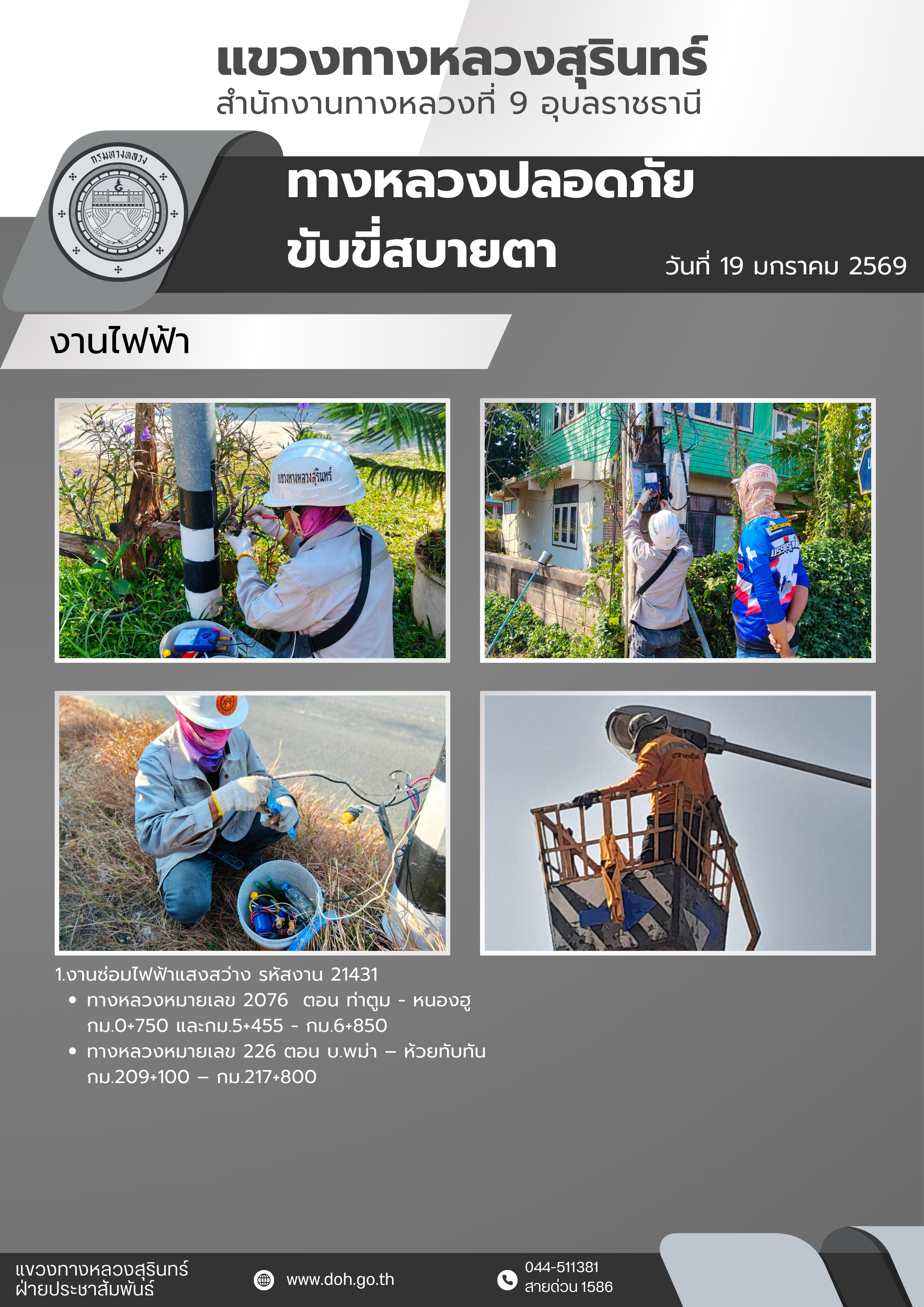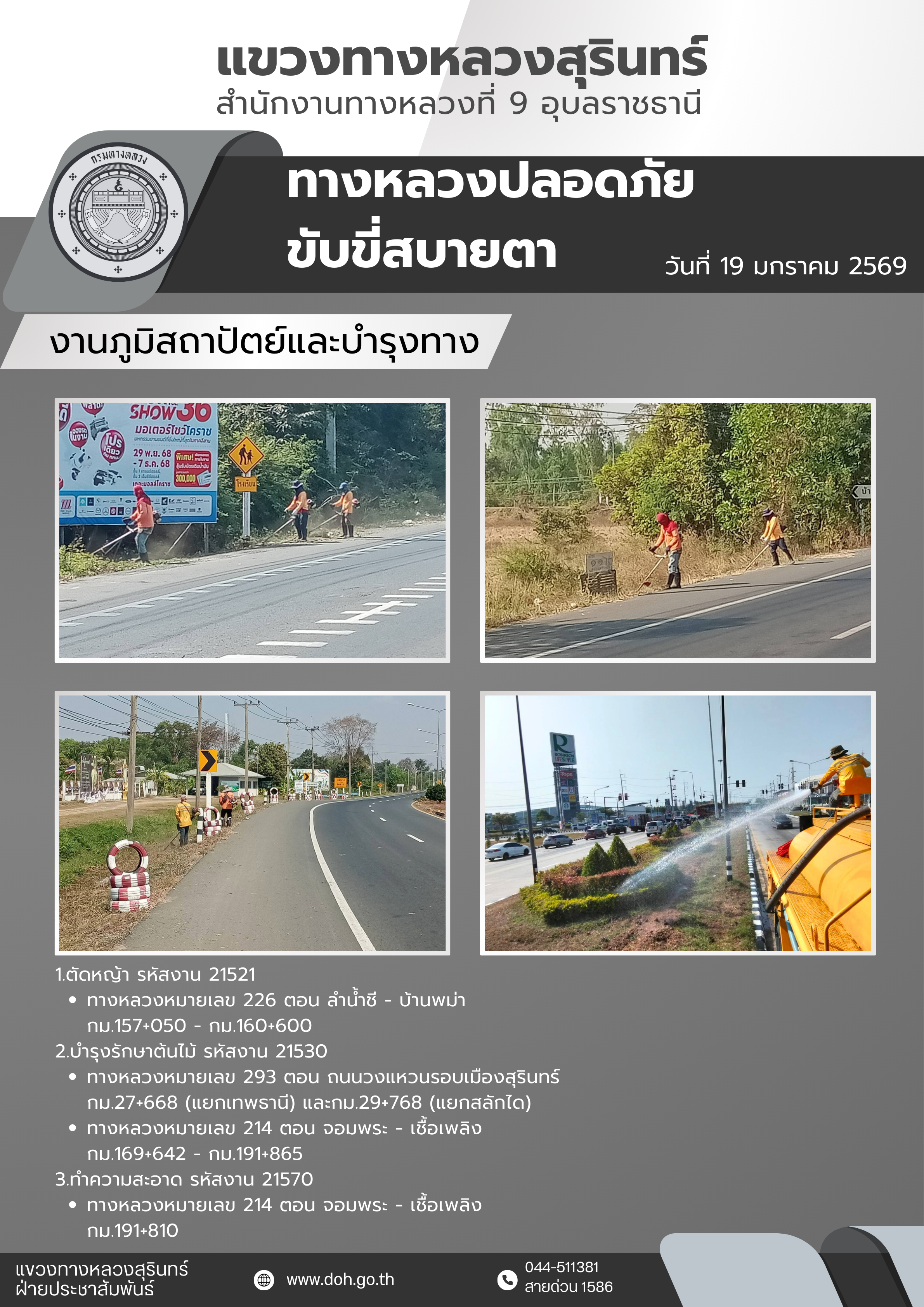 ข้อมูลข่าว : ทางหลวงปลอดภัย ขับขี่สบายตา 19 มกราคม 2568