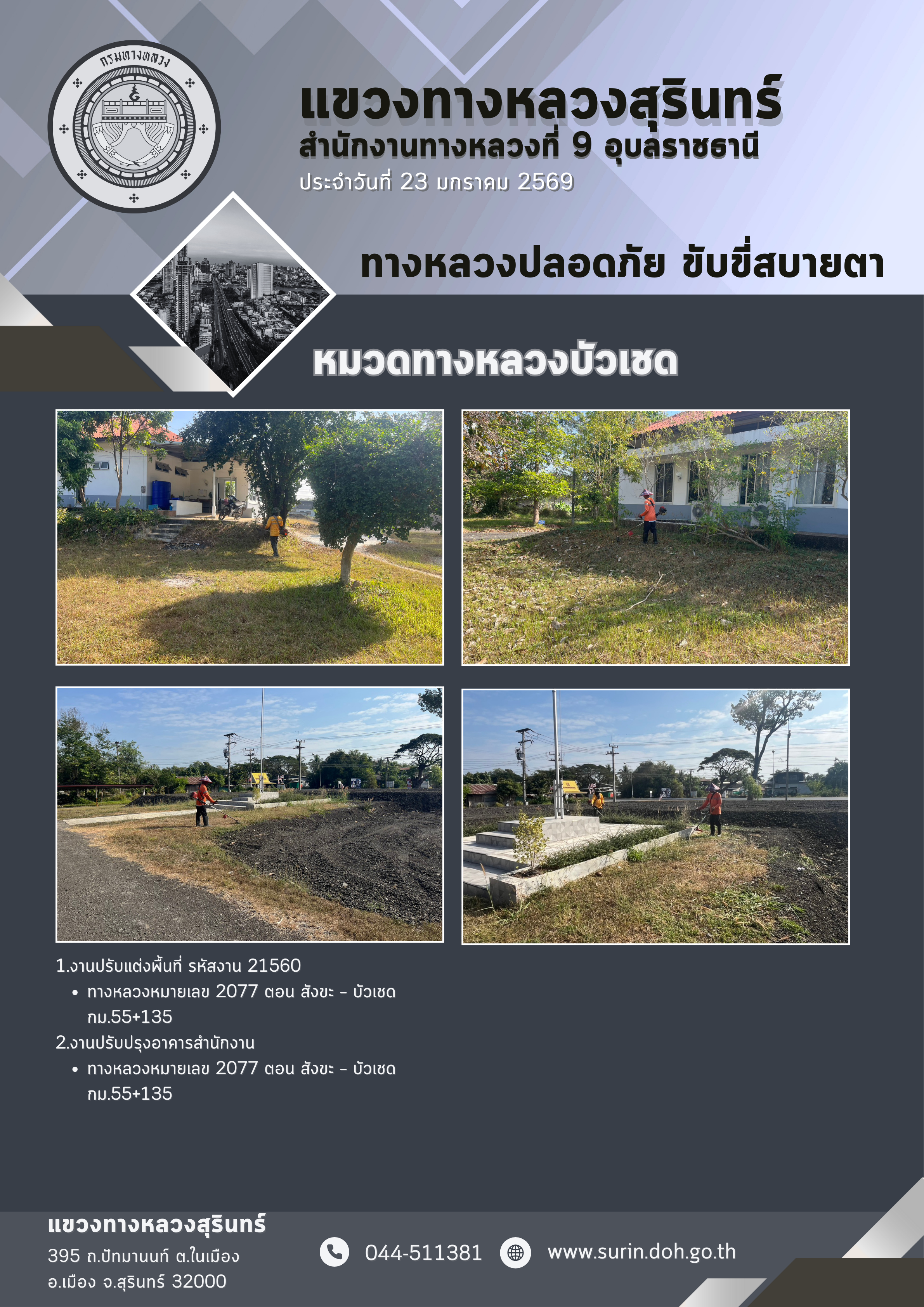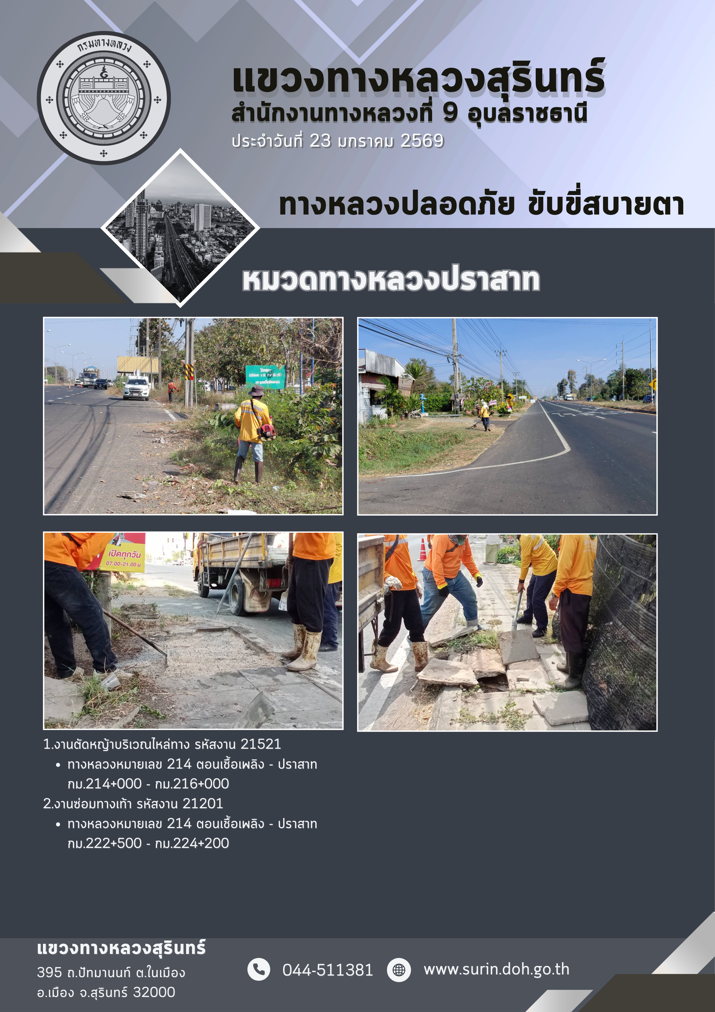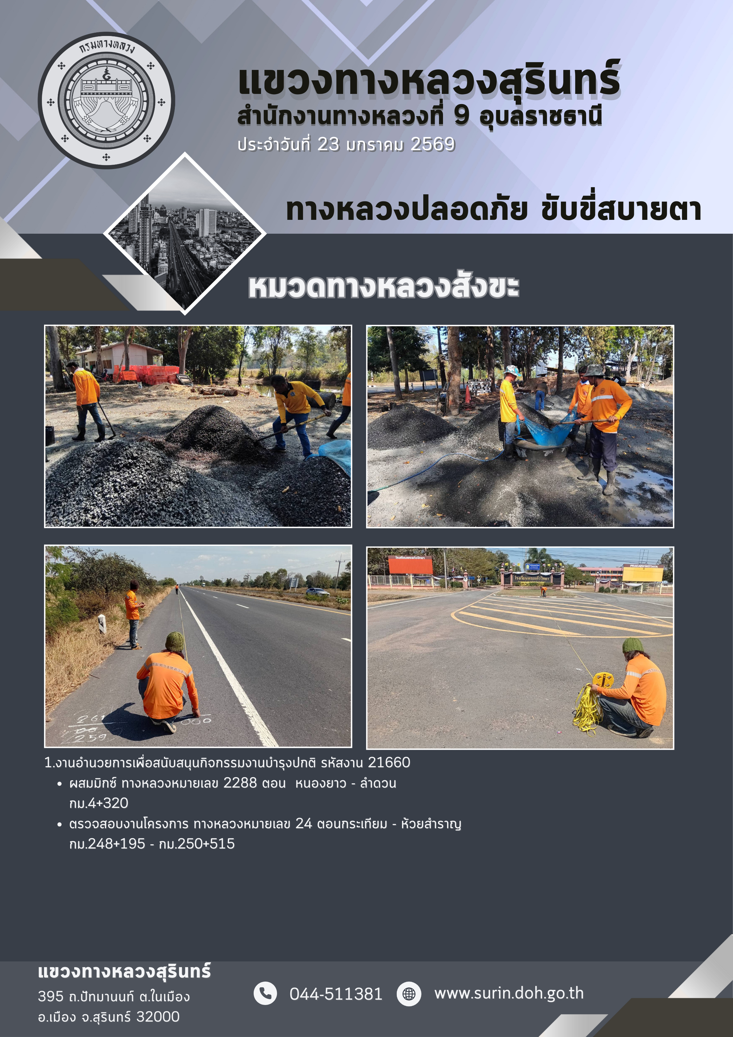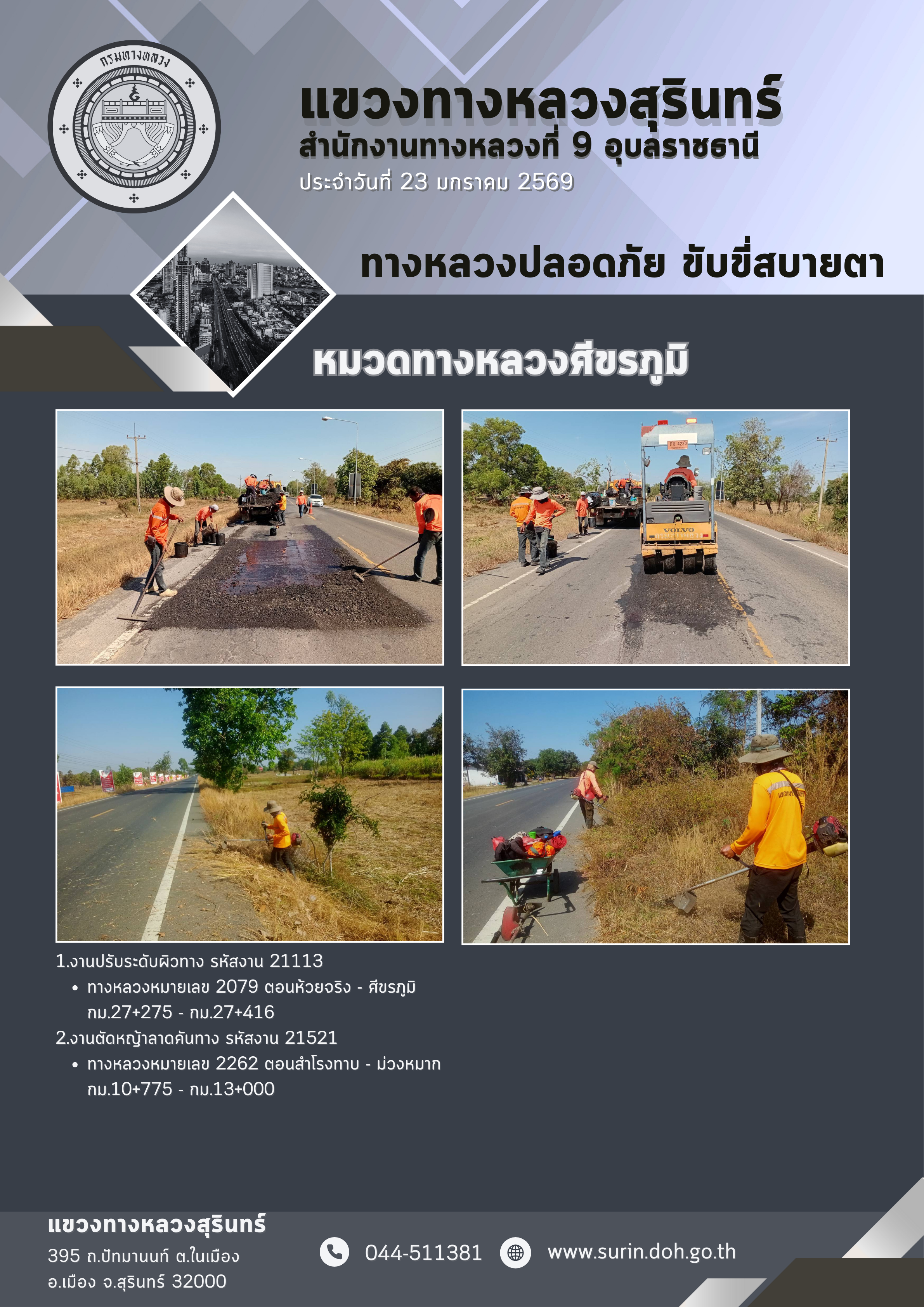 ข้อมูลข่าว : ทางหลวงปลอดภัย ขับขี่สบายตา 23 มกราคม 2569