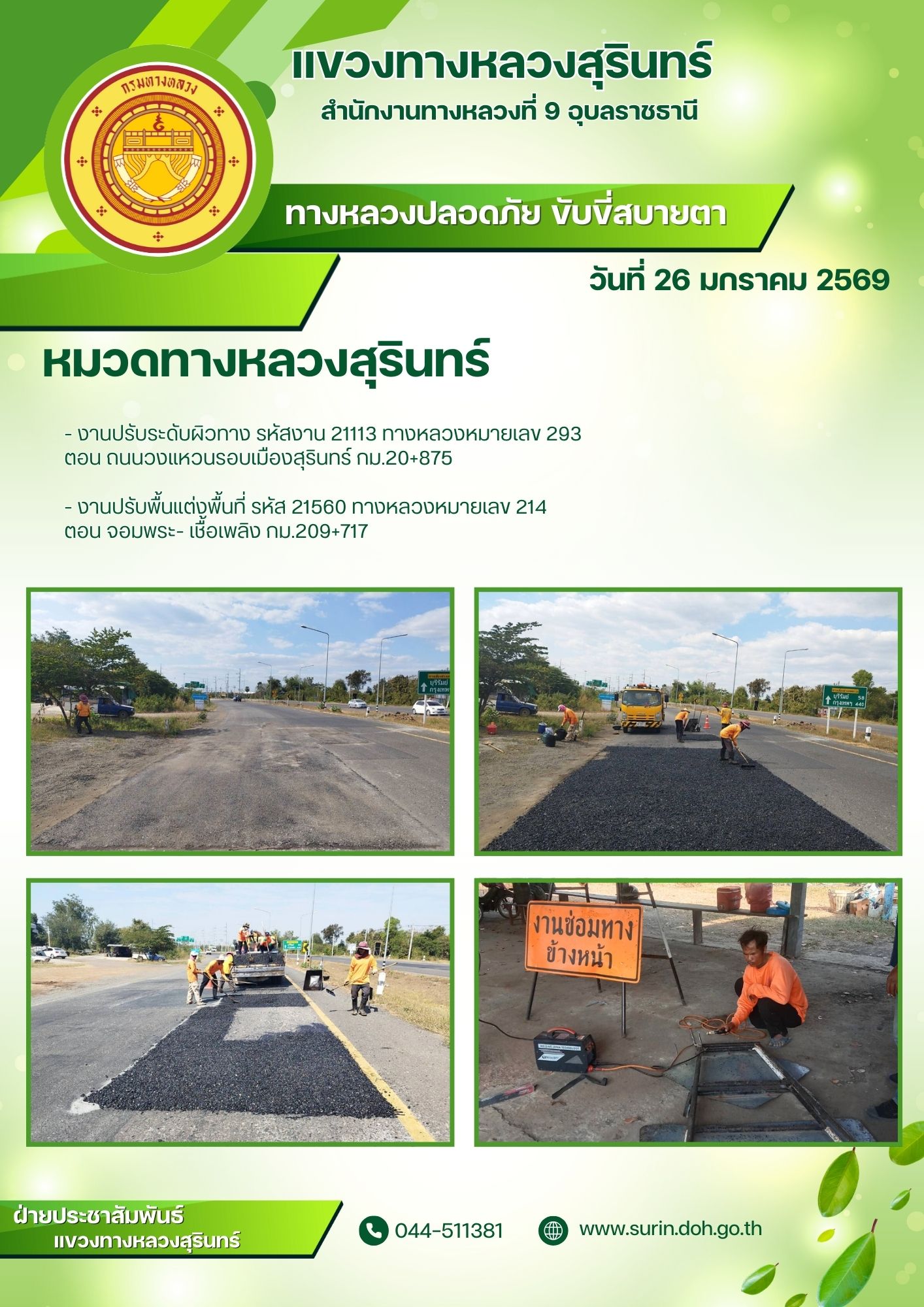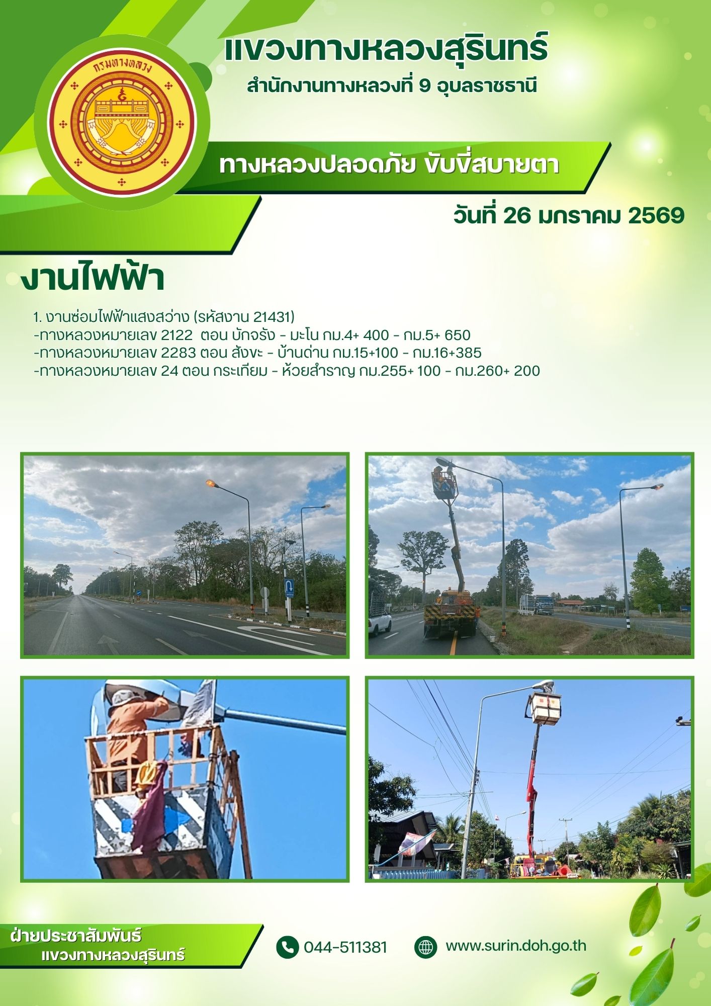 ข้อมูลข่าว : ทางหลวงปลอดภัย ขับขี่สบายตา 26 มกราคม 2569