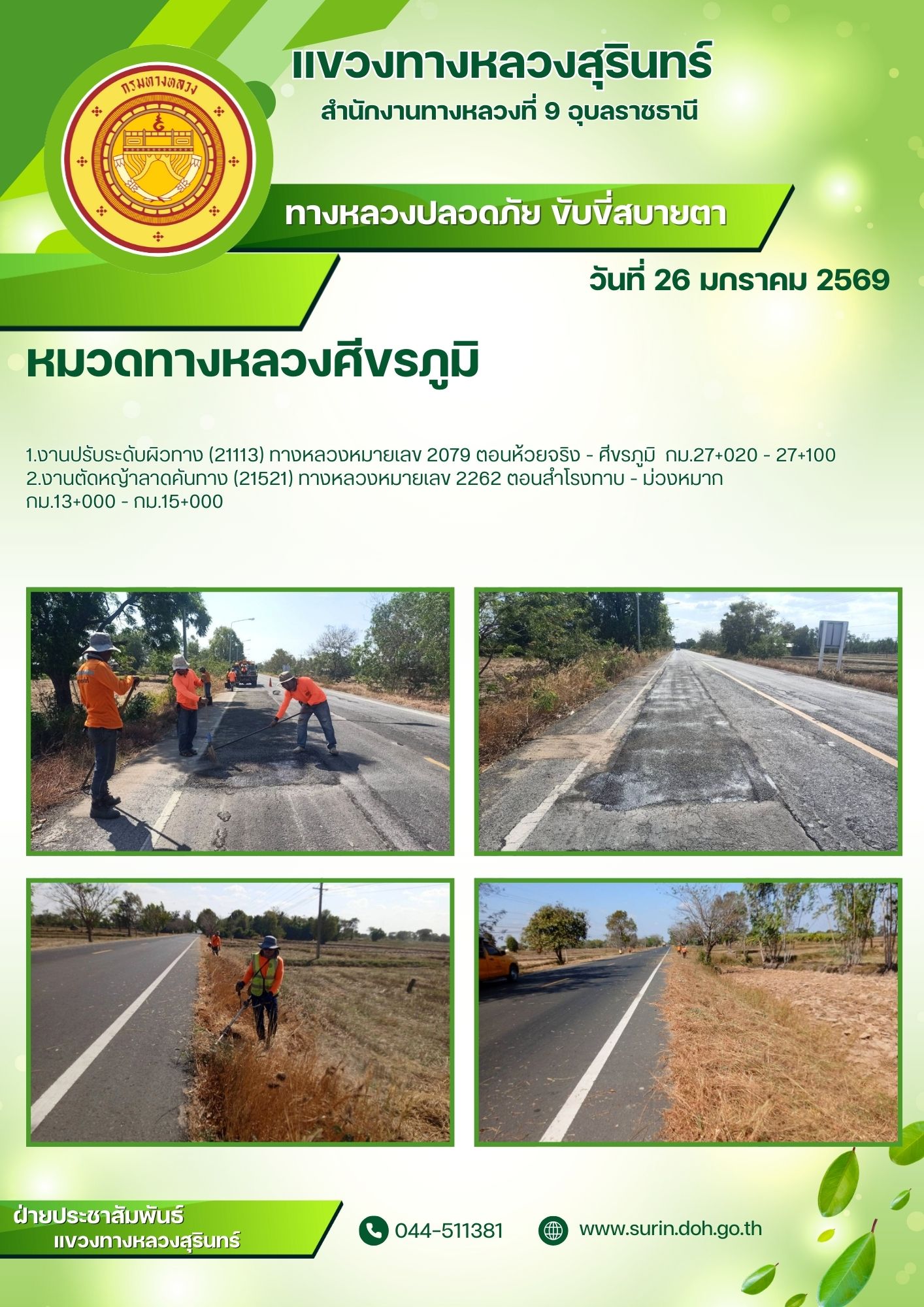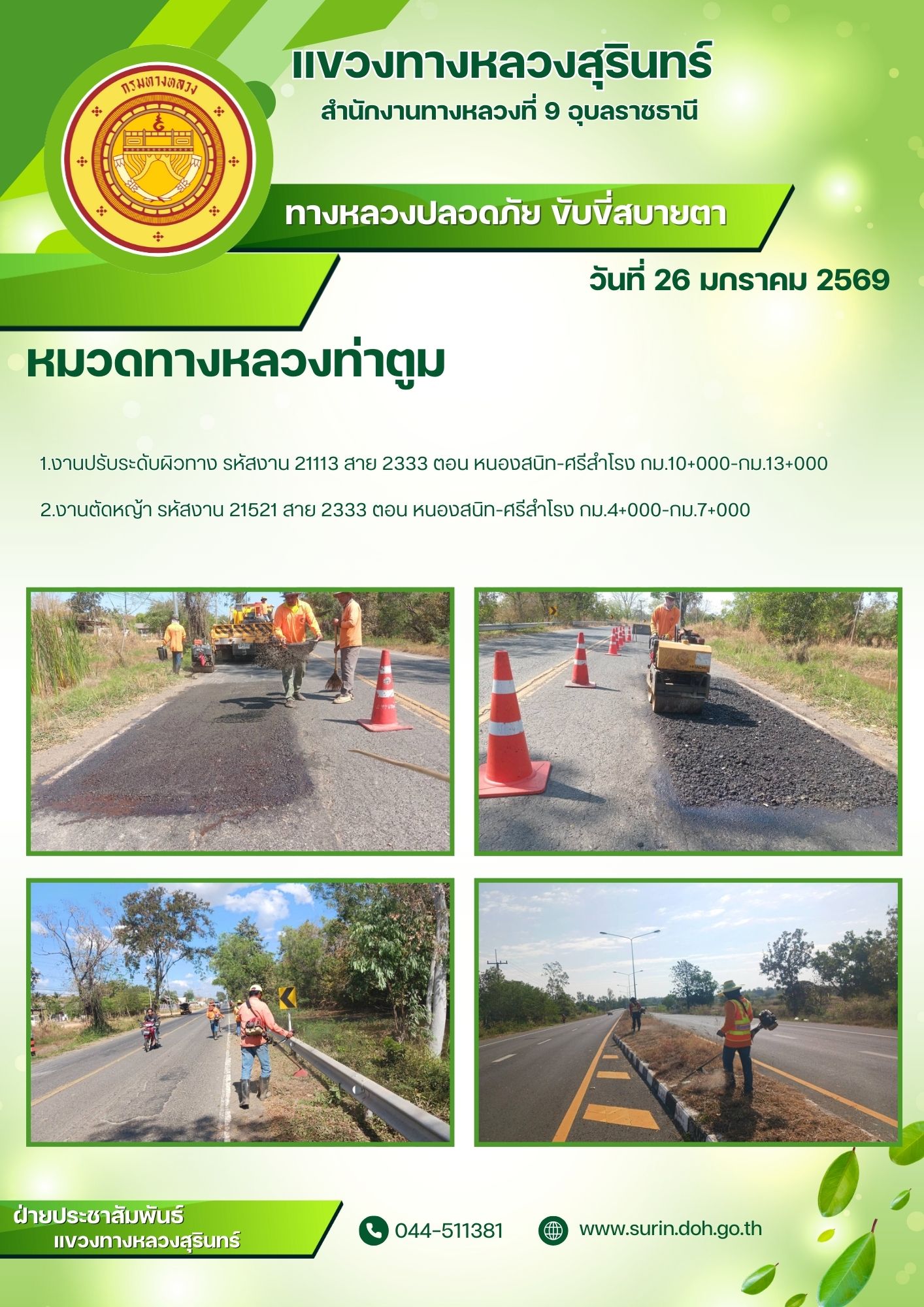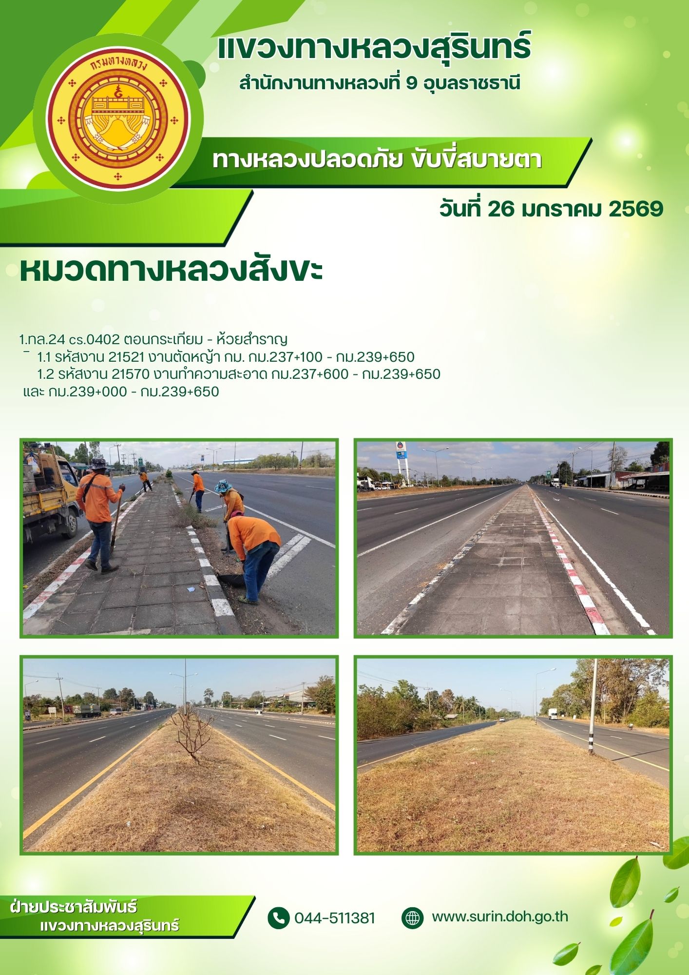 ทางหลวงปลอดภัย ขับขี่สบายตา 26 มกราคม 2569