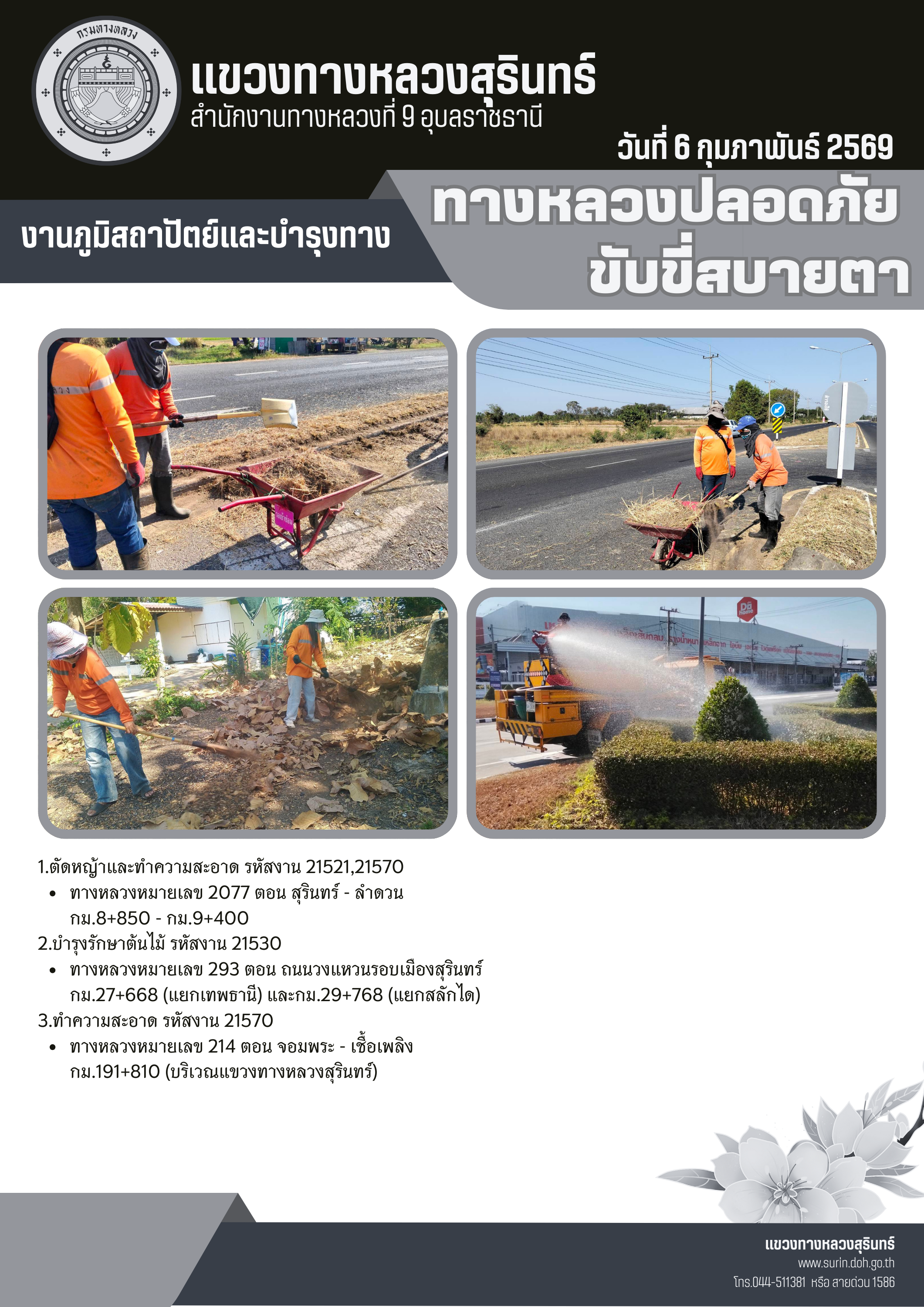 ทางหลวงปลอดภัย ขับขี่สบายตา 6 กุมภาพันธ์ 2569