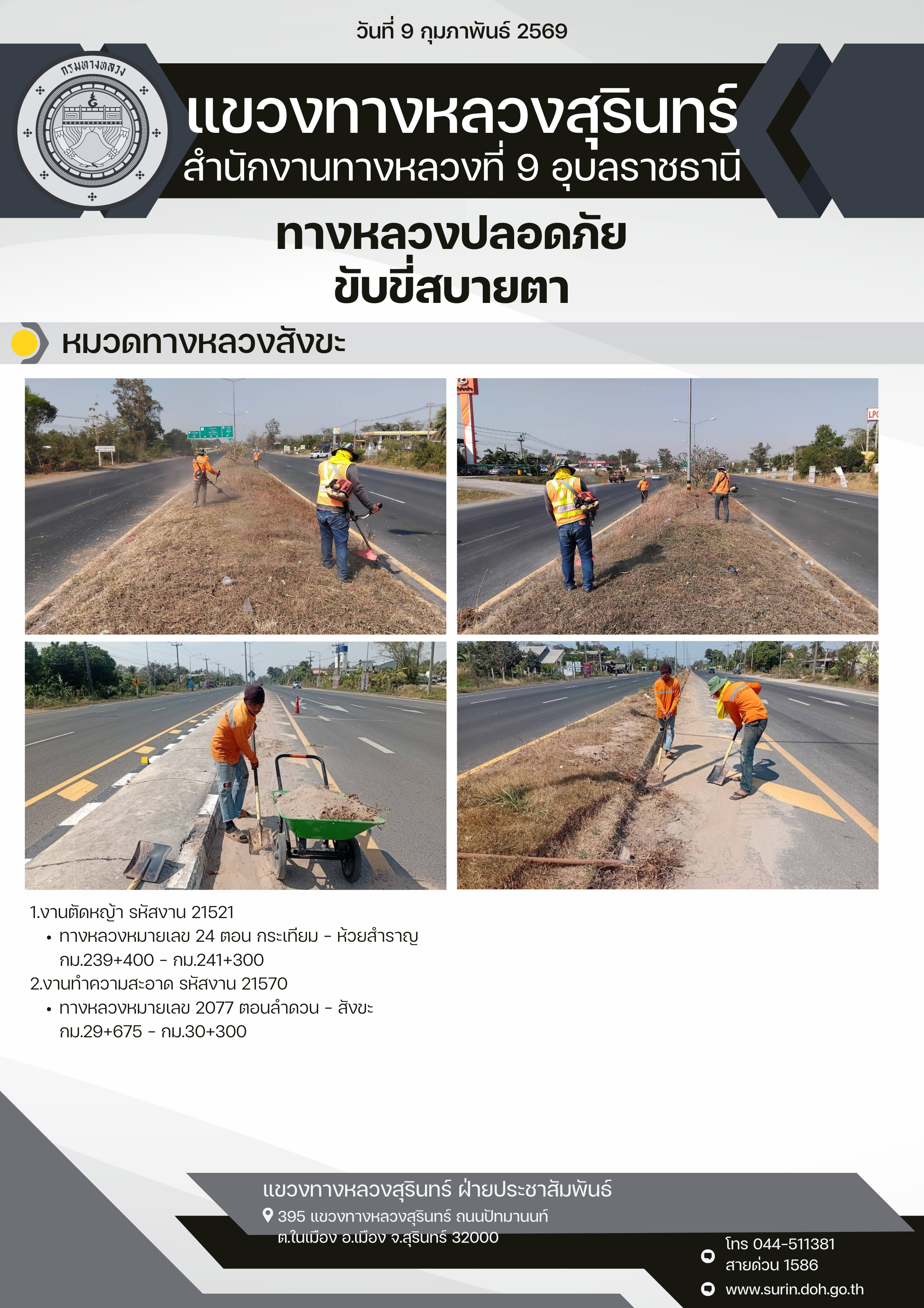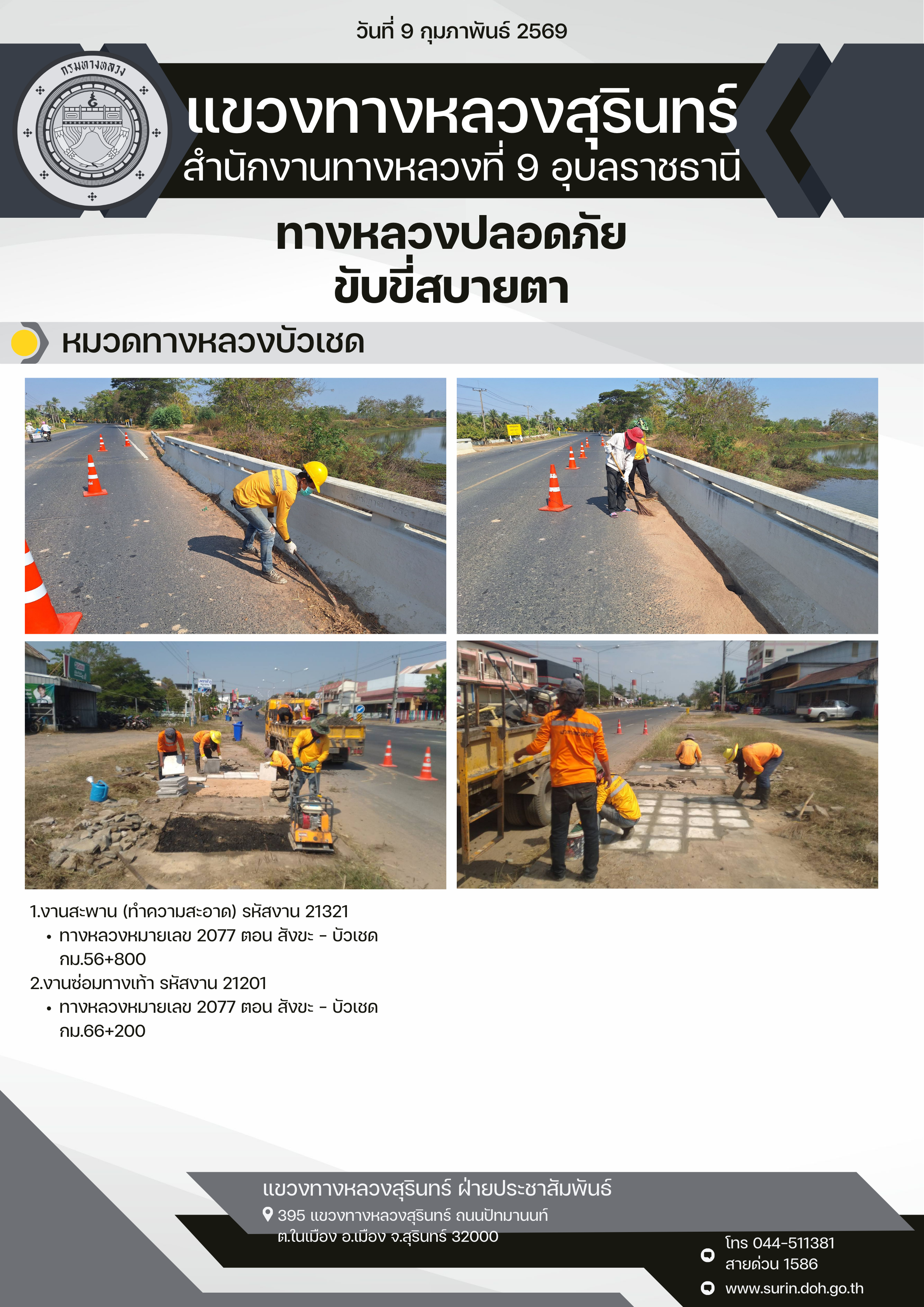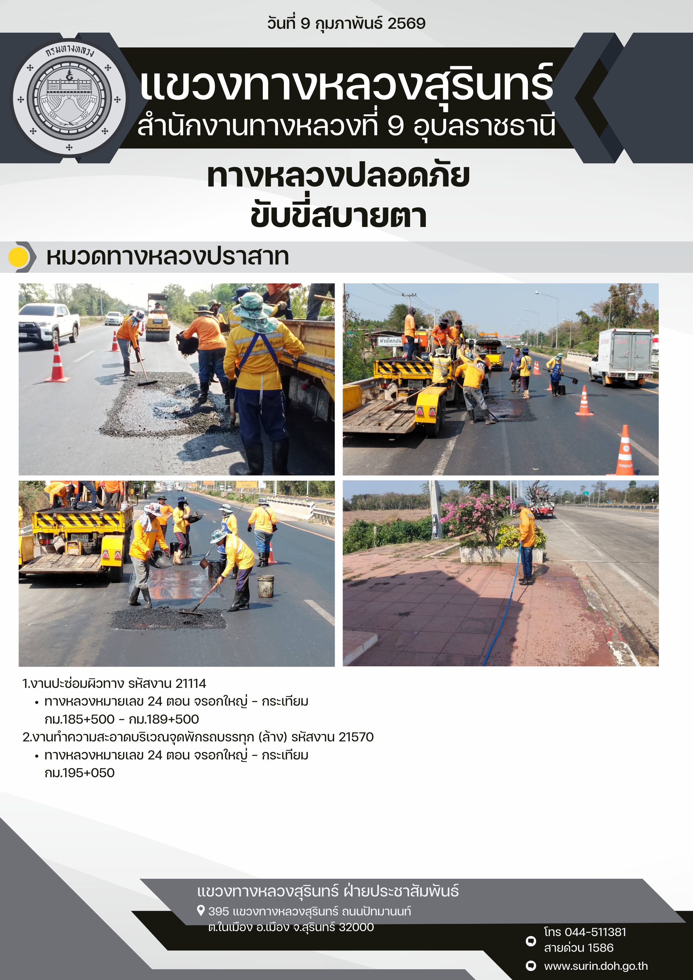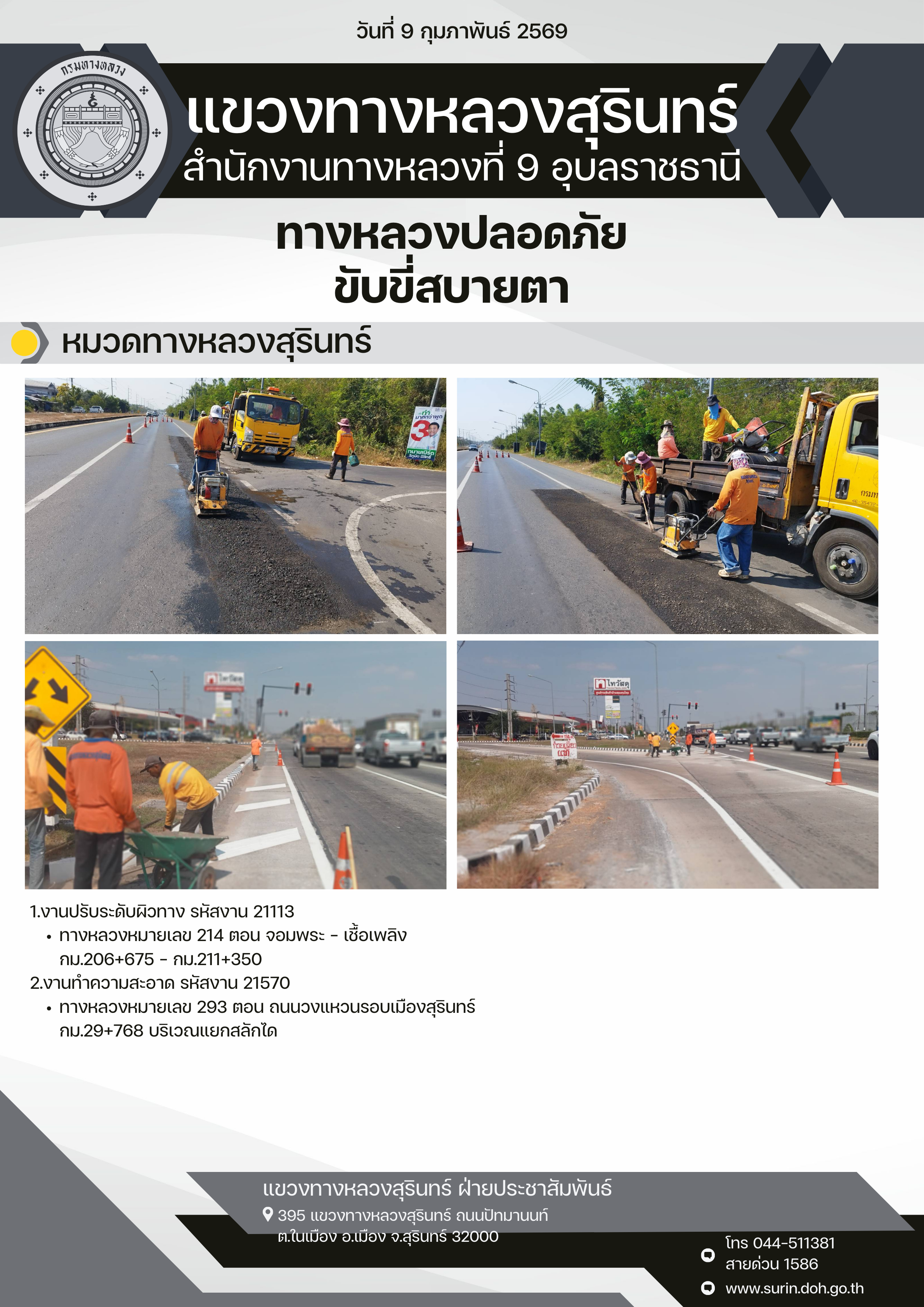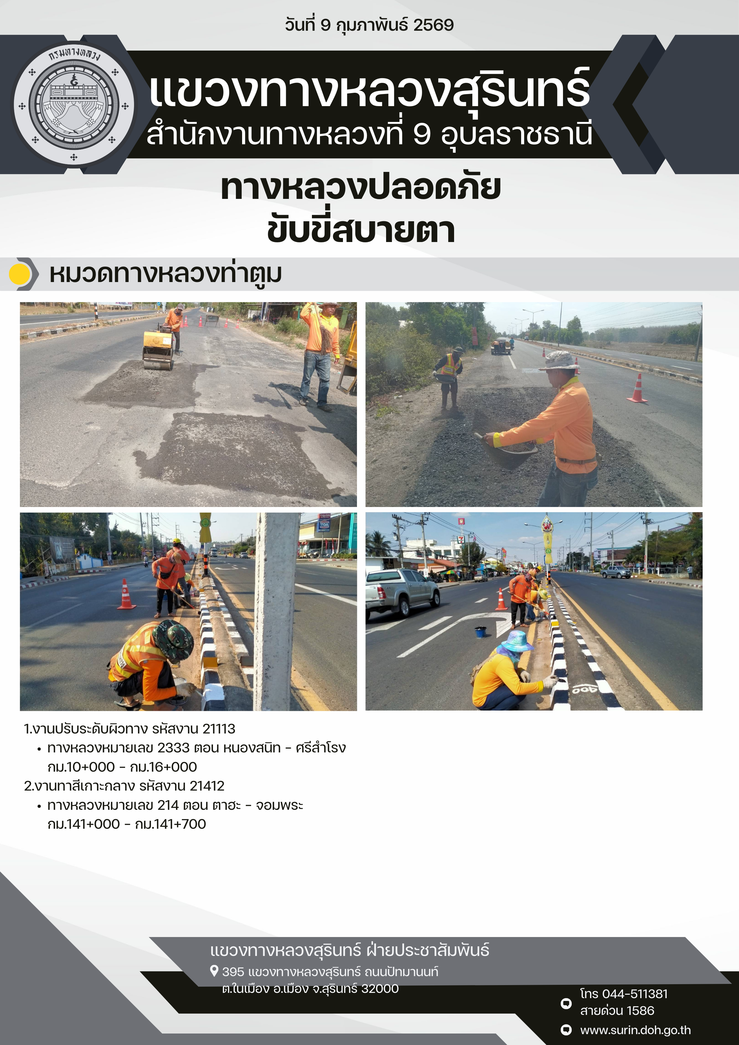 ทางหลวงปลอดภัย ขับขี่สบายตา 9 กุมภาพันธ์ 2569