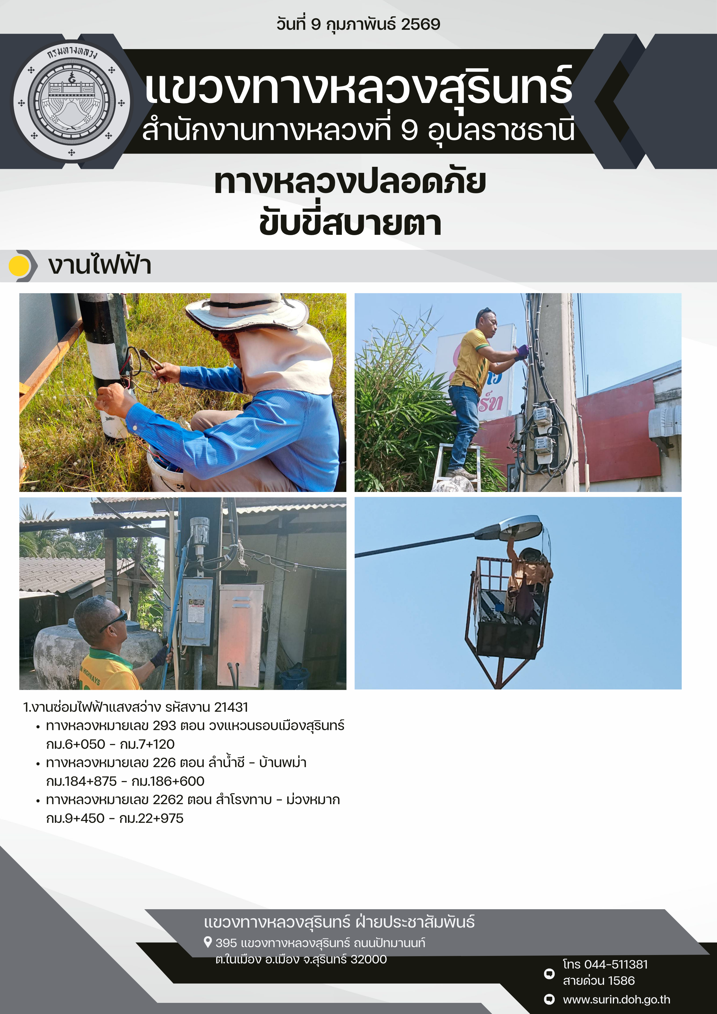 ข้อมูลข่าว : ทางหลวงปลอดภัย ขับขี่สบายตา 9 กุมภาพันธ์ 2569